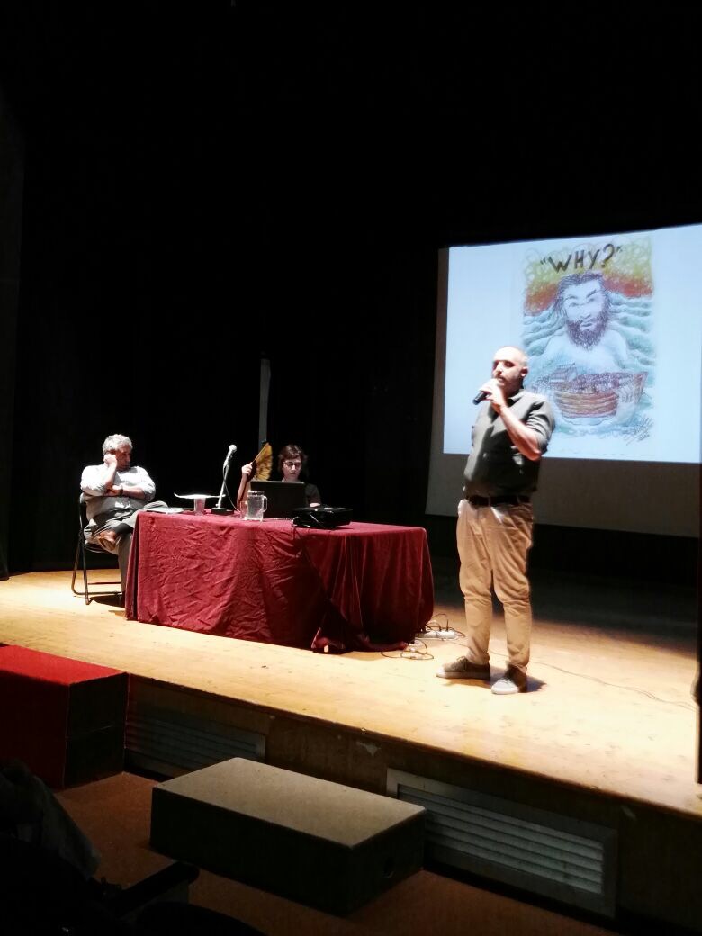Tramite i disegni e le appassionate descrizioni dell’operatore Francesco Piobbichi, il pubblico ha potuto sentire la tragicità di quello cui quotidianamente operatori e volontari assistono: gommoni rovesciati a pochi chilometri dalla costa, corpi senza vita di donne in cinta che sono il simbolo “di un presente che muore e non fa nascere il futuro”, ferite terribili provocate dalle torture libiche e, purtroppo, molto altro.