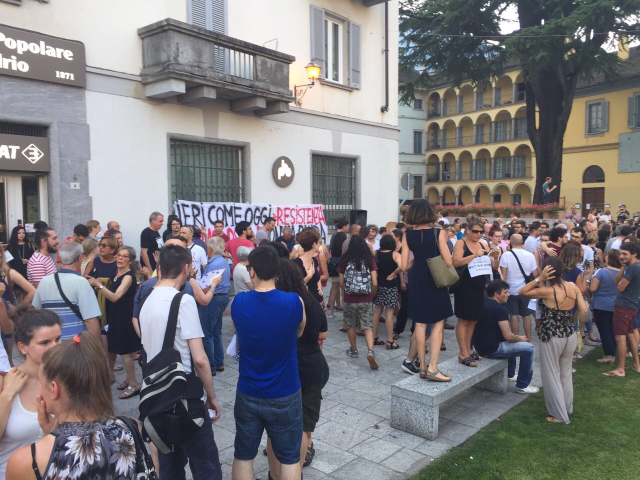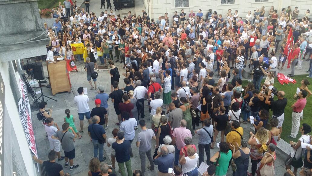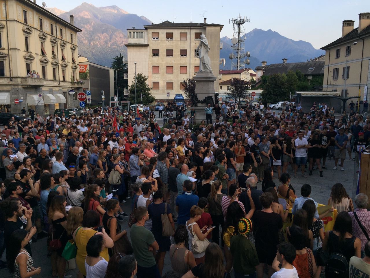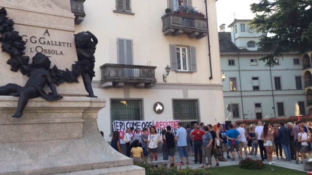 in piazza venerdì sera a Domo per partecipare alla manifestazione organizzata da un gruppo di giovani contro le richieste del sindaco Lucio Pizzi di rientro alle ore 20 nella struttura d'accoglienza e di limitazione di spostamento dal comune. Presenti le sigle sindacali (per la Cgil con tante bandiere che poi sono state ritirate ad inizio comizio ndr.) , una rappresentanza Radicale giunta da Milano, tanti esponenti politici locali, dal presidente del Vco Stefano Costa al segretario del Pd Ravaioli, ma anche di Sinistra Unità, consiglieri ed ex, tanta gente, tanti giovani, e tante forze dell'ordine, presente anche il Questore. Al microfono, dopo le ore 20,01, si sono alternati i promotori, che hanno ricordato i motivi che li hanno spinti a muoversi, rivivendo quanto successo in settimana, con le discussioni sui social network, le varie prese di posizione: "Non possiamo accettare che il nostro sindaco facca sparate a livello nazionale- così Gabriele Ricci, uno dei promotori- Domo non ha nessun bisogno di coprifuoco, non c'è nessun motivo di imporlo, è incostituzionale, non potevamo lasciar correre. Questa manifestazione è servita ad unire una parte del Pese che tante volte è divisa ma che su questo tem si è sentita unità, ha ribadito che c'è voglia di manifestare per difendere i diritti delle persone che sono la cosa più importante. a Domo non so se la cittadinanza è con il sindaco, credo che questa sia una ripartenza per tutta la città".