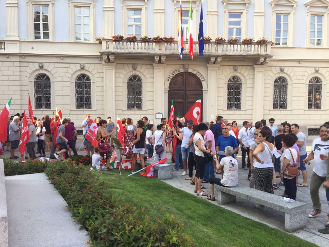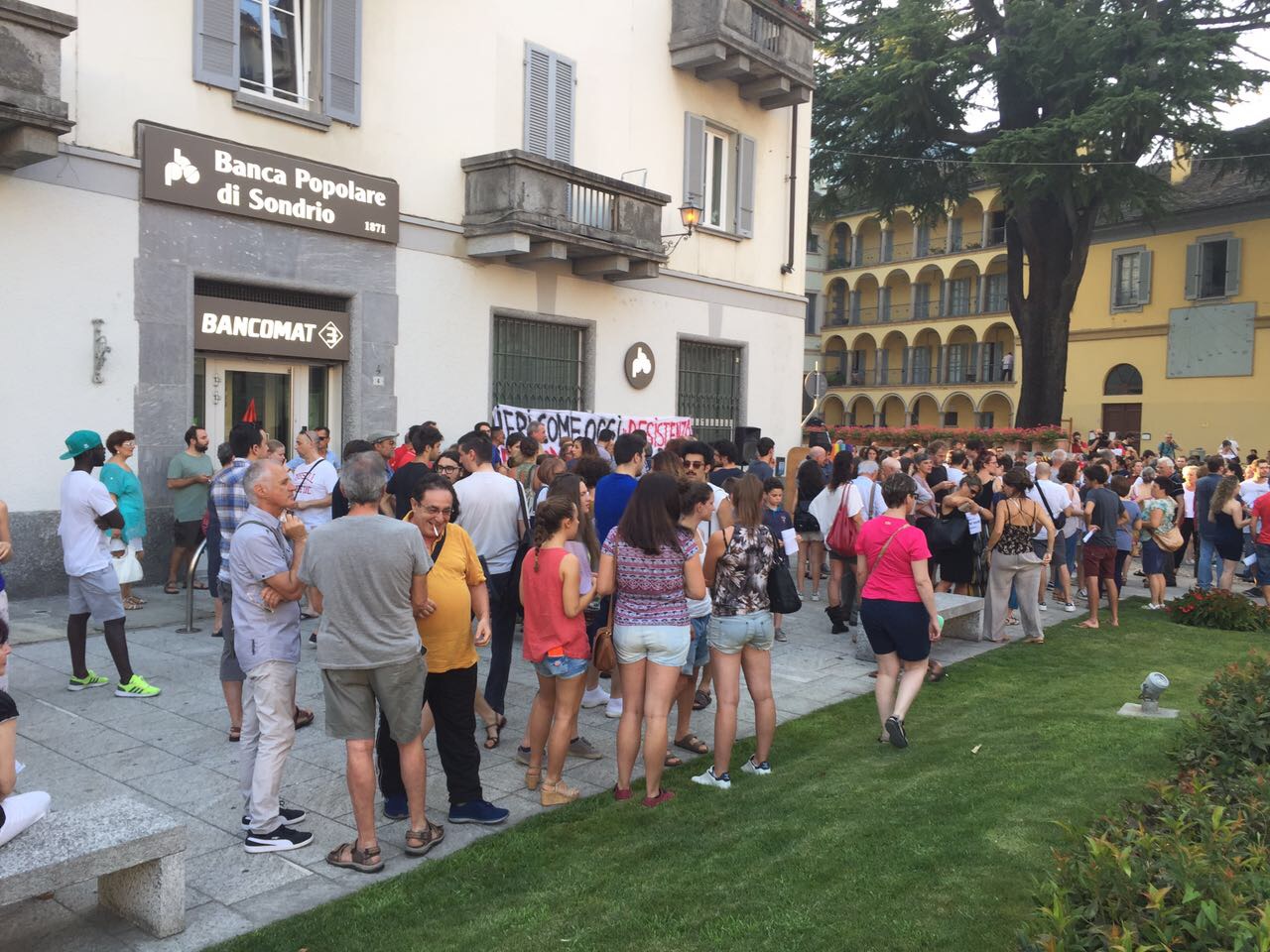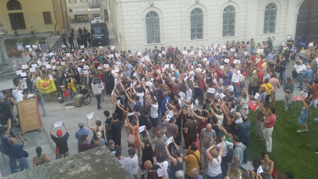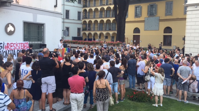 in piazza venerdì sera a Domo per partecipare alla manifestazione organizzata da un gruppo di giovani contro le richieste del sindaco Lucio Pizzi di rientro alle ore 20 nella struttura d'accoglienza e di limitazione di spostamento dal comune. Presenti le sigle sindacali (per la Cgil con tante bandiere che poi sono state ritirate ad inizio comizio ndr.) , una rappresentanza Radicale giunta da Milano, tanti esponenti politici locali, dal presidente del Vco Stefano Costa al segretario del Pd Ravaioli, ma anche di Sinistra Unità, consiglieri ed ex, tanta gente, tanti giovani, e tante forze dell'ordine, presente anche il Questore. Al microfono, dopo le ore 20,01, si sono alternati i promotori, che hanno ricordato i motivi che li hanno spinti a muoversi, rivivendo quanto successo in settimana, con le discussioni sui social network, le varie prese di posizione: "Non possiamo accettare che il nostro sindaco facca sparate a livello nazionale- così Gabriele Ricci, uno dei promotori- Domo non ha nessun bisogno di coprifuoco, non c'è nessun motivo di imporlo, è incostituzionale, non potevamo lasciar correre. Questa manifestazione è servita ad unire una parte del Pese che tante volte è divisa ma che su questo tem si è sentita unità, ha ribadito che c'è voglia di manifestare per difendere i diritti delle persone che sono la cosa più importante. a Domo non so se la cittadinanza è con il sindaco, credo che questa sia una ripartenza per tutta la città".