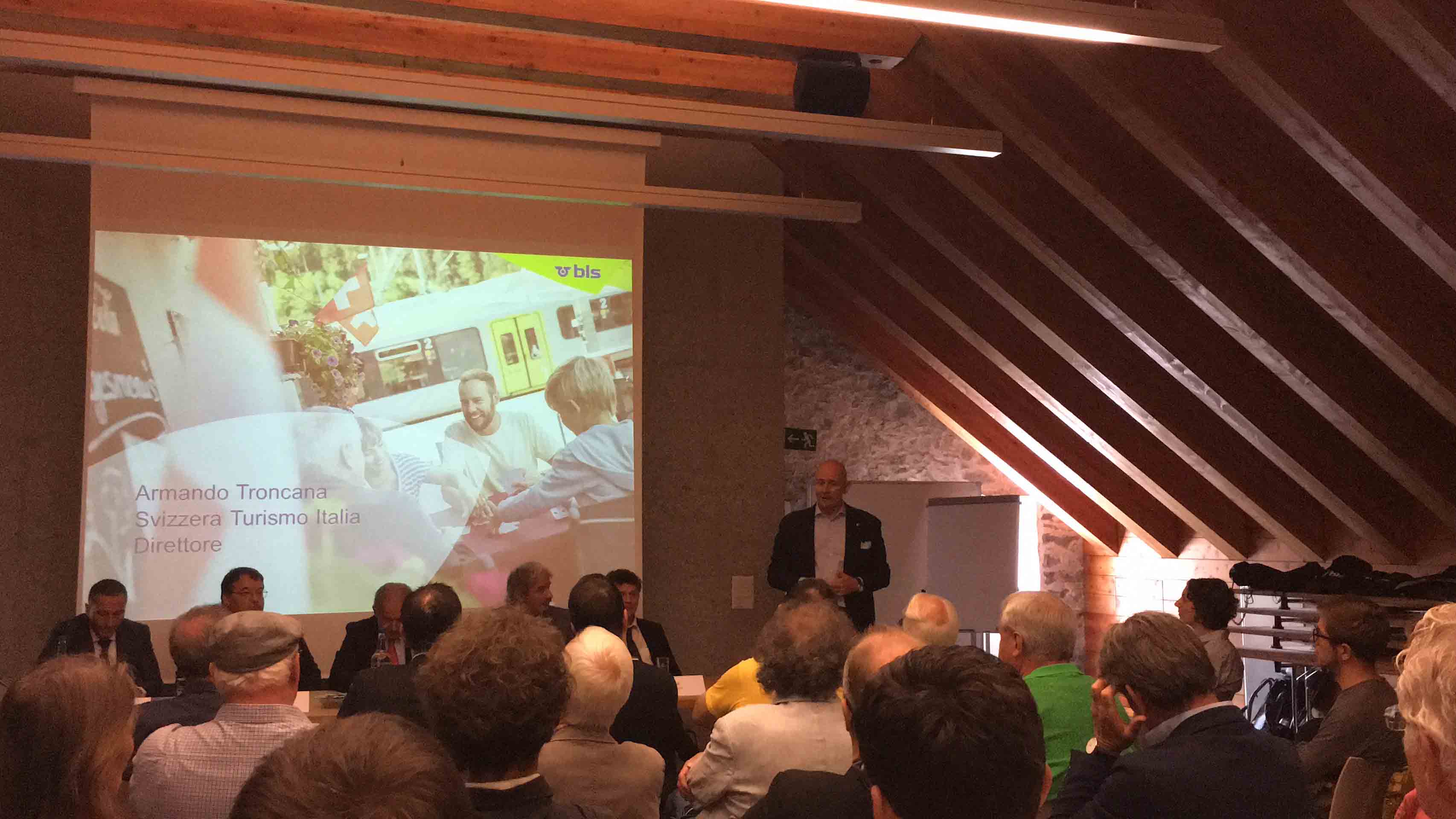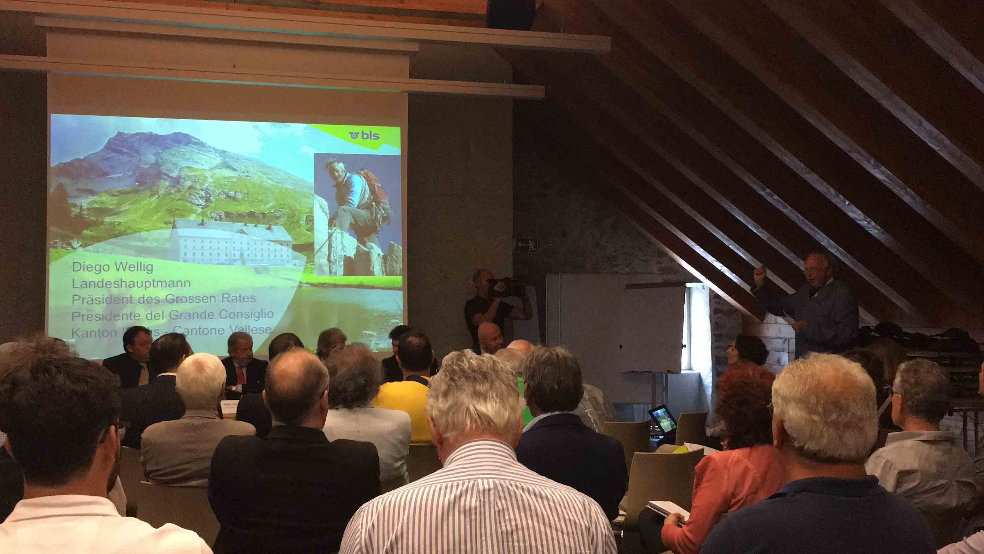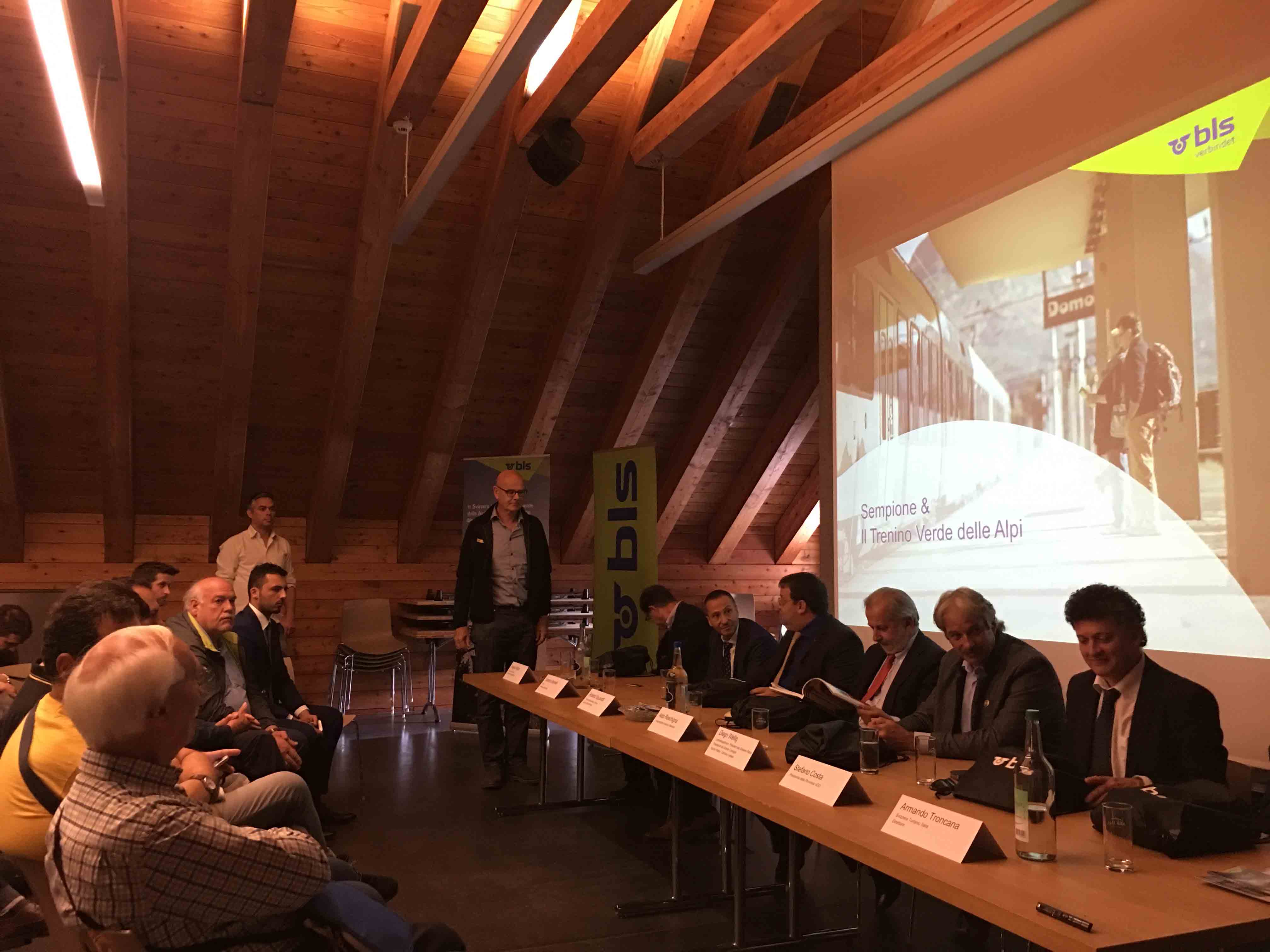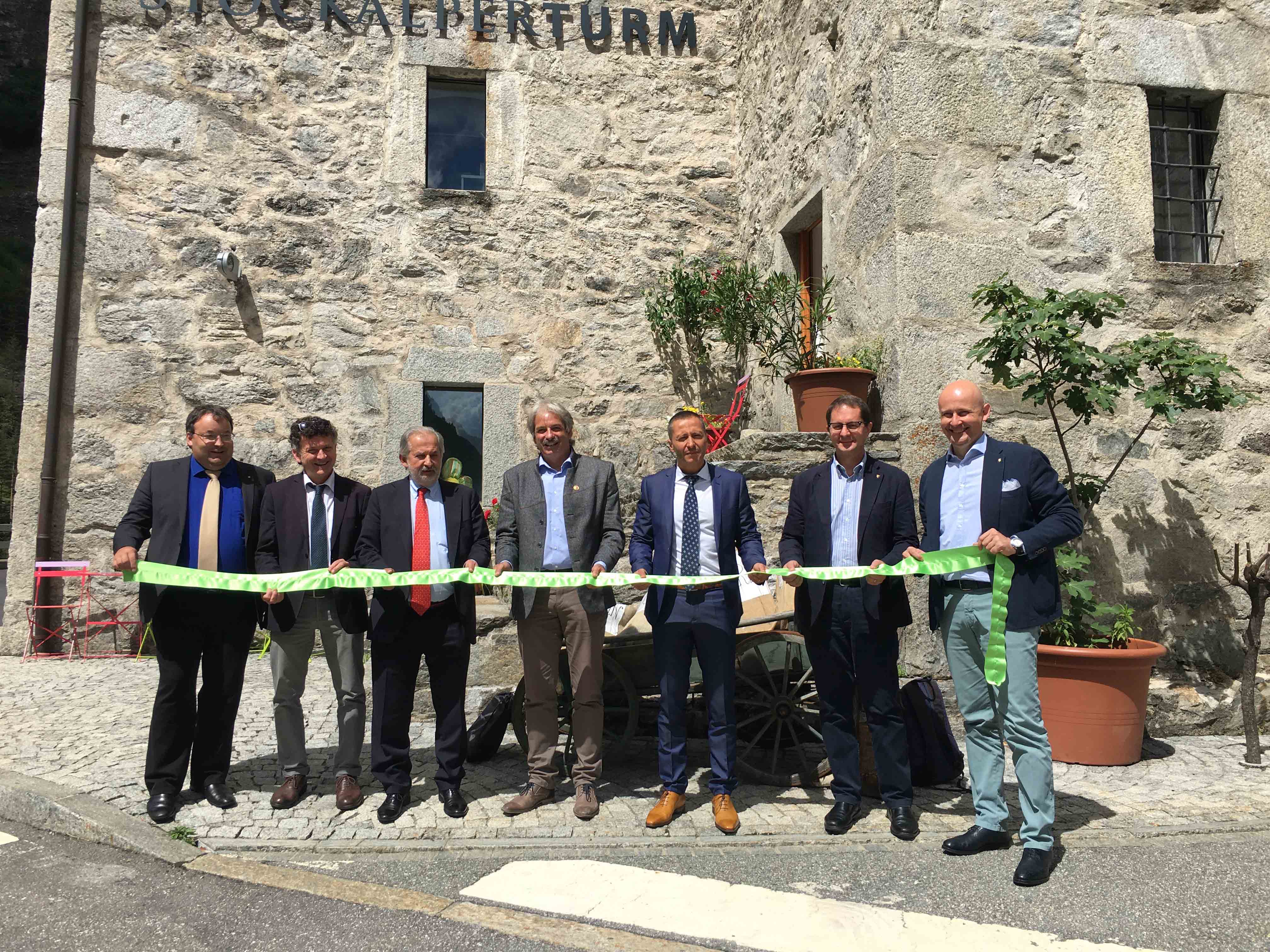 GONDO-30-06-2017- Nella splendida torre di Stockalper a Gondo, alla presenza delle autorità svizzere ed italiane, si è celebrato questa mattina l'importante obbiettivo di Bls, le ferrovie svizzere del Trenino Verde delle Alpi, che dal prossimo fine settimana viaggeranno tra Briga e Domodossola con cadenzamento biorario. "Puntiamo a rafforzare i legami tra i due paesi - ha spiegato il vicepresidente della regione Piemonte Aldo Reschigna, - un unione più stretta di queste zone di montagna le rende più forti e può portare con sé un forte sviluppo economico. Il progetto BLS era nato come un progetto destinato ai frontalieri, ma col tempo si è trasformato in un progetto utilissimo anche allo sviluppo turistico". Diego Willig, presidente del Grande Consiglio del Cantone: “Sarà un vantaggio sia per il traffico pendolare che per quello turistico. Per fare un passo avanti nel turismo però non basta il collegamento di treni che funziona, occorre di più, ad esempio sentieri migliori dalle due parti del Sempione e soprattutto un proseguimento del sentiero Stockalper fino a Domodossola, e perché no, attraverso la Valle Vigezzo fino a Locarno, a Stresa oppure Arona. Solo quando si riconoscerà che siamo un unica regione potremo crescere insieme. Cosa può desiderare di più un turista che avere da un lato le amenità dello stile di vita italiano e con un viaggio di soli 30 minuti trovarsi nel cuore delle Alpi sul più lungo ghiacciaio d'Europa? Questo ha potenziale, questo ha futuro!”