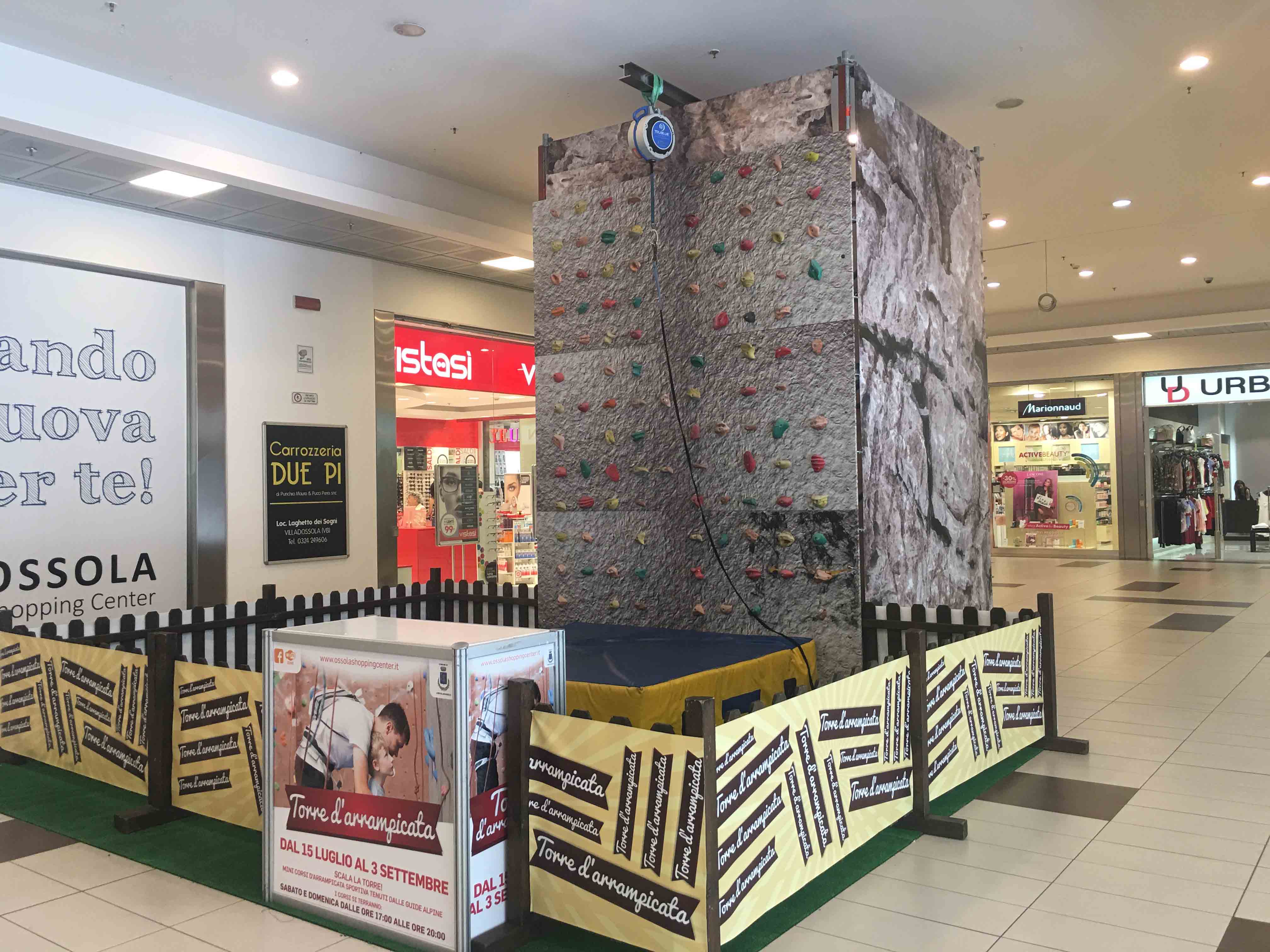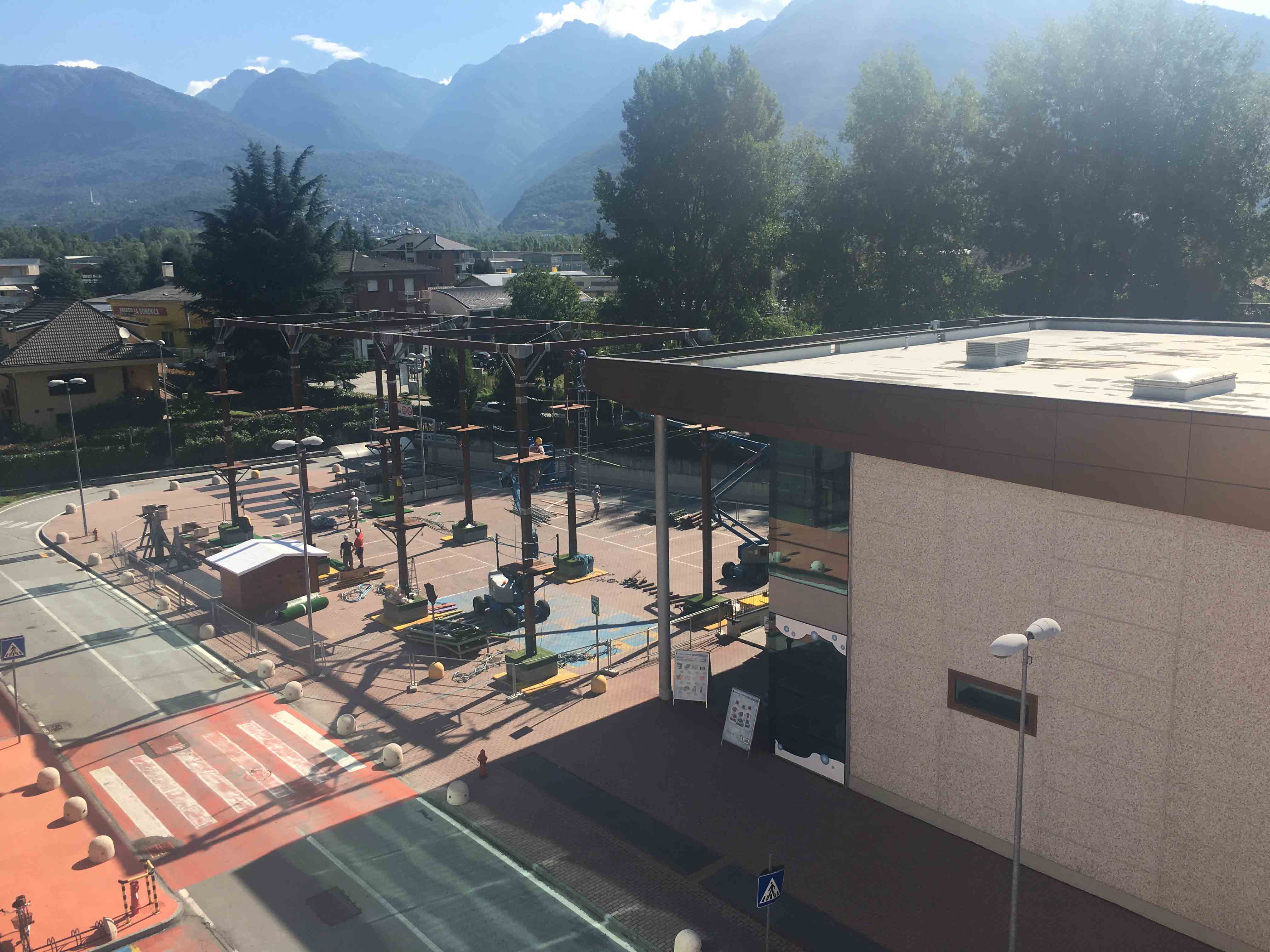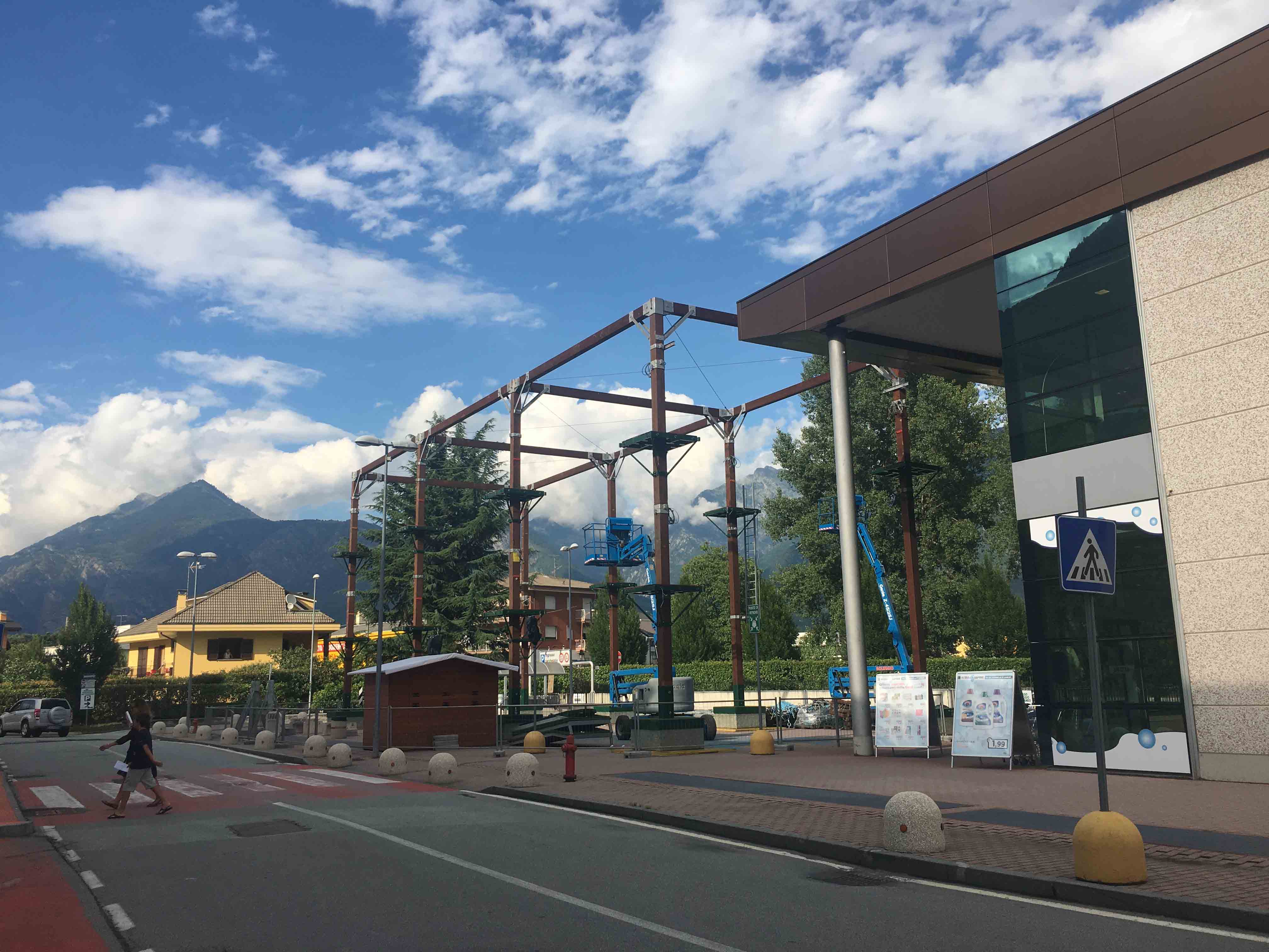 CREVOLADOSSOLA12-07-2017-Si sta lavorando alacremente all'Ossola Shopping Center di Crevoladossola per l'allestimento di un Parco Avventura per ragazzi ed adulti nella parte esterna del centro commerciale. Il parco sarà aperto fino al 3 settembre dal lunedì al venerdì dalle 16 alle 19, e sabato e domenica dalle 15 alle 19. Per l'accesso gratuito ai residenti di Crevoladossola è richiesta la carta d'identità, mentre per i non residenti basta presentare la Premium Card Ossola Shopping Center con una prova d'acquisto del giorno ed il documento d'identità per la consegna dell'attrezzatura. È obbligatorio usare l'attrezzatura messa disposizione (imbragatura, moschettone, casco); gli istruttori del percorso saranno sempre a disposizione per consigliare o aiutare in caso di necessità. Per i centri estivi o per i gruppi superiori alle 10 persone è necessario prenotarsi presso la casetta di accredito del parco avventura fino ad esaurimento posti. Inoltre all'interno del centro commerciale è stata allestita una parete di arrampicata per i più piccoli, disponibile con le stesse modalità tutti i sabato e domenica dalle 17:00 alle 20:00, il tutto comprensivo di un briefing prima di iniziare l'attività durante il percorso sotto la sorveglianza di un istruttore in totale sicurezza.