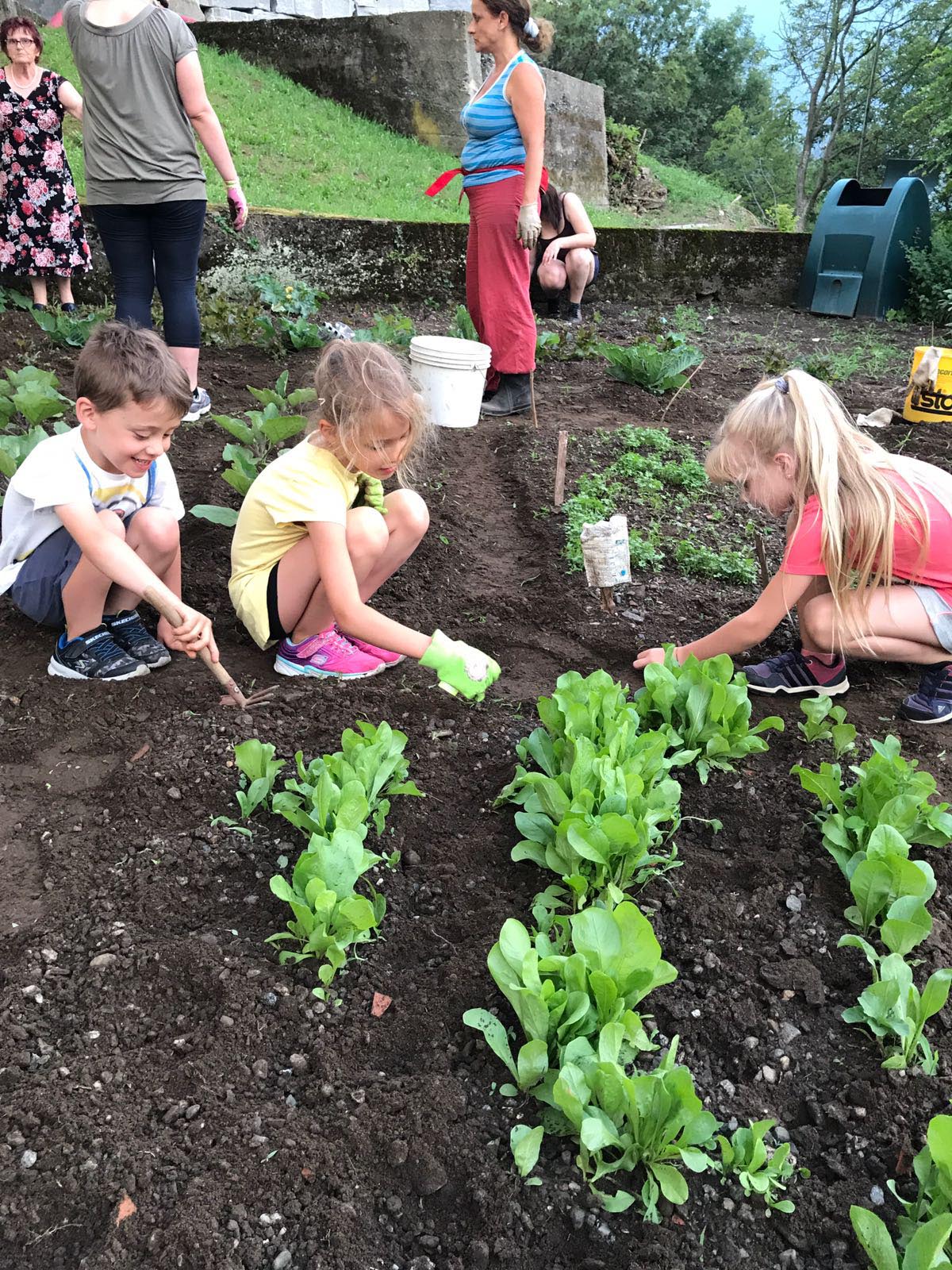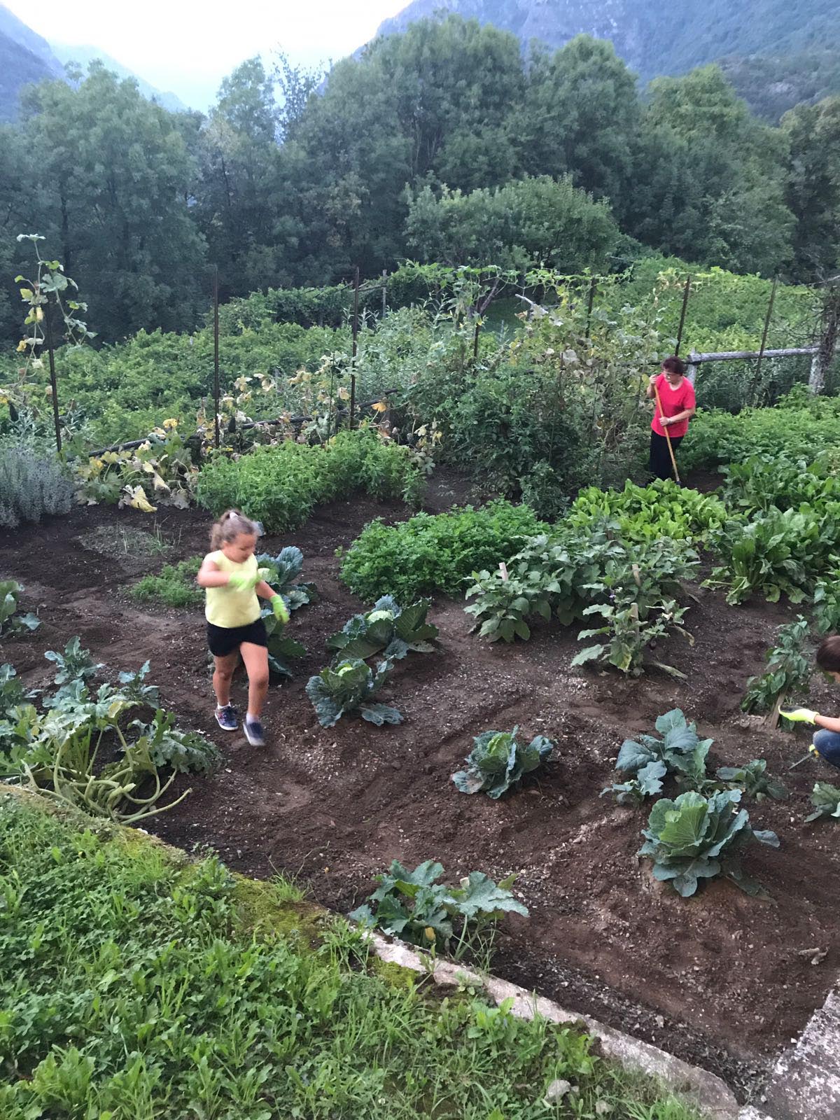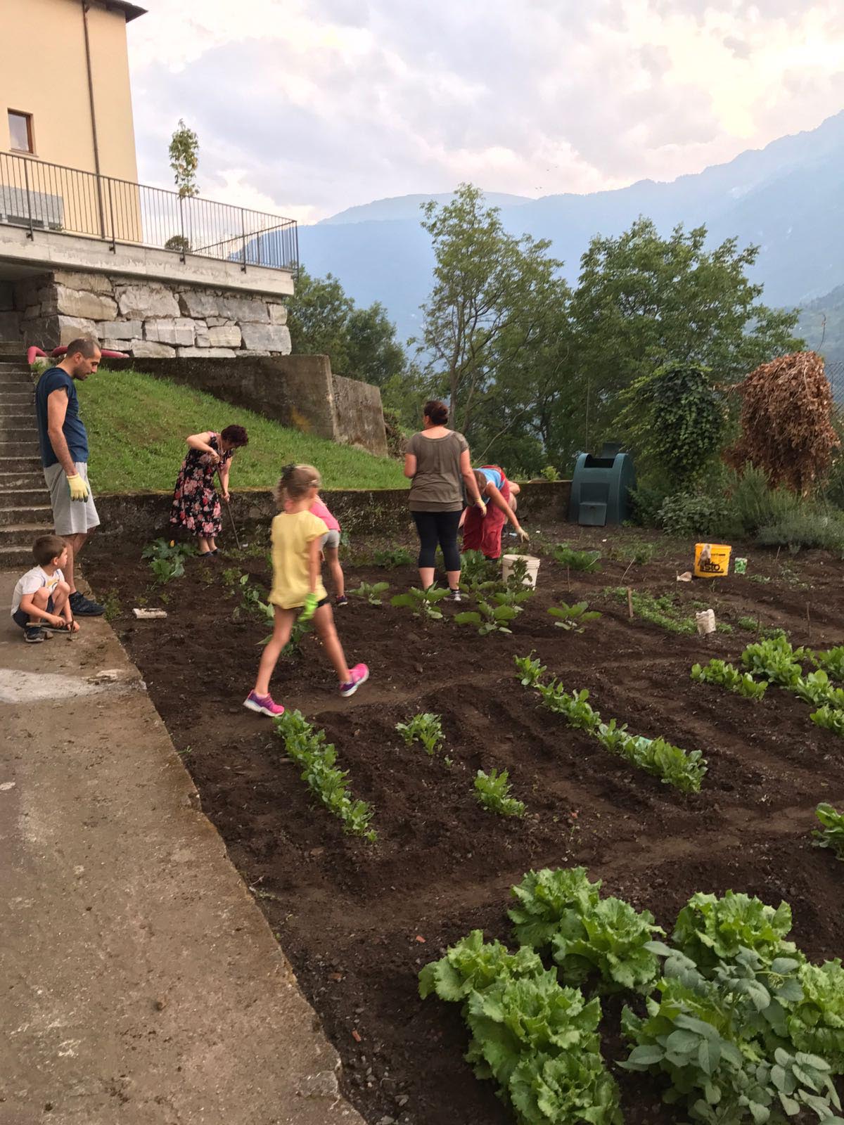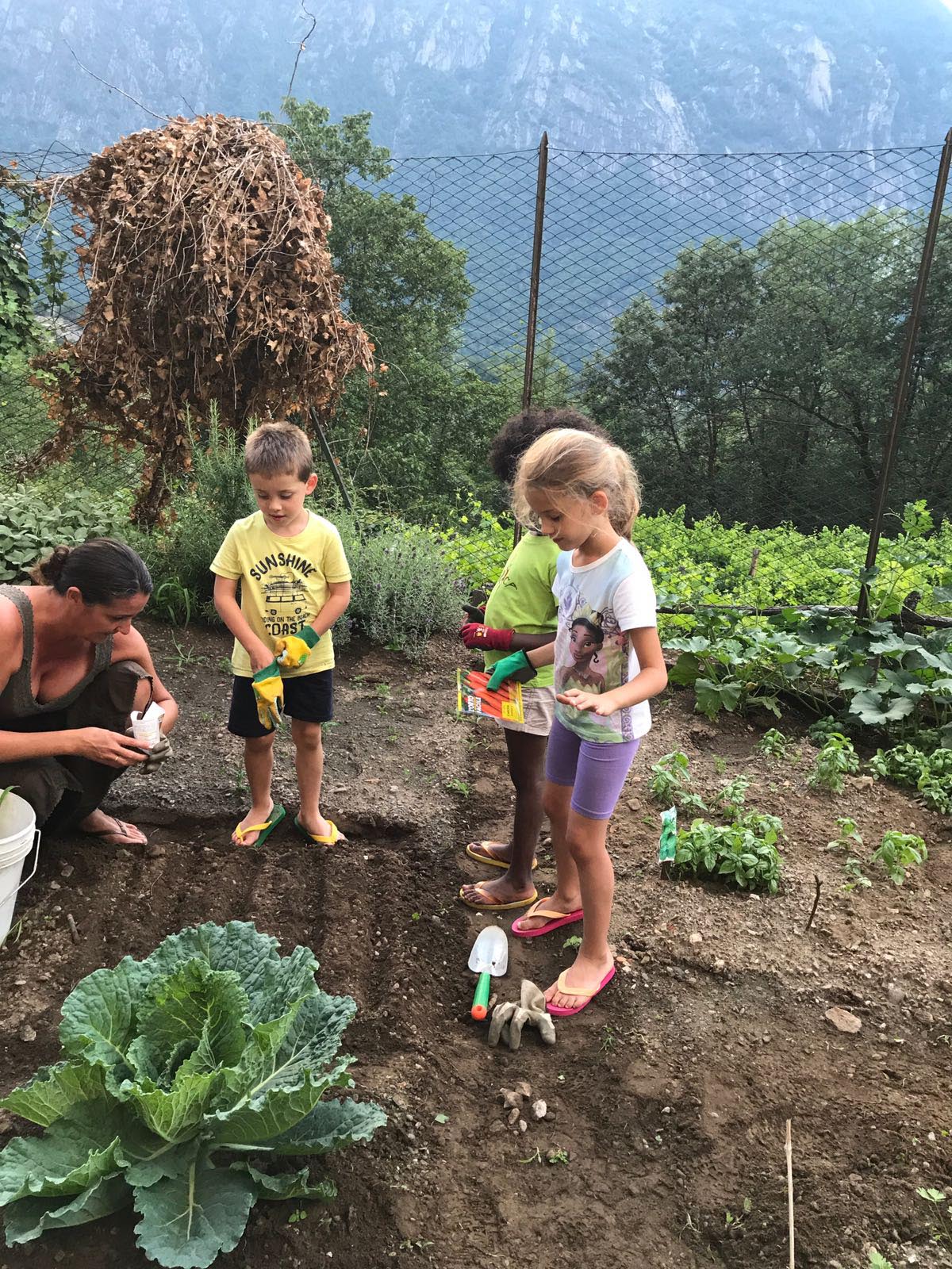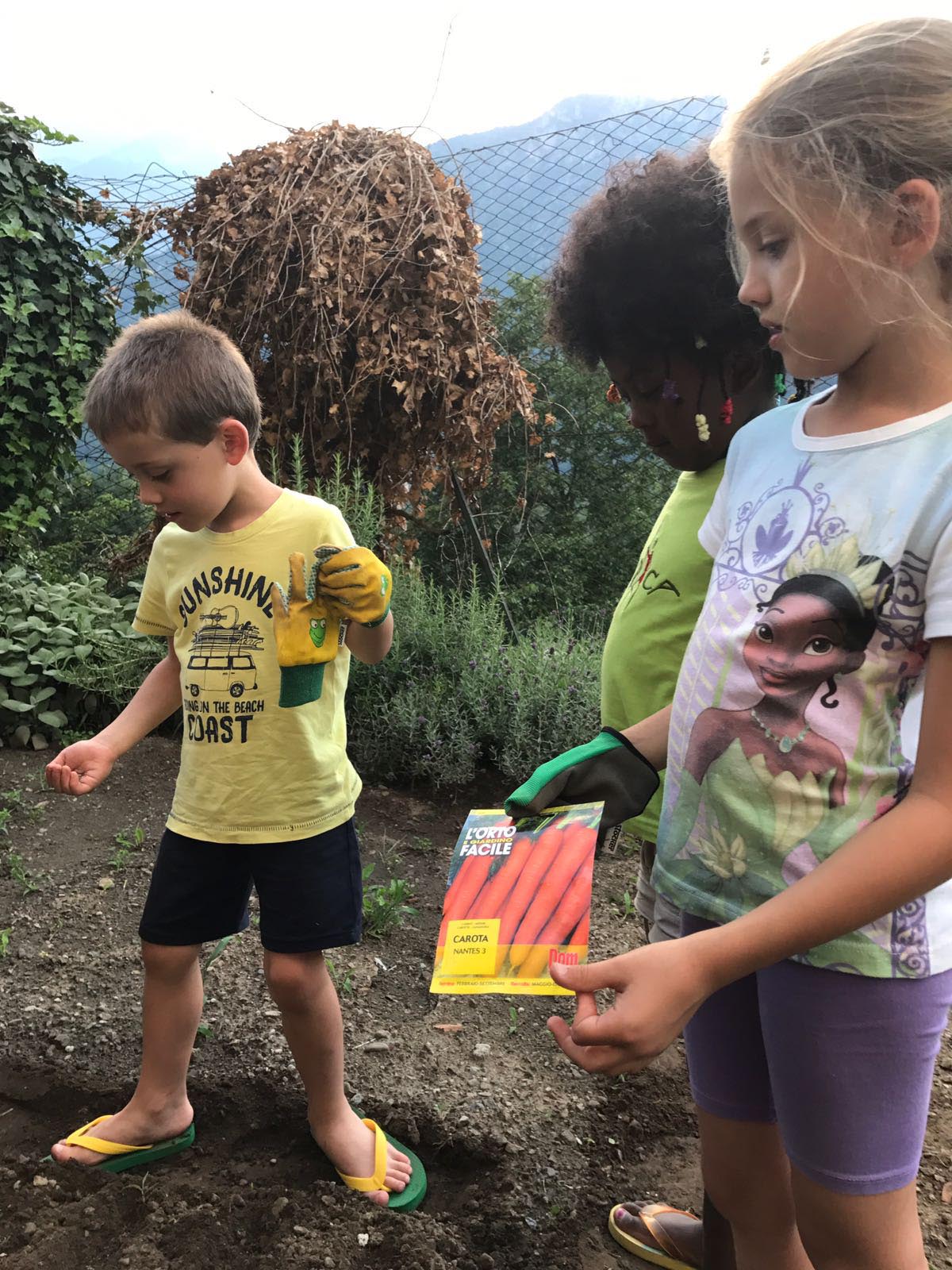 attrezzi, dando indicazioni colturali utili, curando campo e prodotti nell'arco dell'estate, preparando la cena con i prodotti dell'orto. La