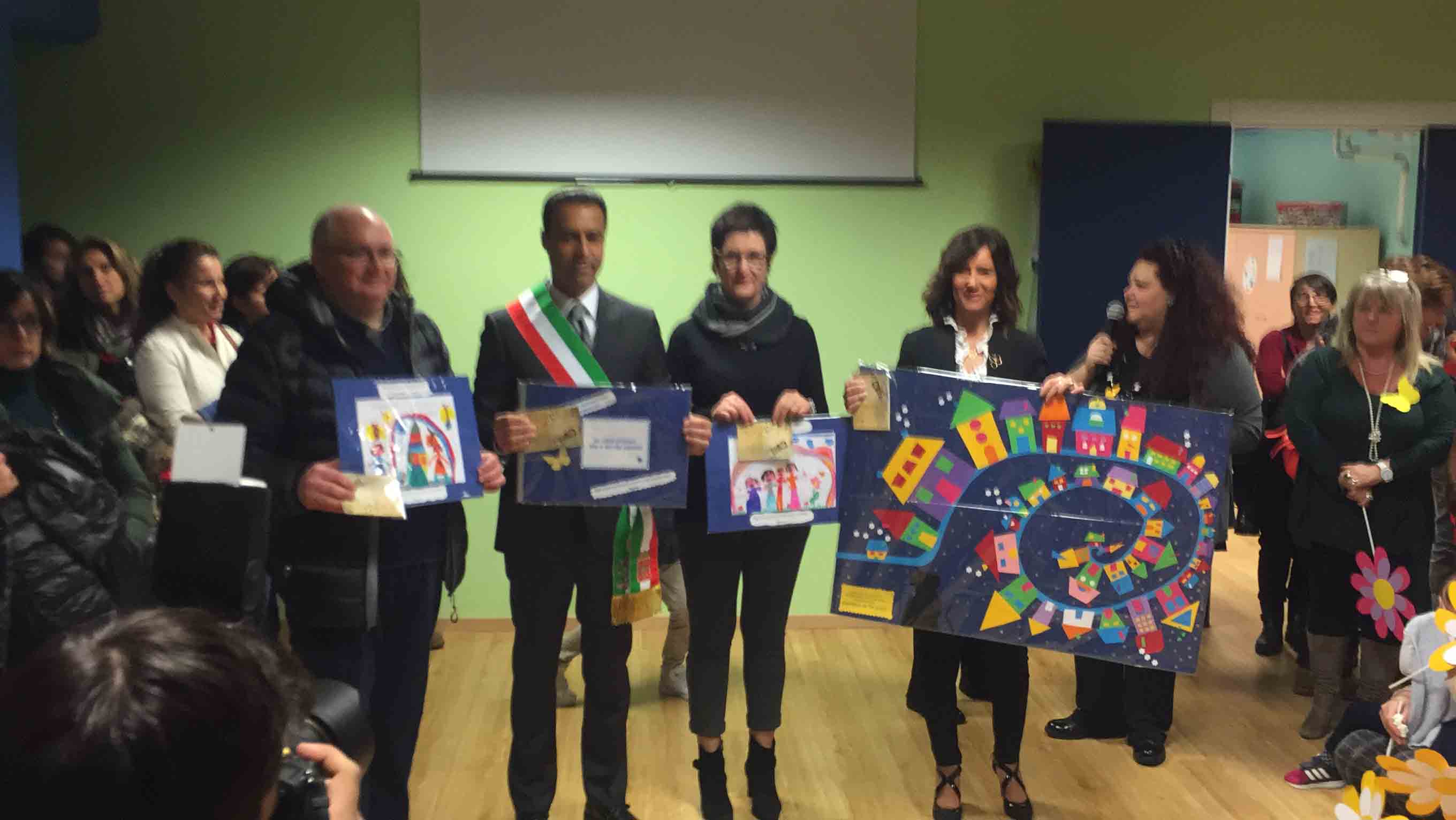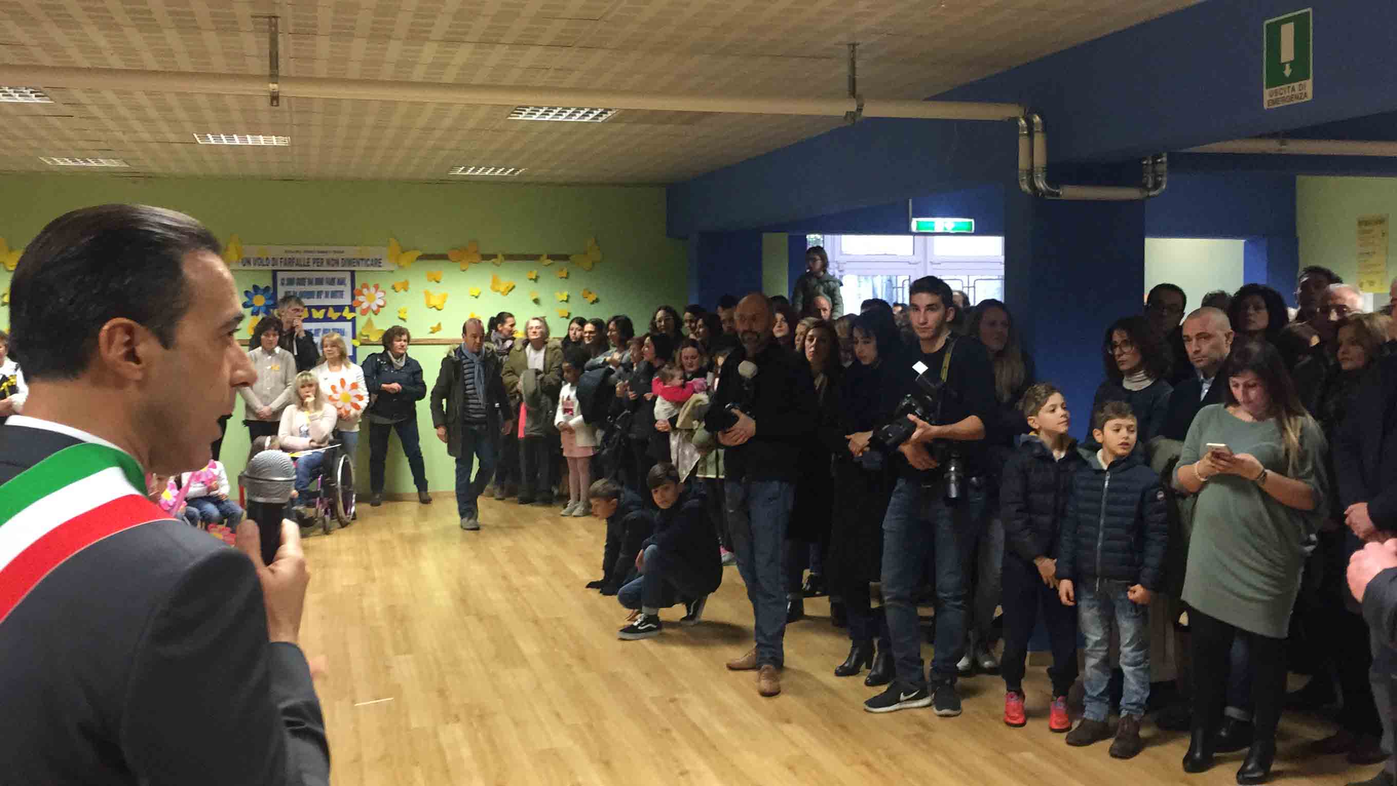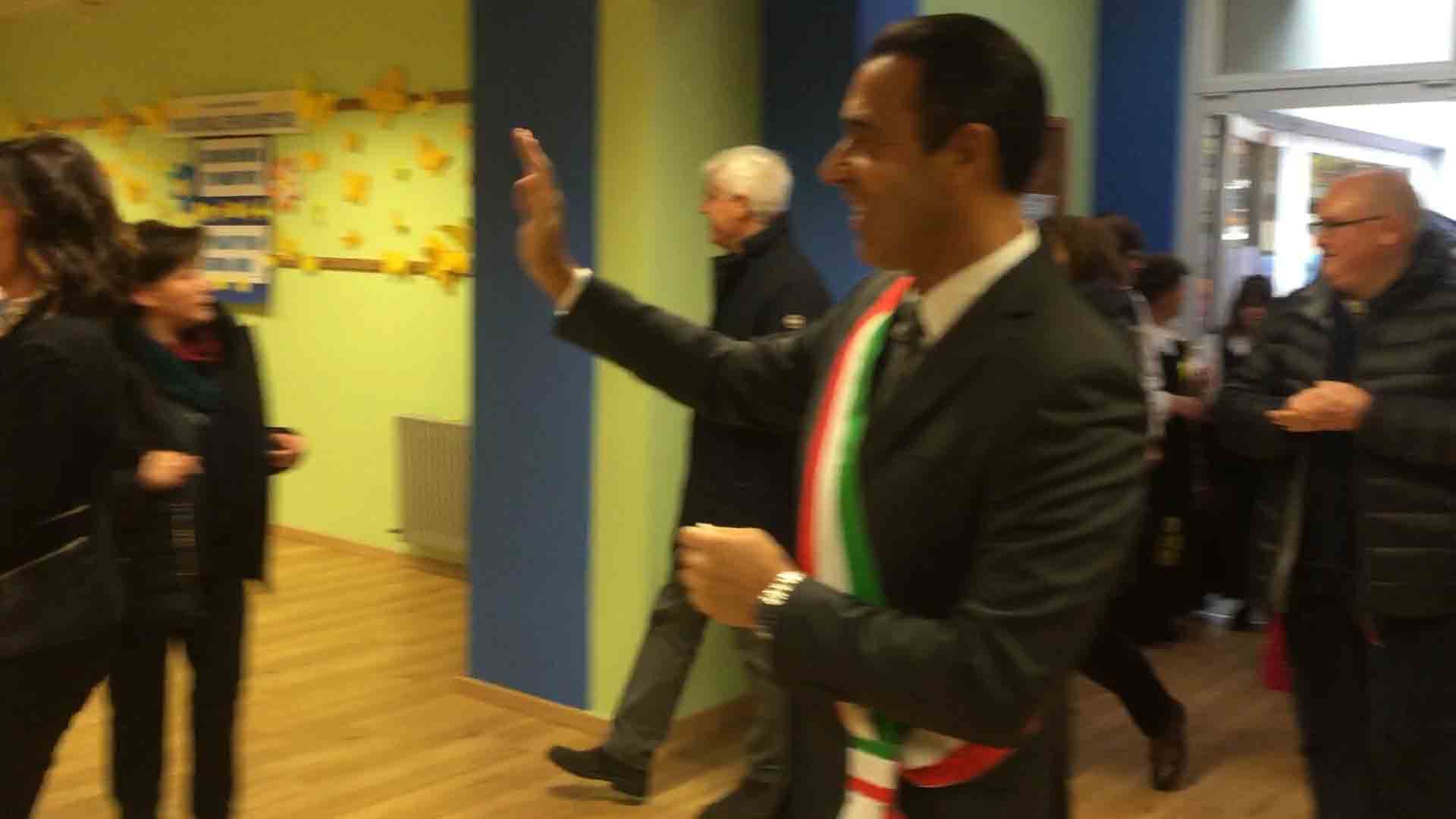il ristrutturato asilo Terezin in piazza Chavez, riaperto in tempi record, con i lavori iniziato lo scorso luglio e l'apertura con le nuove aule e la ristrutturazione per l'inizio dell'anno scolastico a fine settembre. Le maestre hanno raccontato dello sguardo estasiato che hanno avuto i bambini appena rientrati nella scuola ristrutturata: "In tempi brevi hanno cercato di rendere accogliente questa scuola- così la dirigente Chiara Varesi- c'è stato un grande impegno di tutti". "Insieme alla mia squadra cerchiamo di vivere la città come se fosse una grande famiglia-ha detto il sindaco Lucio Pizzi- e infondo lo siamo, perchè siamo cresciuti qui, e questo è lo spirito con cui cerchiamo di affrontare i problemi tutti i giorni. Il lavoro qui alle Terezin è da vedere, siamo davvero soddisfatti". Oltre al sindaco Lucio Pizzi, presente il parroco don Vincenzo Barone, che ha benedetto la struttura, il rappresentante dell'ufficio scolastico regionale Angelo Iaderosa, il personale docente e Ata, la Dsga Graziella Gasparri, gli assessori Franco Falciola e Daniele Folino, il comandante della vicina Guardia di Finanza, e tanti genitori.