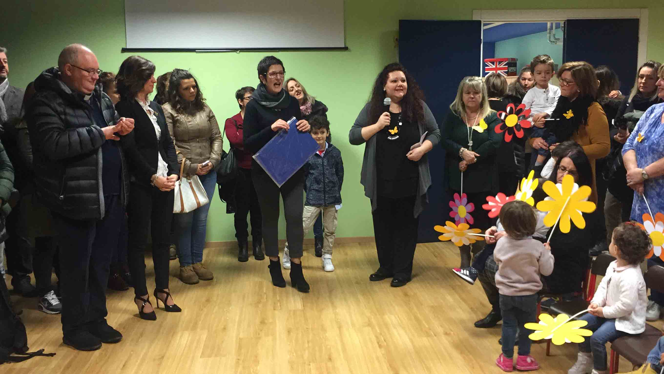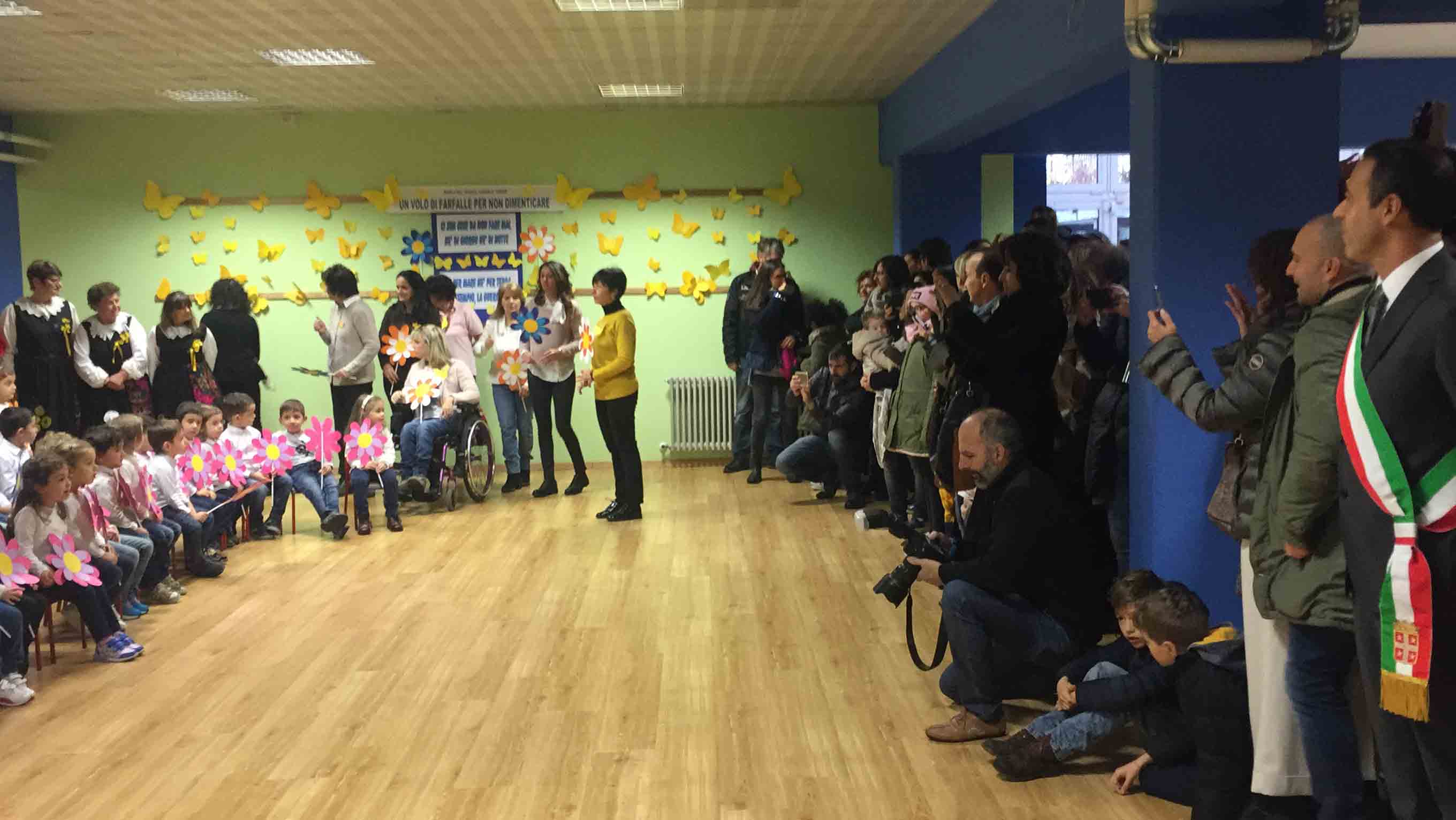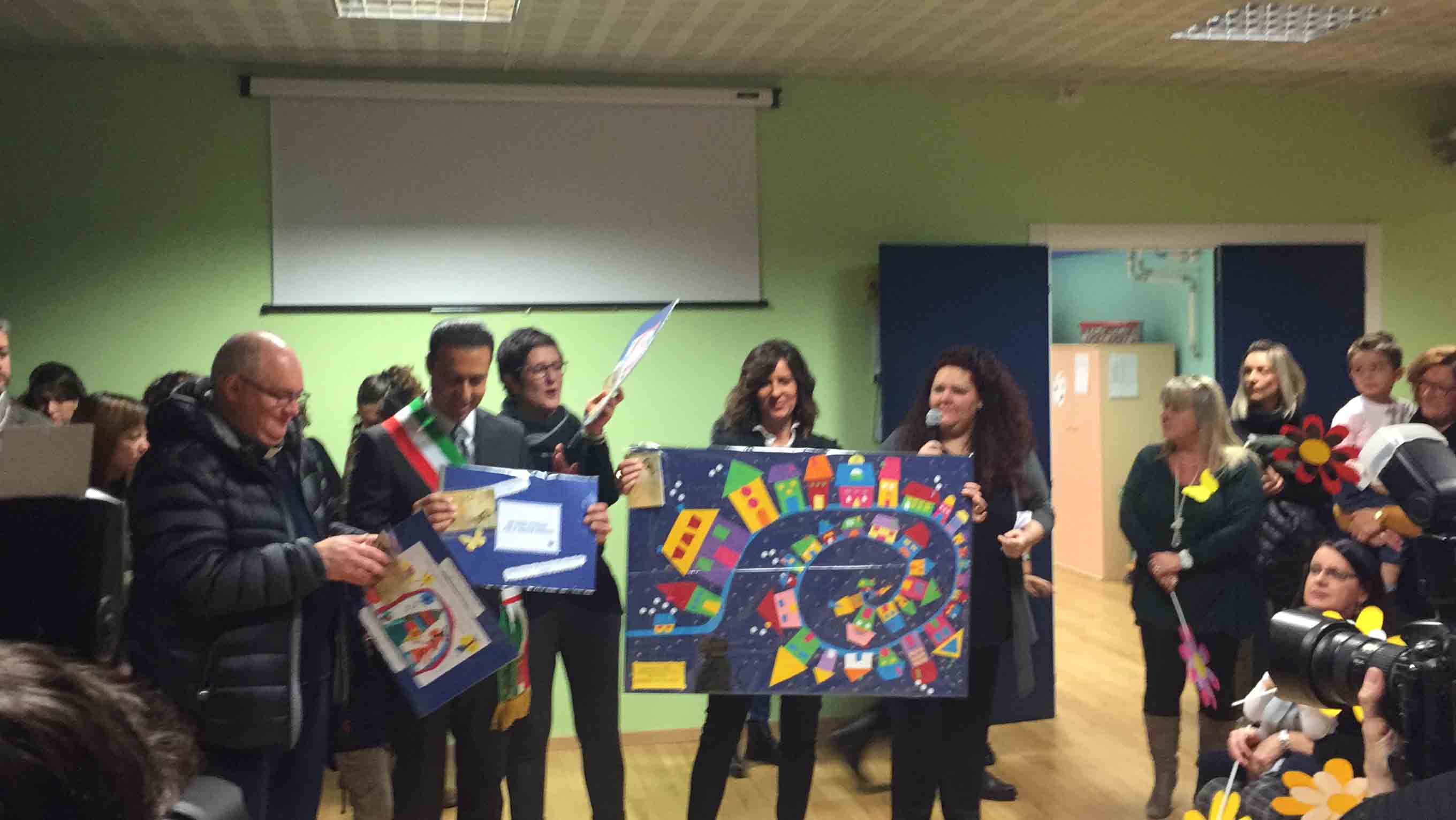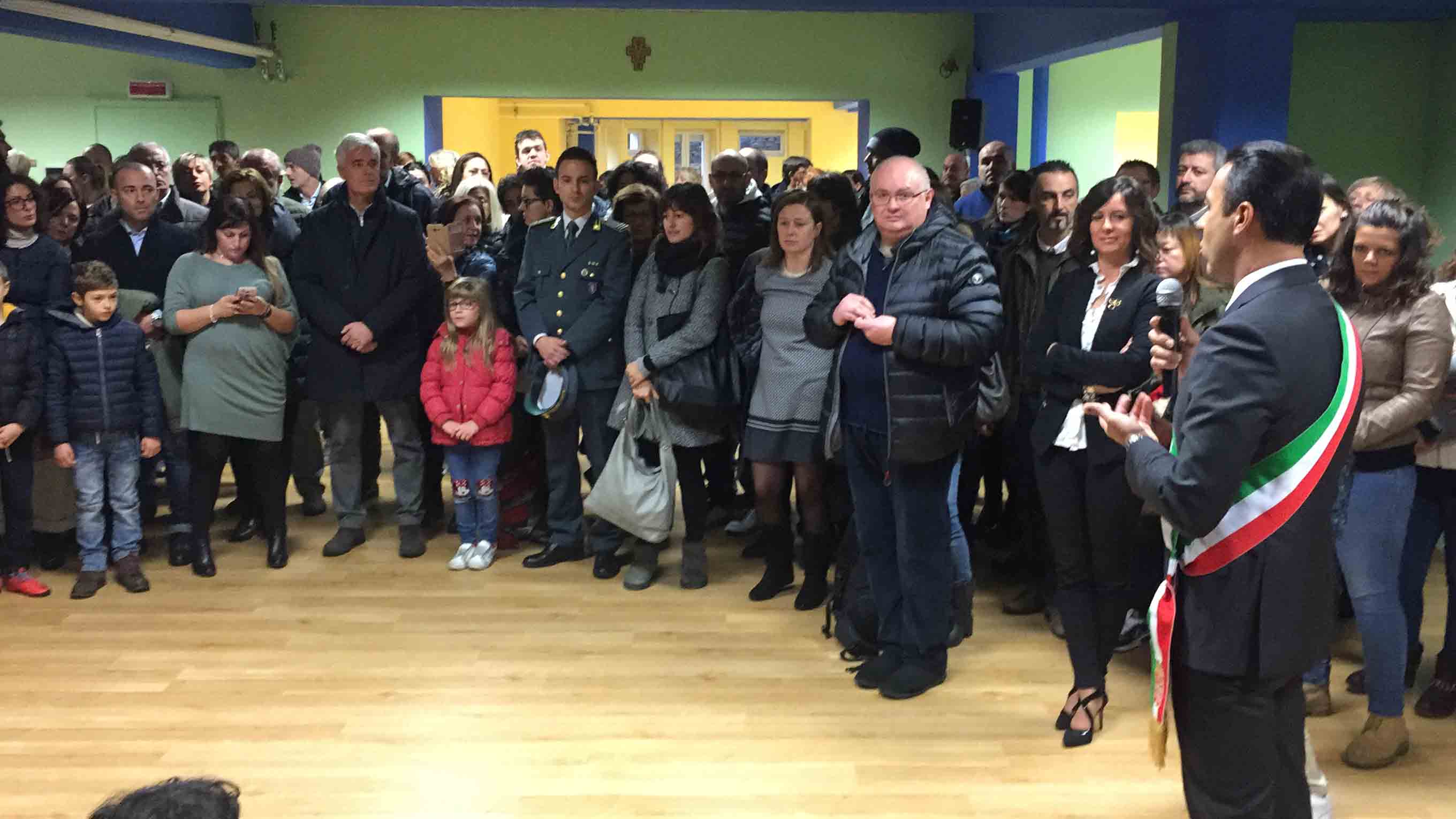 il ristrutturato asilo Terezin in piazza Chavez, riaperto in tempi record, con i lavori iniziato lo scorso luglio e l'apertura con le nuove aule e la ristrutturazione per l'inizio dell'anno scolastico a fine settembre. Le maestre hanno raccontato dello sguardo estasiato che hanno avuto i bambini appena rientrati nella scuola ristrutturata: "In tempi brevi hanno cercato di rendere accogliente questa scuola- così la dirigente Chiara Varesi- c'è stato un grande impegno di tutti". "Insieme alla mia squadra cerchiamo di vivere la città come se fosse una grande famiglia-ha detto il sindaco Lucio Pizzi- e infondo lo siamo, perchè siamo cresciuti qui, e questo è lo spirito con cui cerchiamo di affrontare i problemi tutti i giorni. Il lavoro qui alle Terezin è da vedere, siamo davvero soddisfatti". Oltre al sindaco Lucio Pizzi, presente il parroco don Vincenzo Barone, che ha benedetto la struttura, il rappresentante dell'ufficio scolastico regionale Angelo Iaderosa, il personale docente e Ata, la Dsga Graziella Gasparri, gli assessori Franco Falciola e Daniele Folino, il comandante della vicina Guardia di Finanza, e tanti genitori.