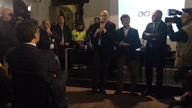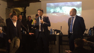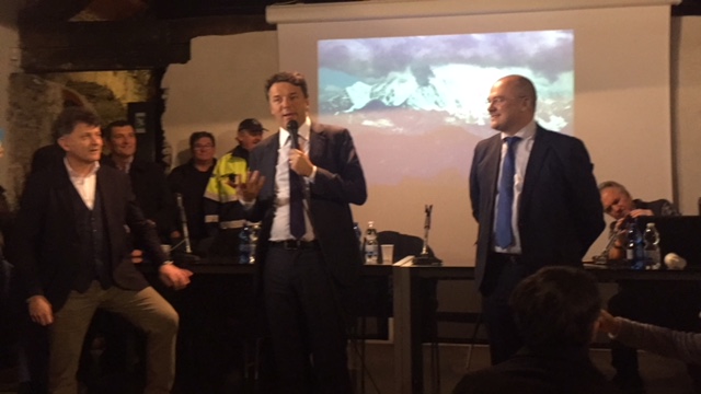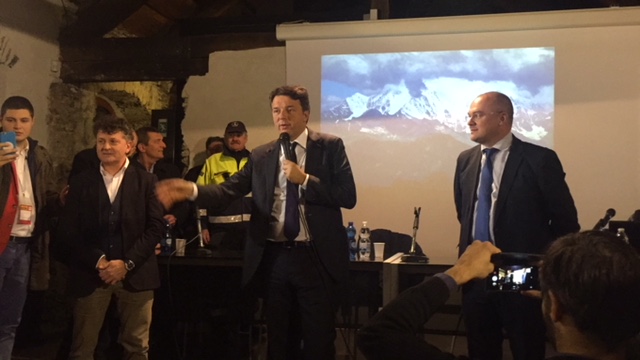 di Vogogna per accogliere il sgretario del Pd Matteo Renzi, accompagnato da Maria Elena Boschi e scortato dal padrone di casa Enrico Borghi. Strette di mano, selfie, sorrisi e battute prima degli interventi ufficiali, il saluto del sindaco ed onorevole Enrico Borghi e del presidente del Vco Stefano Costa, ma anche dei dirigenti del Parco val Grande e dell'associazioen Terrealte che ha presentato la zipline ed una centralina al Cippato aperta a Caprezzo: "Questa è la 93^ tappa di una campagna d'ascolto che Matteo Renzi ha voluto lanciare- ha detto Borghi- ed è significativo che Matteo Renzi si sia spinto fino a qui, in un territorio con le caratttersitiche molto peculiari. A torto veniamo descritti come la periferia dle paese, invece siamo la porta verso lì'Europa. Noi abbiamo due industrie, una è il turismo ,e l'altra è la svizzera, noi ci lavoriamo e loro vengono per il commercio. Renzi ha voluto dedicare la sua tappa alla legge sui piccoli comuni ed all'impegno che mettiamo per la montagna". Il presidente del Vco Stefano Costa ha evidenziato la differenza d'attenzione che può esserci verso le aree più svantaggiate: "Noi abbiamo bisogno di attenzioni per perequare questa distanza- ha spiegato- la legge approvata sui piccoli comuni è importante, da attenzione anche in termini di risorse. Grazie a questa legge gli uffici postali di montagna resteranno". Borghi ha ricordato poi i 12 milioni di euro in arrivo per le Aree interne e gli 8 milioni in arrivo a Verbania per il "bando periferie". Poi ha preso la parola ilsegretario nazionale del Partito Democratico: "Enrico tutte le volte mi diceva di venire a vedere il suo comune che "è meraviglioso"- così Mattero Renzi- ed insieme a Maria Elena Boschi dicevamo "è un po' fissato", ma devo ammettere che sono rimasto affascinato dallo straordinari oalone di bellezza che quesat terar esprime e che questo castello rappresenta". Renzi ha poi raccontato la sua esperienza nelle varie realtà italiane toccate col suo viaggio, toccando vari temi, dal servizio civile obbligatorio alla pista ciclabile lungo il po di oltre 700 chilometri al futuro robotizzato nel mondo del lavoro.