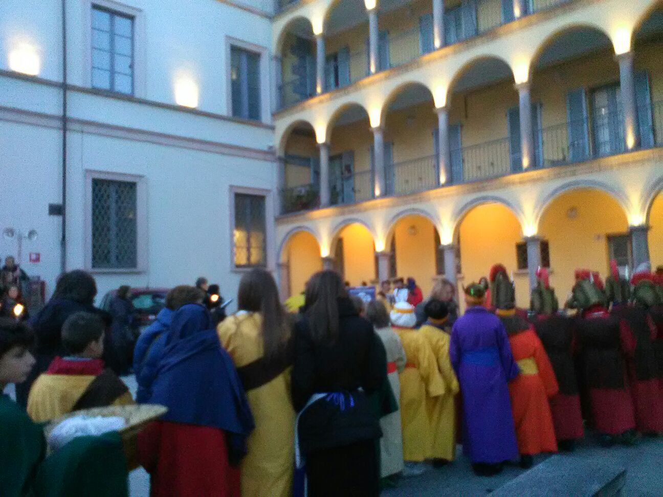 DOMODOSSOLA- 20-12-2017- Come da tradizione l'Istituto Antonio Rosmini di Domodossola ha portato la sacra rappresentazione della nascita di Gesù per le vie del centro storico. Lunedì 18 dicembre gli alunni della scuola primaria e della scuola secondaria di primo grado hanno rievocato così il sacro evento. Pastorelli, centurioni romani, angioletti hanno intonato canti natalizi alternati a meditazioni e letture dense di significato. La dirigente della scuola secondaria di primo grado, prof.ssa Simonetta Aru, racconta : "quest’anno abbiamo voluto recuperare le tradizioni legate ai riti del Santo Natale. Perché è dentro le tradizioni che riscopriamo da dove veniamo e quindi la nostra identità. Tutte le scene sono state introdotte dai passi del Vangelo , sono seguite poi delle meditazioni con le parole di Papa Francesco e di Benedetto XVI relative al significato del Presepe e della Sacra Rappresentazione che fanno da legame al Vangelo e da introduzione e motivazione alle testimonianze legate alle tradizioni sul Santo Natale". Sono stati ricordati nel corso della rievocazione, due testimoni che vengono da lontano, ma che vivono una situazione difficile a causa della guerra: Padre Ibrahim di Aleppo e Myriam, una bambina irachena di dieci anni di Qaraqosh, costretta a lasciare la propria casa per salvarsi dai miliziani dello Stato islamico. Punto d'arrivo delle varie tappe anche quest'anno la Collegiata dei Santi Gervasio e Protasio dove i ragazzi e gli insegnanti sono stati accolti da don Vincenzo Barone, il quale ha benedetto le statuine dei Gesù Bambini che gli studenti avevano con loro. Il parroco ha invitato a riflettere sul senso Cristiano dell'Avvento.