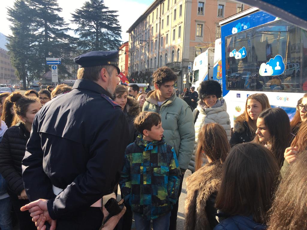 DOMODOSSOLA- 30-01-2018- E' approdato stamane a Domo, davanti alla stazione, dove è stato visitato dai rappresentanti di varie scuole, il tir della polizia allestito per il progetto “Una vita da social”, per educare i giovani ai rischi del web: "!Perennemente connessi alla rete e, attraverso il web, tra loro- spiegano dalal Polizia- sono gli adolescenti di oggi, fruitori instancabili di social networks, “contenitori” nei quali finisce una parte considerevole della loro vita: foto, video, confidenze, anche le più intime.