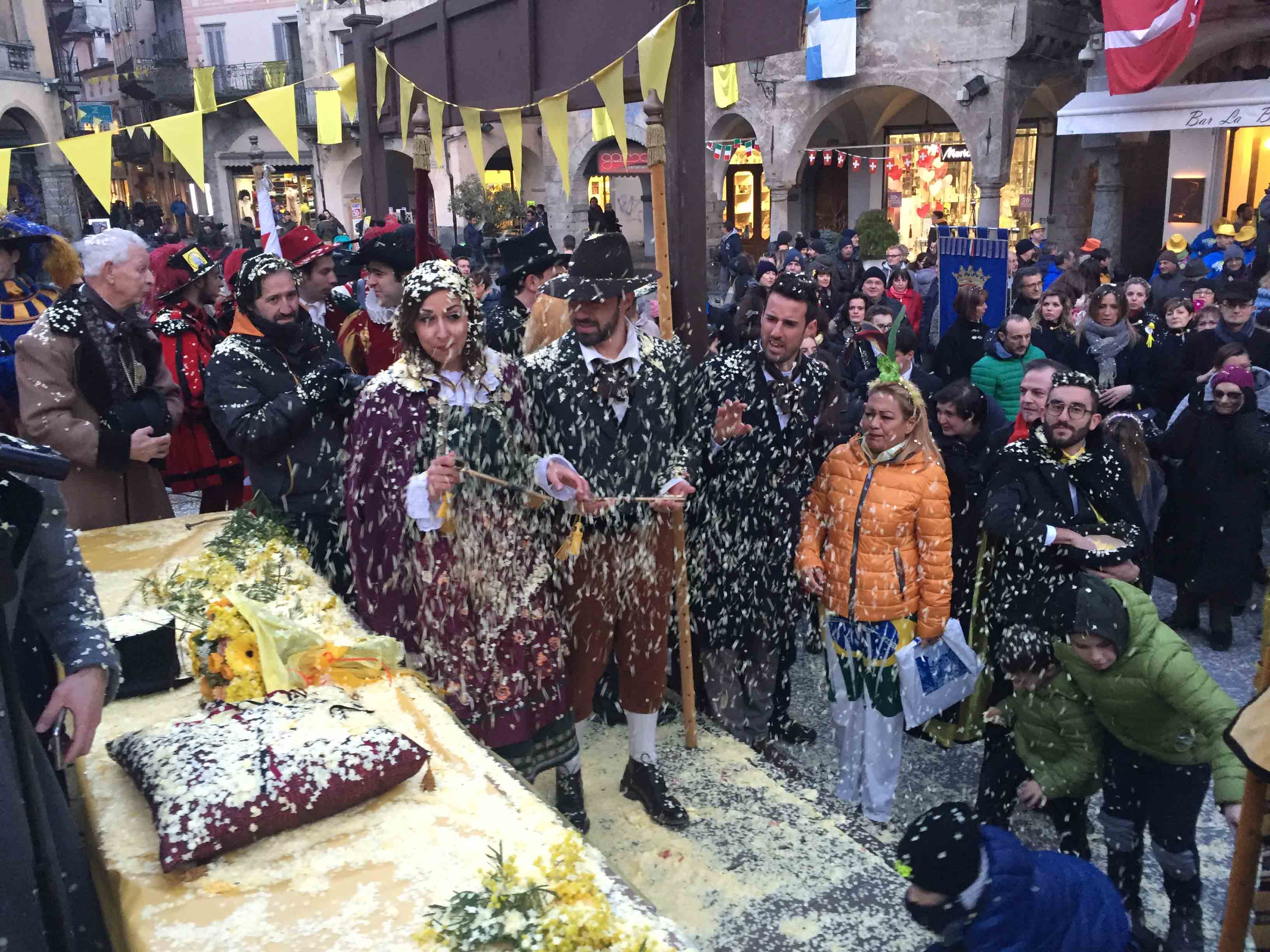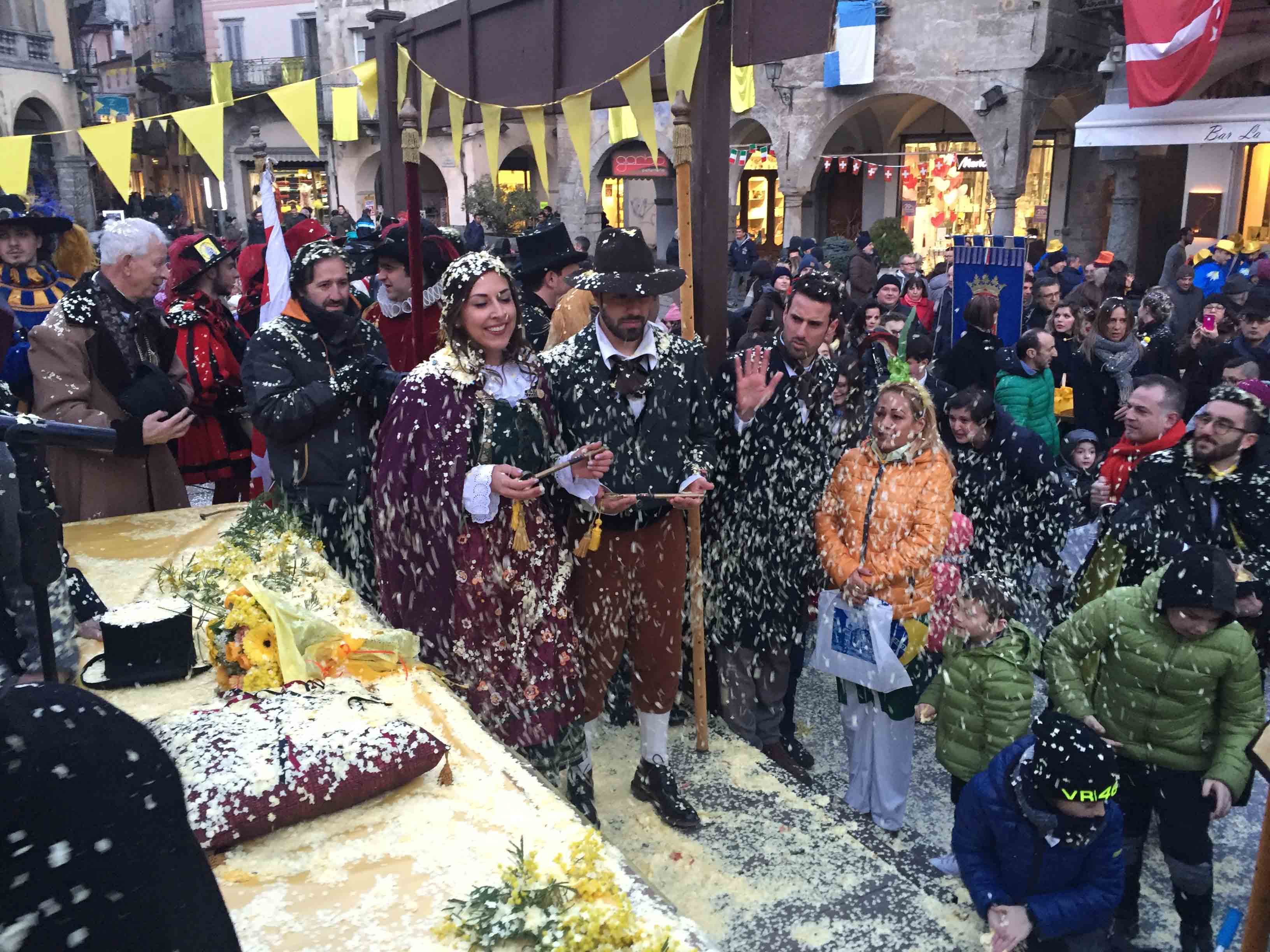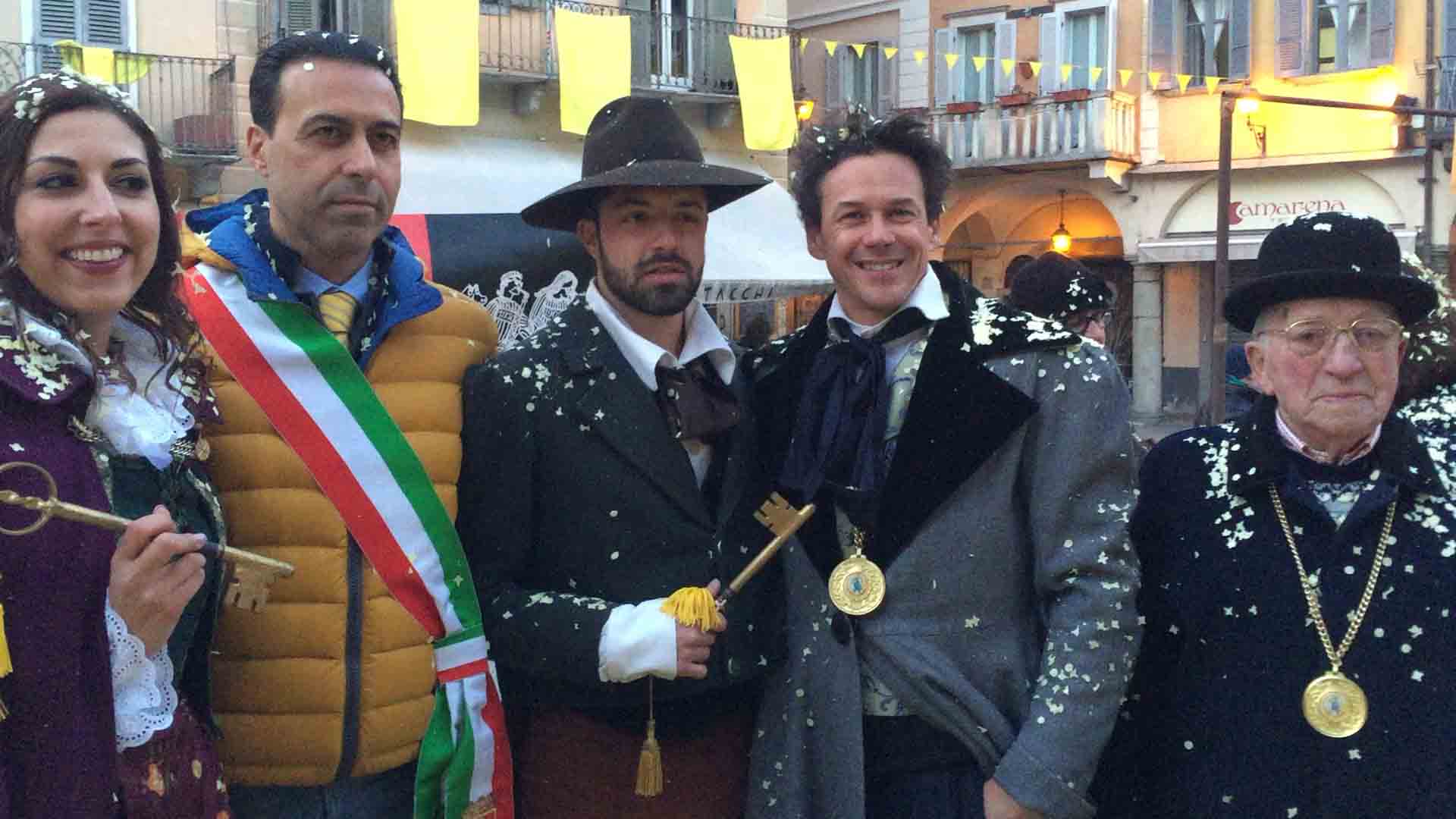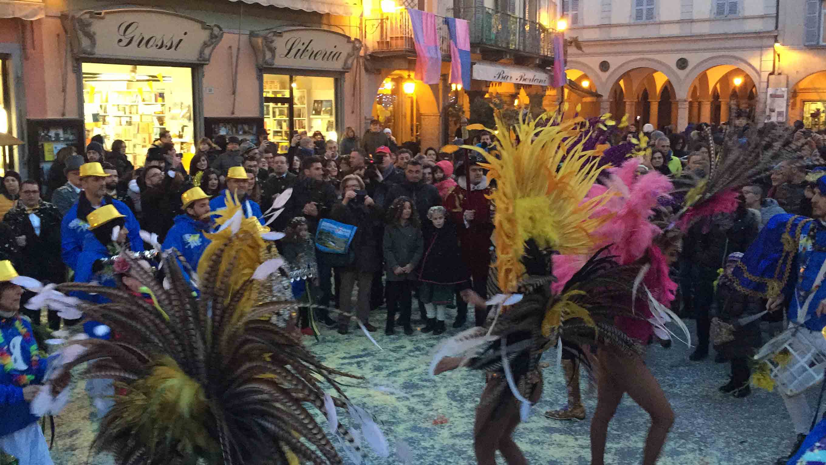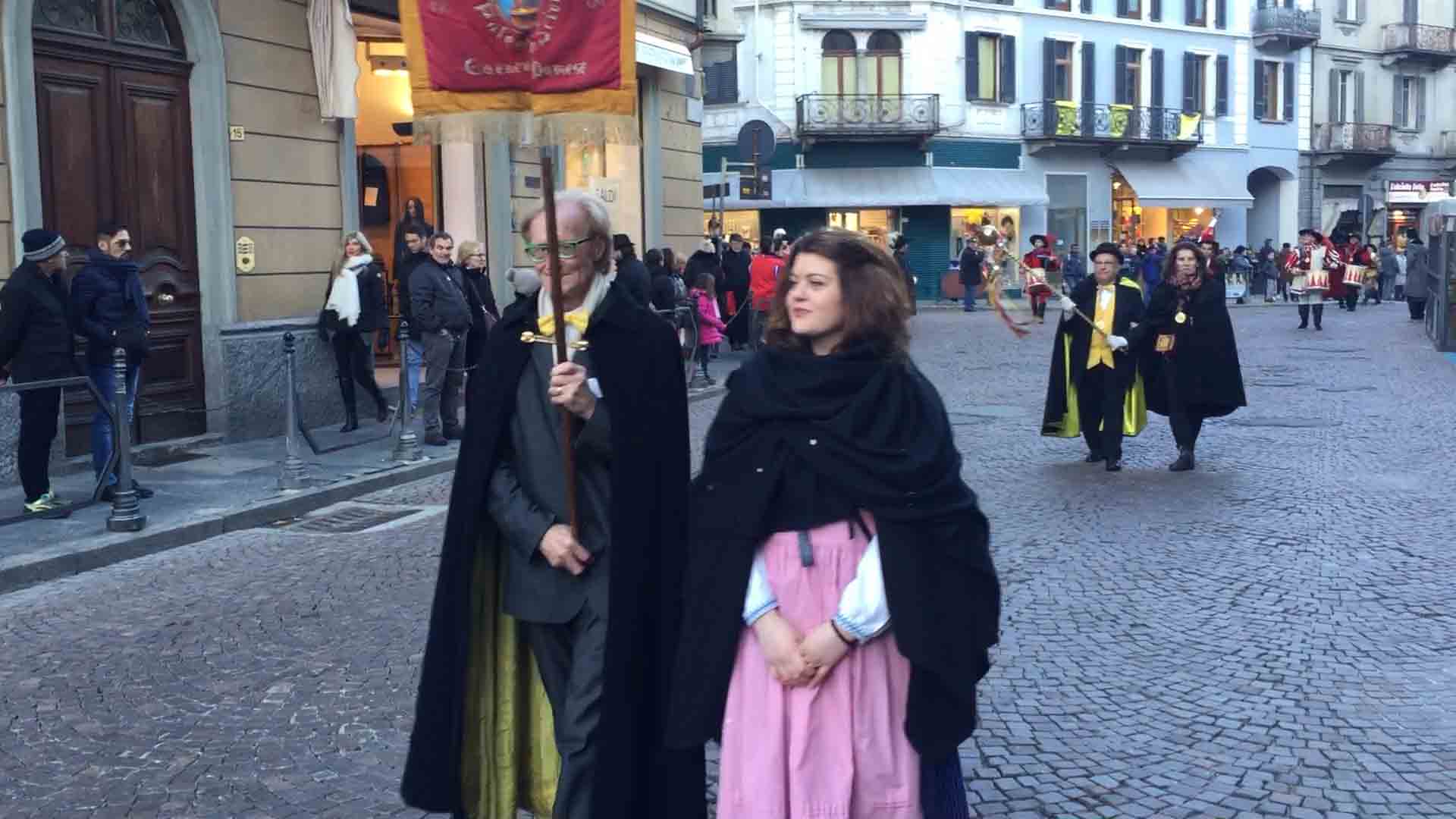 brasiliane per l'apertura del Carnevale domese 2018. Il sindaco Lucio Pizzi ha atteso sul palco in piazza Marcato che arrivasse la sfilata con il Civico corpo musicale, la Corte di Mattarella i notabili del Carnevale, i membri del Comitato Polenta e Sciiurii, e l'applauditissimo gruppo di ballerini e musicisti brasiliani. Poi i saluti di rito del presidente Alberto Polacchi, che ha ringraziato i presenti, tra cui i membri del comitato carnevale di Villadossola, ed i soci onorari del Carnevale domese, tra cui il decano Franco cantonetti, 90enne, che ha fatto un breve saluto ai presenti. Il sindaco Lucio Pizzi, in prima pagina sul giornalino satirico del Carnevale Ul Trusur, ha invogliato il Togn, la Cia ed i membri del Comitato a divertirsi e far divertire, nel rispetto delle regole e della civile convivenza: "Siate d'esempio", ha detto Pizzi. Poi la consegna delle chiavi, l'immancabile "Viva nui" cantato dal Comitato ed i balli e le musiche brasiliane. In piazza la distribuzione gratuita della polenta di Beura col gorgonzola. Domenica il Carnevale domese farà il "Giro dei Carnevali", partendo da quello della Cappuccina e poi a Calice ed a Malesco. Alle 18 in Collegiata la messa per i soci del comitato defunti.