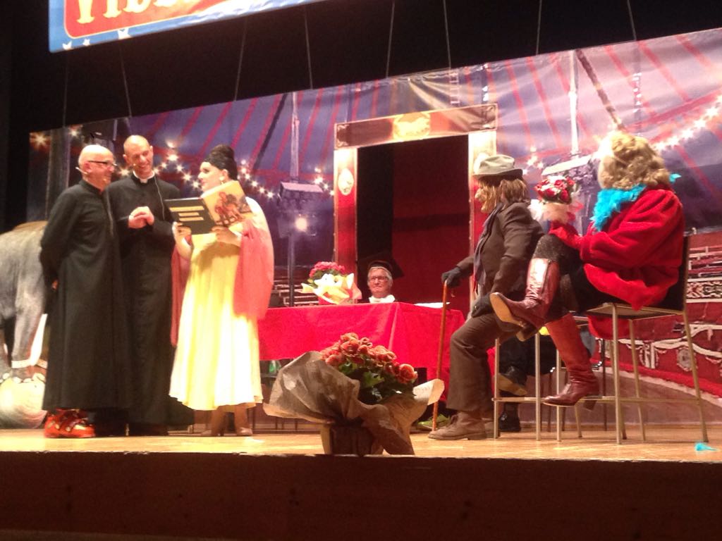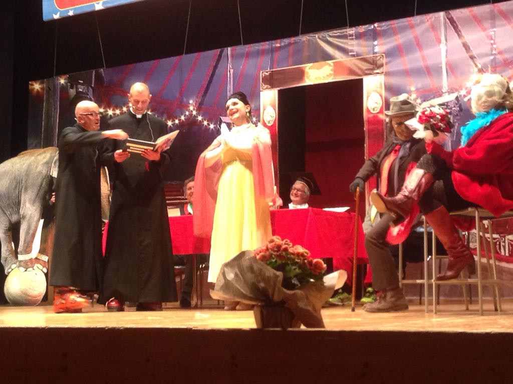 ieri sera a Villadossola con il Teatro La Fabbrica gremito, come per i grandi attori, per lo spettacolo di Carnevale culminato con il matrimonio delle due maschere tradizionali Arlori e Zecra. Sul palco un rappresentante del comitato Carnevale ha imitato la leggendaria Moira Orfei per presentare villadossolesi per una sera divenuti artisti circensi. Sul palco un rappresentante del comitato Carnevale ha imitato la leggendaria Moira Orfei per presentare villadossolesi per una sera divenuti artisti circensi. Durante lo spettacolo, anche se in forma ridotta, visto il periodo elettorale sono stati presi di mira rappresentanti dell'amministrazione in primis il sindaco. Attraverso gag sono stati evidenziati in modo ironico i problemi che la città ha vissuto in questi periodi dalla scarsità dell'acqua, al dissesto dei marciapiedi, allo sgombero neve. Non è mancata una scenetta che ironizzava sugli autovelox. In apertura il saluto del rappresentante del comitato Carnevale Sergio Pirazzi del vicesindaco Marcello Perugini e i saluti delle due maschere tipiche di Pallanzeno I Magui. Il matrimonio delle maschere tradizionali ha visto sul palco il prete finto con accanto il vicesindaco Marcello Perugini e don Alberto coadiutore del parroco di Villadossola. Al termine applausi al comitato che da quest'anno è guidato da una donna Sabrina Lucio la serata si è conclusa al piano superiore del teatro con il Carvill uno spettacolo per i giovani organizzato dal gruppo Le Faine. Oggi alle 12 e alle 16 vi sarà la distribuzione di polenta e salamini. Alle 15 si svolgerà per le vie della città la sfilata con cinque carri dei quartieri e intorno alle ore 16 i partecipanti si trasferiranno al teatro La Fabbrica. Quindi per la prima volta nella storia del carnevale Villadossolese la premiazione dei carri con l’assegnazione del paiolo 2017 e la rivelazione dell'identità di Arlori e Zecra avverrà al teatro anziché in piazza. Alle 16.30 sempre al teatro è previsto uno spettacolo di magia.