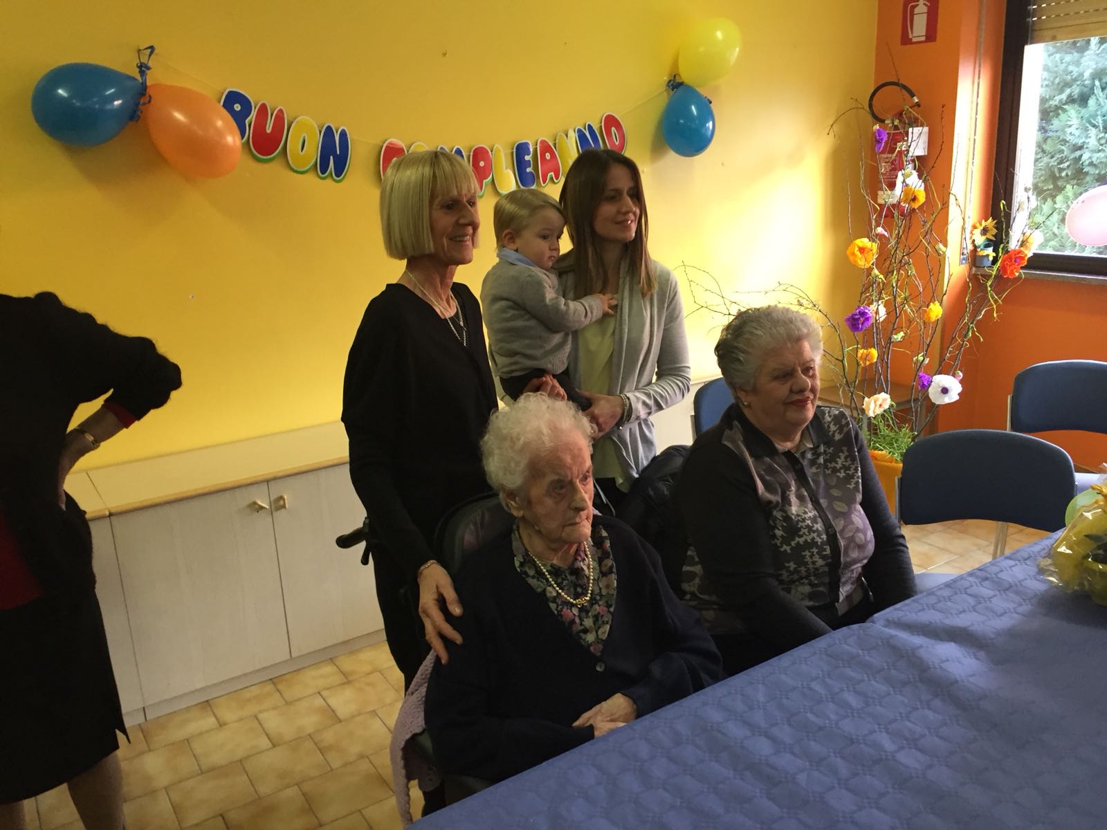 Casa di riposo domese per i 105 anni della signora Maria Bacchetta: "Faccio gli auguri personali e di tutta l'amministrazione comunale di Domo -ha spiegato il sindaco Lucio Pizzi affiancato dall'assessore Antonella Ferraris- invidio la signora e le cinque sue generazioni sucessive, che sono tutte qui con noi, e che hanno ottime prospettive di vita. Vi conosco personalmente, è un'emozione ed un onore per noi che la signora sia ospitata in questa struttura, che noi consideriamo una famiglia".