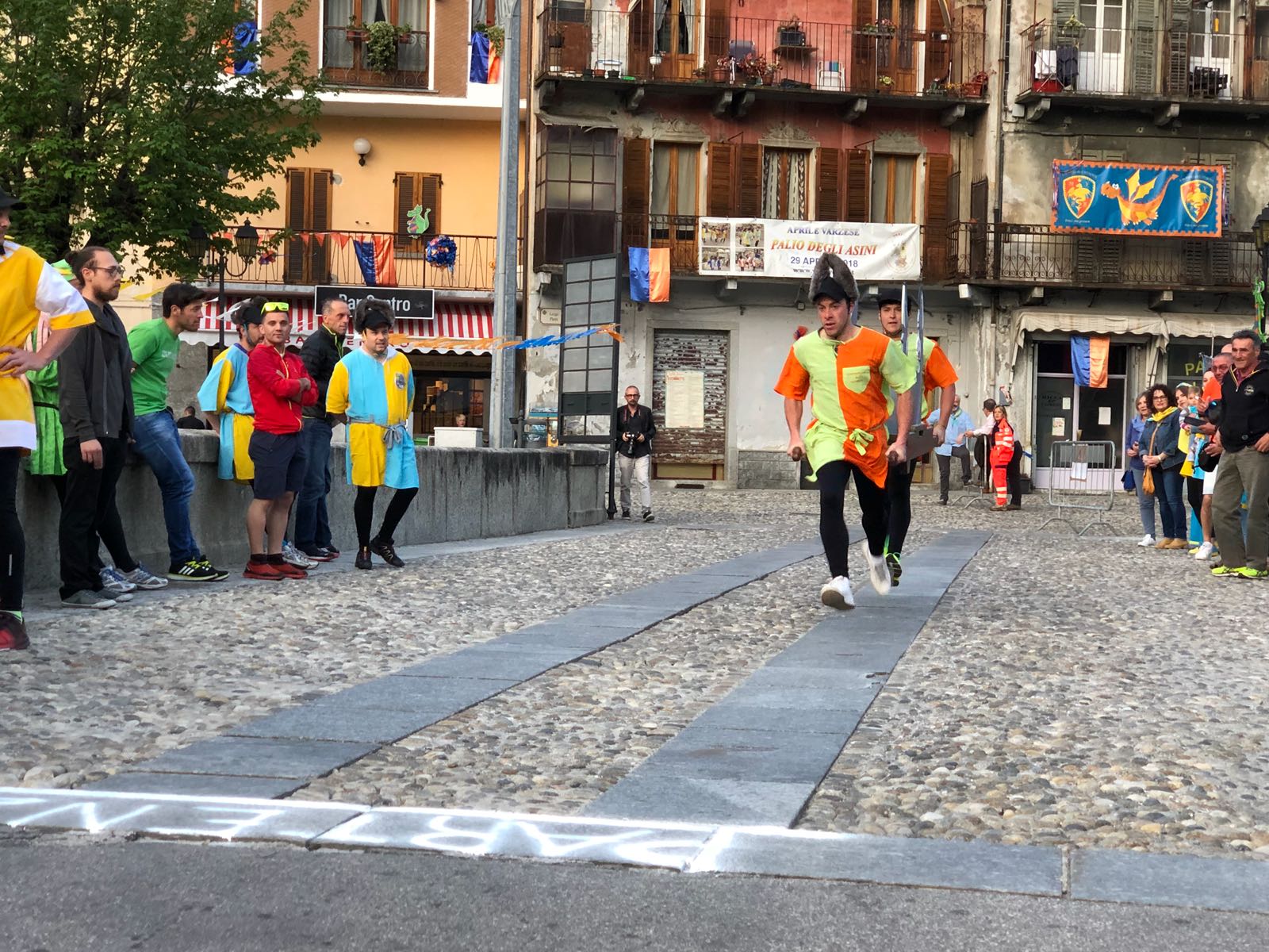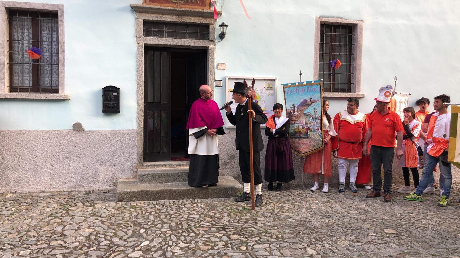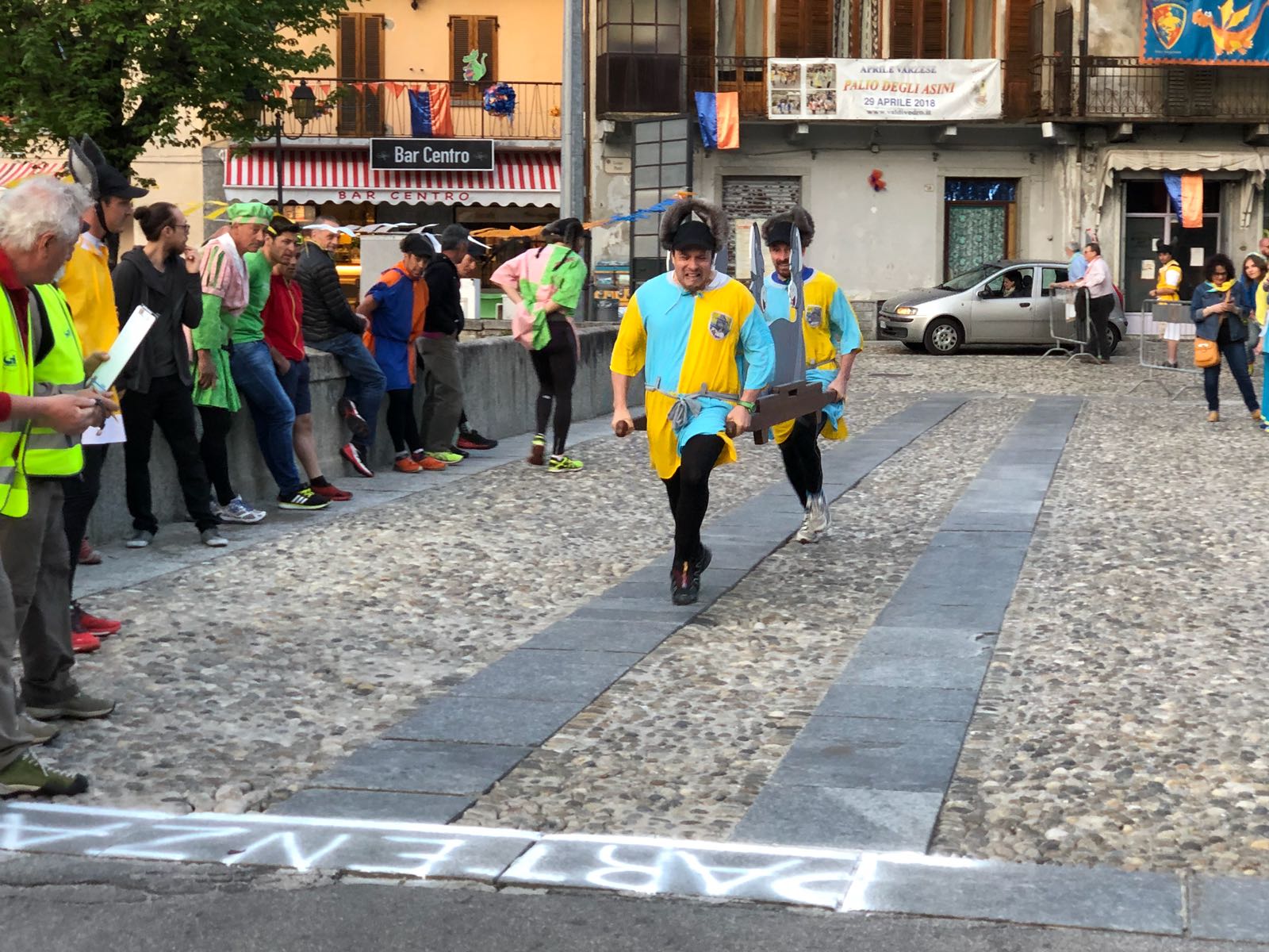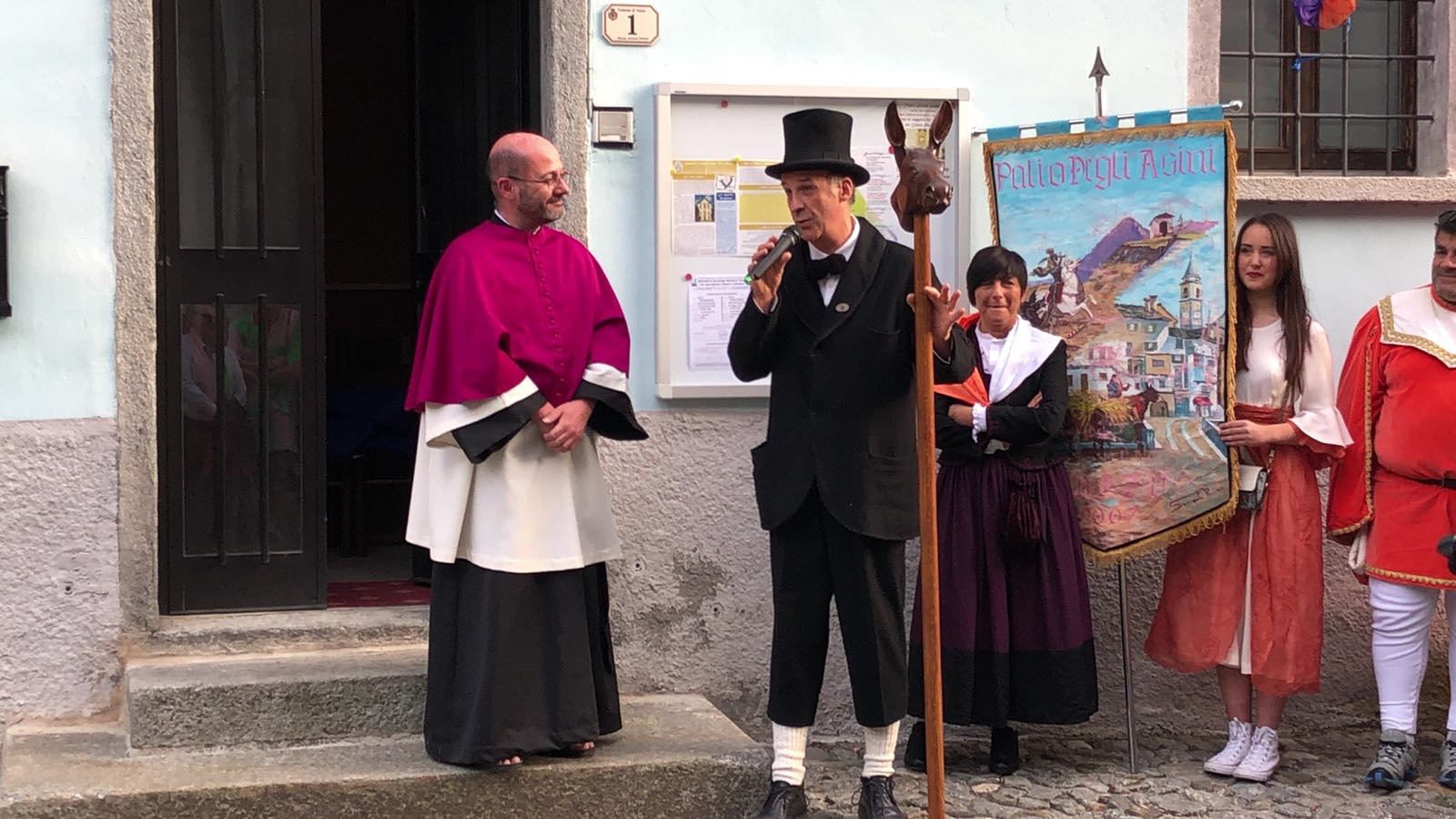il Palio degli Asini di Varzo 2018 dopo la processione delle frazioni per la richiesta delle autorizzazioni all’ autorità civile e religiosa ottenuta giovedì sera. Quest’anno la grande novità è stata la prova cronometrata che ha permesso ai vincitori di scegliere la griglia di partenza, particolare non indifferente, mentre ai sindaci è toccato estrarre il peso che i propri corridori dovranno portare domenica 29, quando si disputerà la dodicesima edizione di questo particolarissimo e unico Palio. Vincitrice della cronometro è stata la frazione di Cattagna, seguita dalla sorpresa Coggia, terza la frazione di Altreggiolo-Riceno quarti i detentori del palio di Bertonio, poi la Colla, Castello, Alneda e Fontana. Senza tempo il Pasquè vittima, senza conseguenze di una caduta! Da segnalare, purtroppo, l’assenza della frazione Piaggio che all’ultimo momento non è riuscita a presentare la squadra.
