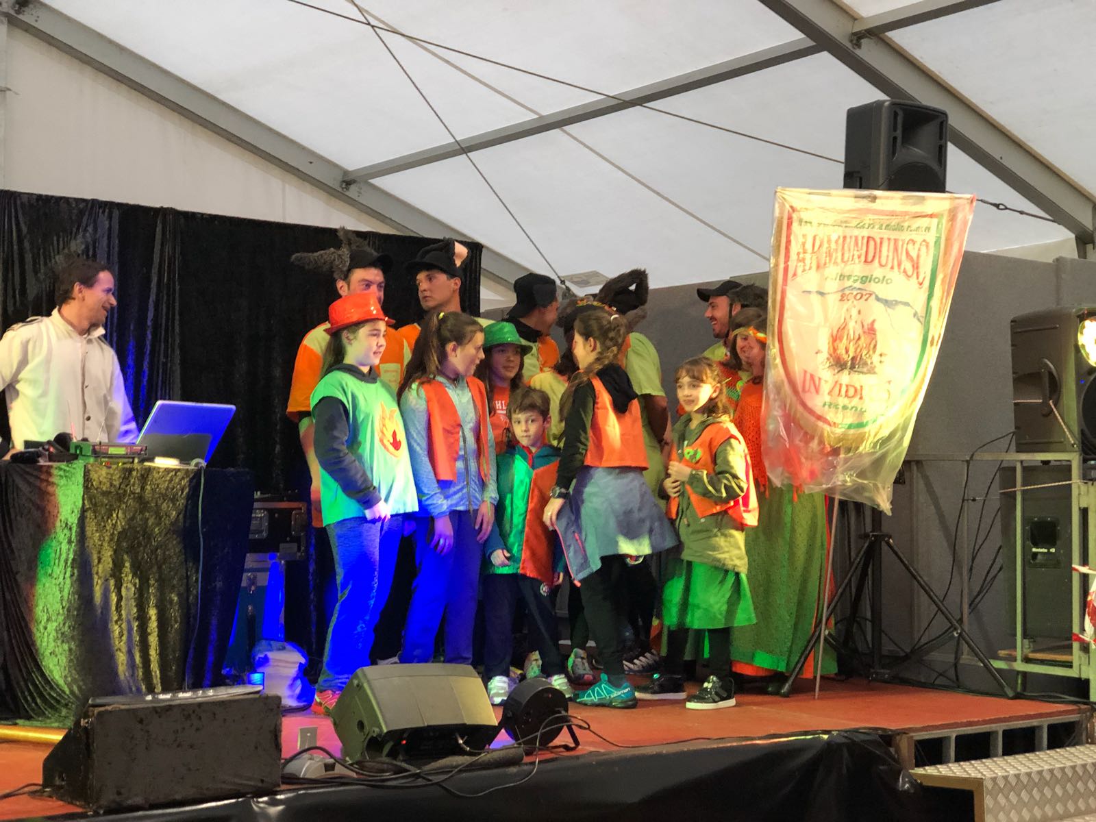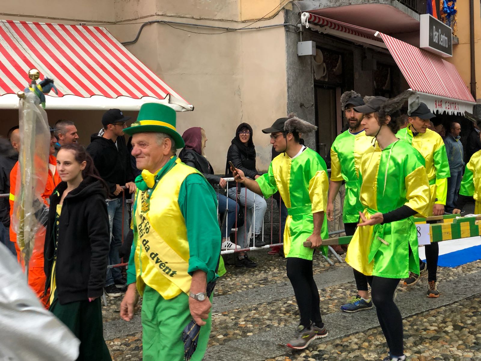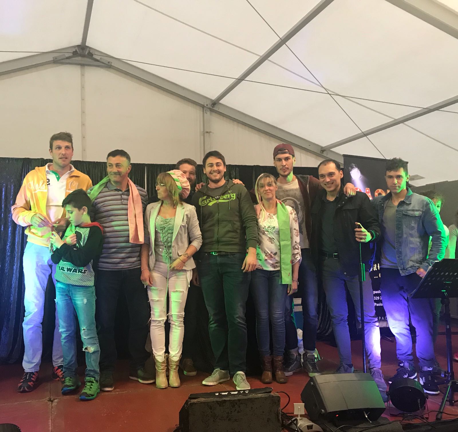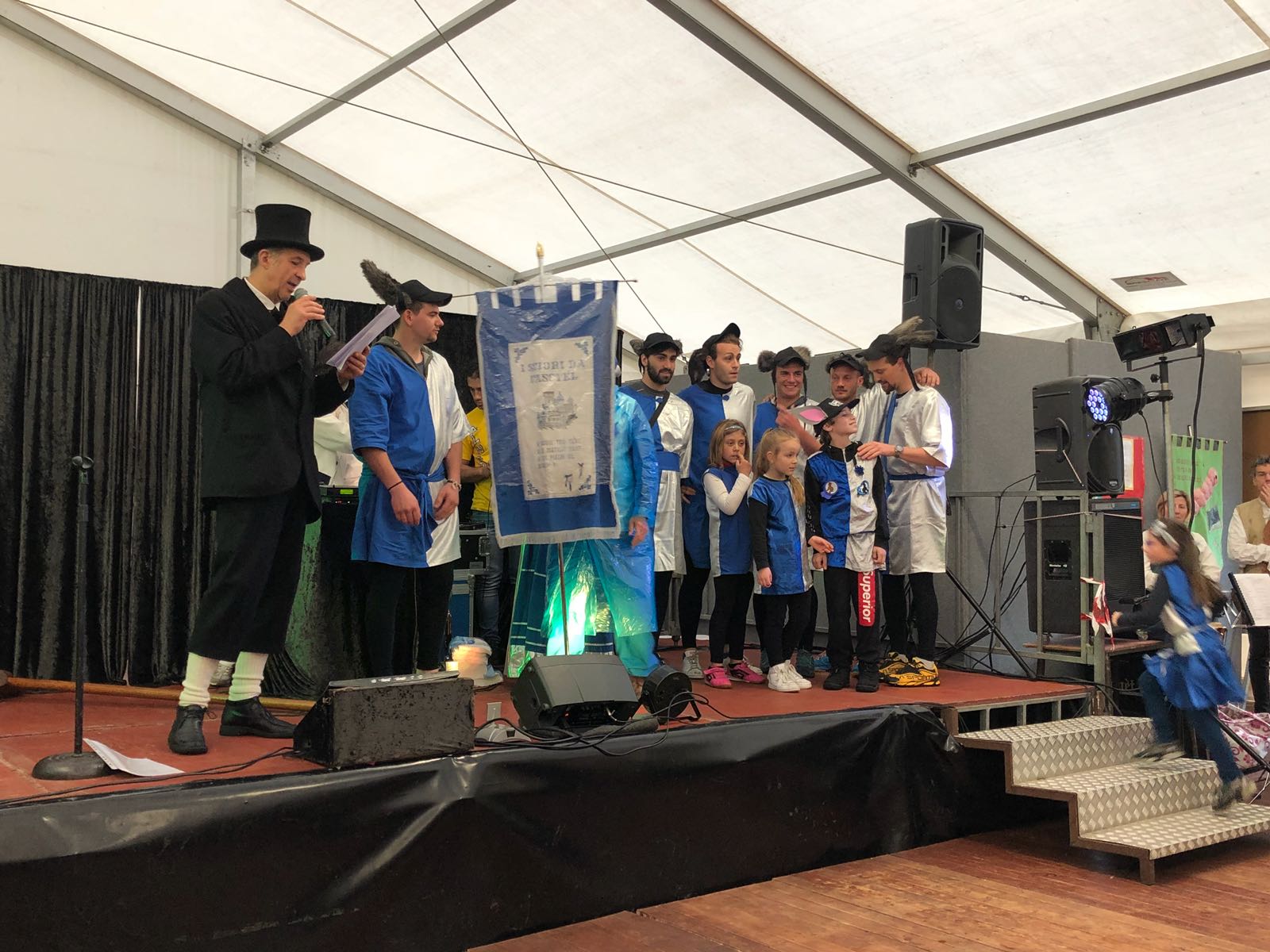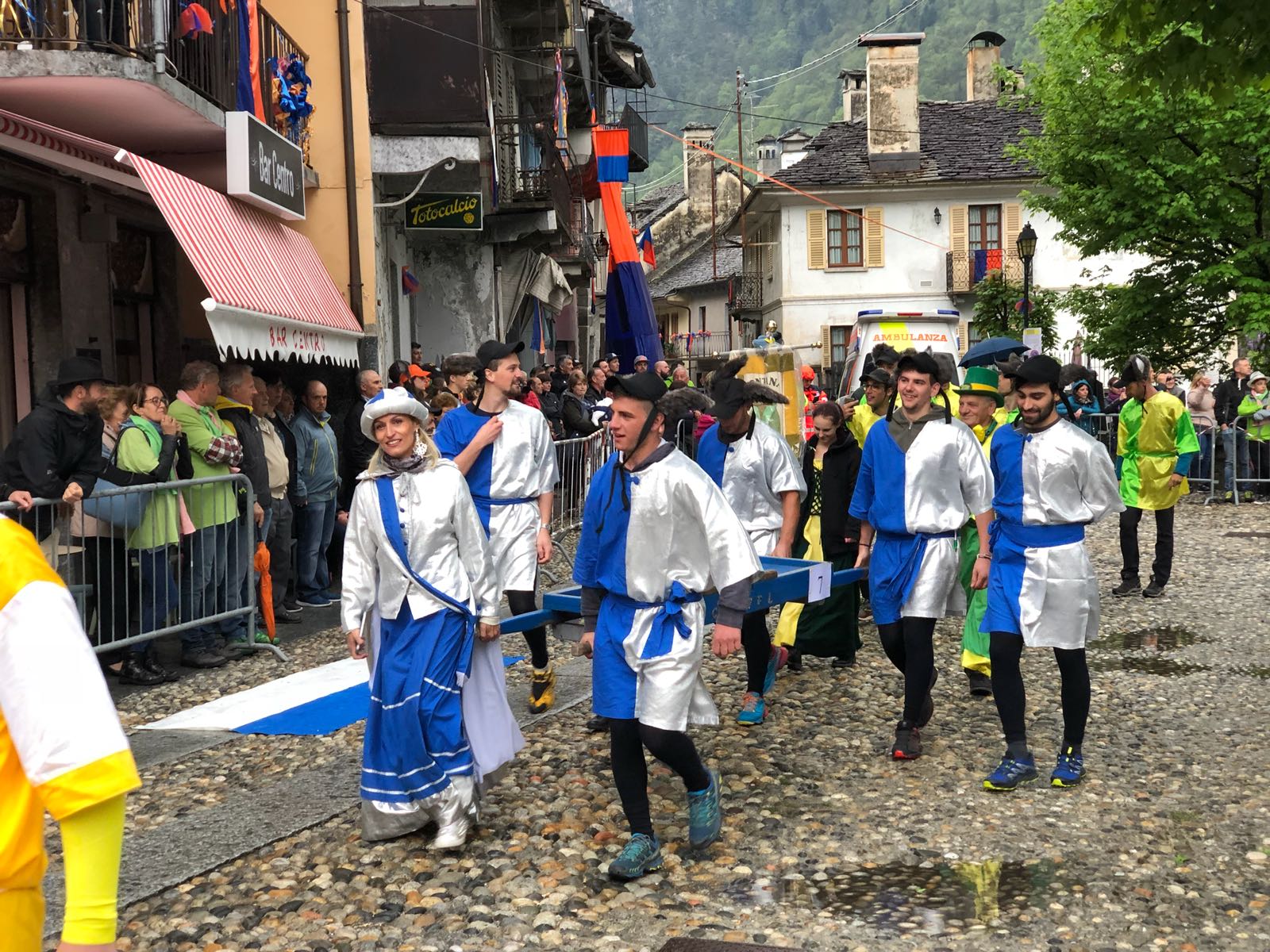 VARZO-30-04-2018-Ancora due super serate all’ Aprile Varzese 2018, stasera il tributo ai Litfiba con la miglior tribute band d’Italia 2018, i Santiago, e domani con l’orchestra spettacolo di Matteo Tarantino. In una giornata piovosa si è svolta domenica a Varzo la dodicesima edizione del Palio degli Asini, Palio ormai famoso per il fatto che non sono gli animali a correre, ma le persone, appunto gli Asini di Varzo. Numerosa la presenza di pubblico che ha sfidato il maltempo per assistere ad un Palio unico nel suo genere. Il programma della giornata ha visto la presentazione delle squadre sotto il tendone, dato che il maltempo non ha consentito la sfilata delle frazioni, seguita dall’ esibizione del gruppo bergamasco “Baghet Band”, del Corpo Musicale Varzese e dal minipalio dei bambini, che ha visto ben 40 “asinelli” sfidarsi in una replica del Palio dei grandi, ma senza una classifica ufficiale. Infine il Palio degli Asini. La gara è stata vinta dalla frazione Colla, che dopo il durissimo tratto in salita, ha dato vita ad una rimonta entusiasmante nei tre giri ricavati nel centro del paese. Seconda si è classificata Alneda e terzi i detentori del Palio di Bertonio. Con questo successo la Colla raggiunge Bertonio con quattro palii vinti. Questi i corridori della Colla: Andrea Alberto, Galbiati Giovanni, Comazzi Walter, Ramoni Denis, Ramoni Simone e Sanna Matteo, sulla portantina Fontana Emanuela. La giornata è poi proseguita con la posa della bandiera dei vincitori sull Torre Medioevale, la premiazione delle squadre e la consegna del Palio. In serata la cena delle frazioni con canti, balli e tanta festa con lo spettacolo di Paolo Drigo, ospite ormai fisso del Palio.