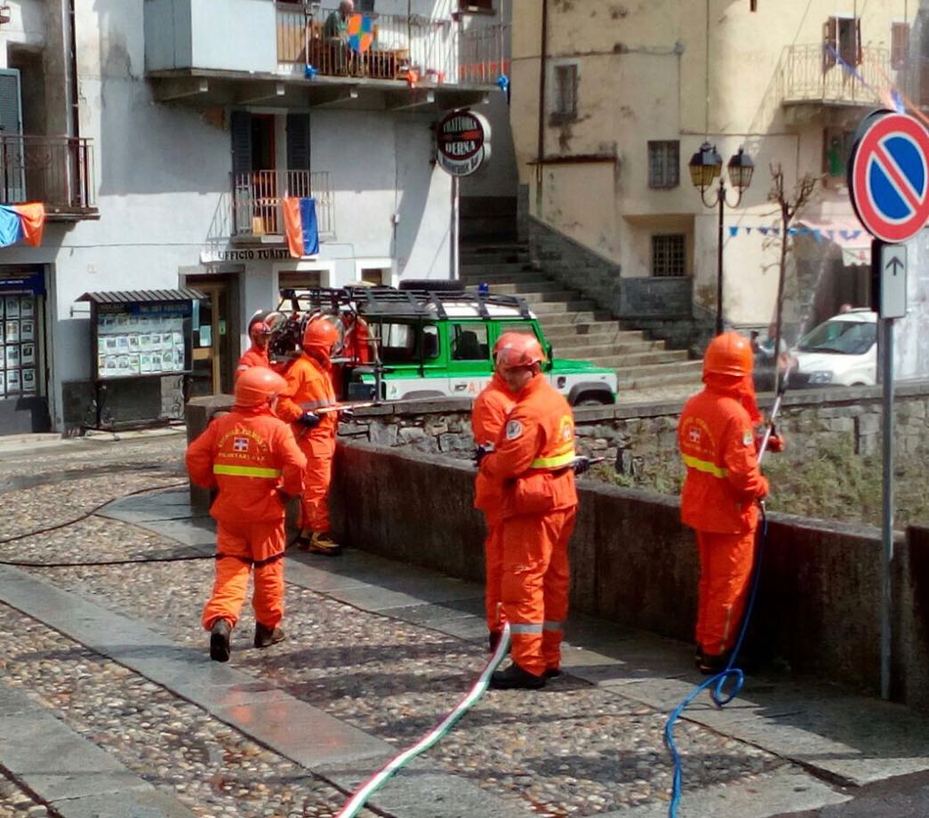 VARZO- 06-05-2018- All’interno dei festeggiamenti dell’Aprile Varzese appena conclusisi si è svolta un’ interessante esercitazione congiunta del Corpo Volontari Vigili del Fuoco e A.I.B. di Varzo. Il corpo volontari antincendio boschivo, appunto A.I.B., di Varzo è stato istituito nel 1983, da 13 volontari, oggi ne conta 22 tra effettivi, generici e di supporto e ha compiti di protezione civile, infatti, oltre che intervenire sul territorio per gli incendi, è chiamato per calamità naturali fuori regione come ad esempio per l’alluvione in Liguria e il terremoto nel centro Italia. I volontari del distaccamento di Varzo, possono contare su una Panda 4x4 e su un pick-up, sul quale nei periodi di maggior rischio si può montare un modulo antincendio, di proprietà del comune divedrino e su un defender con modulo antincendio fisso di proprietà della regione. Il caposquadra Albertuzzi Sereno ha espresso grande soddisfazione per la costante collaborazione con l’amministrazione comunale e per l’ingresso nella squadra di cinque nuovi giovani volontari, che una volta superati gli esami teorici e pratici, andranno a rinforzare un gruppo di volontari, che svolge un’attività di pronto intervento fondamentale per chi, purtroppo, sempre più spesso, viene colpito da calamità naturali.