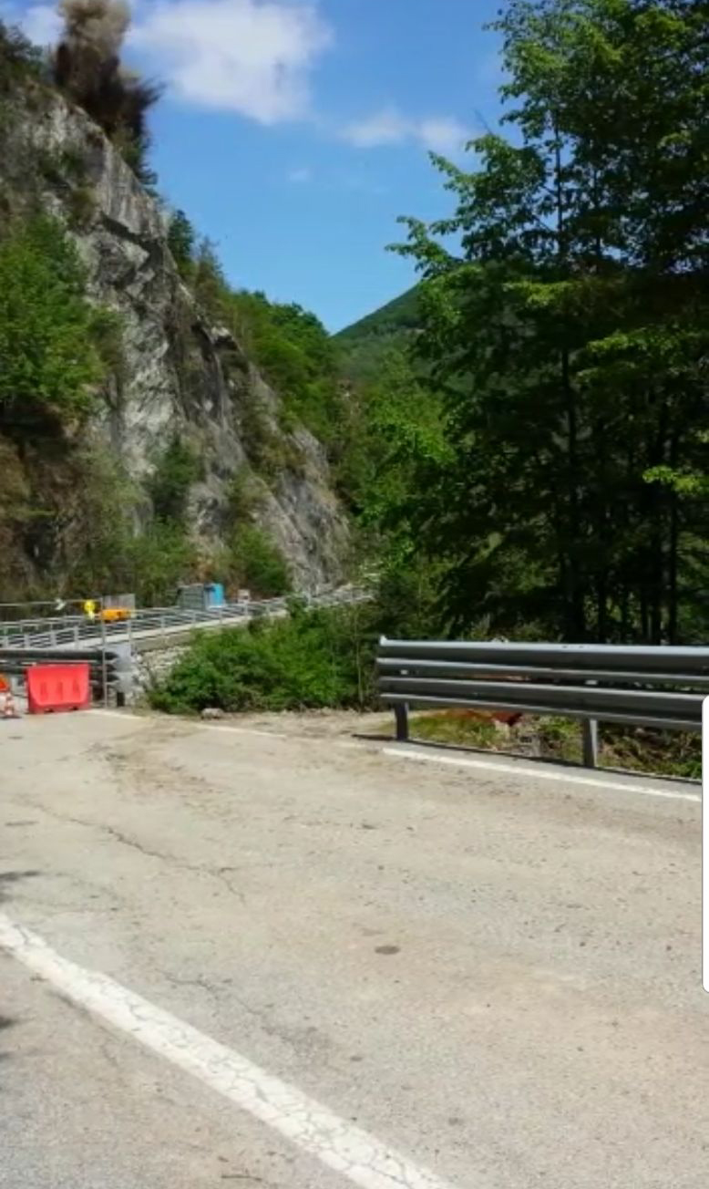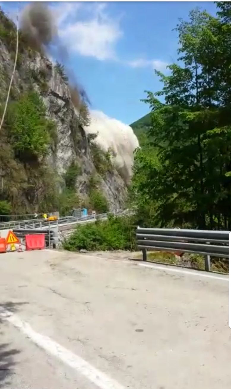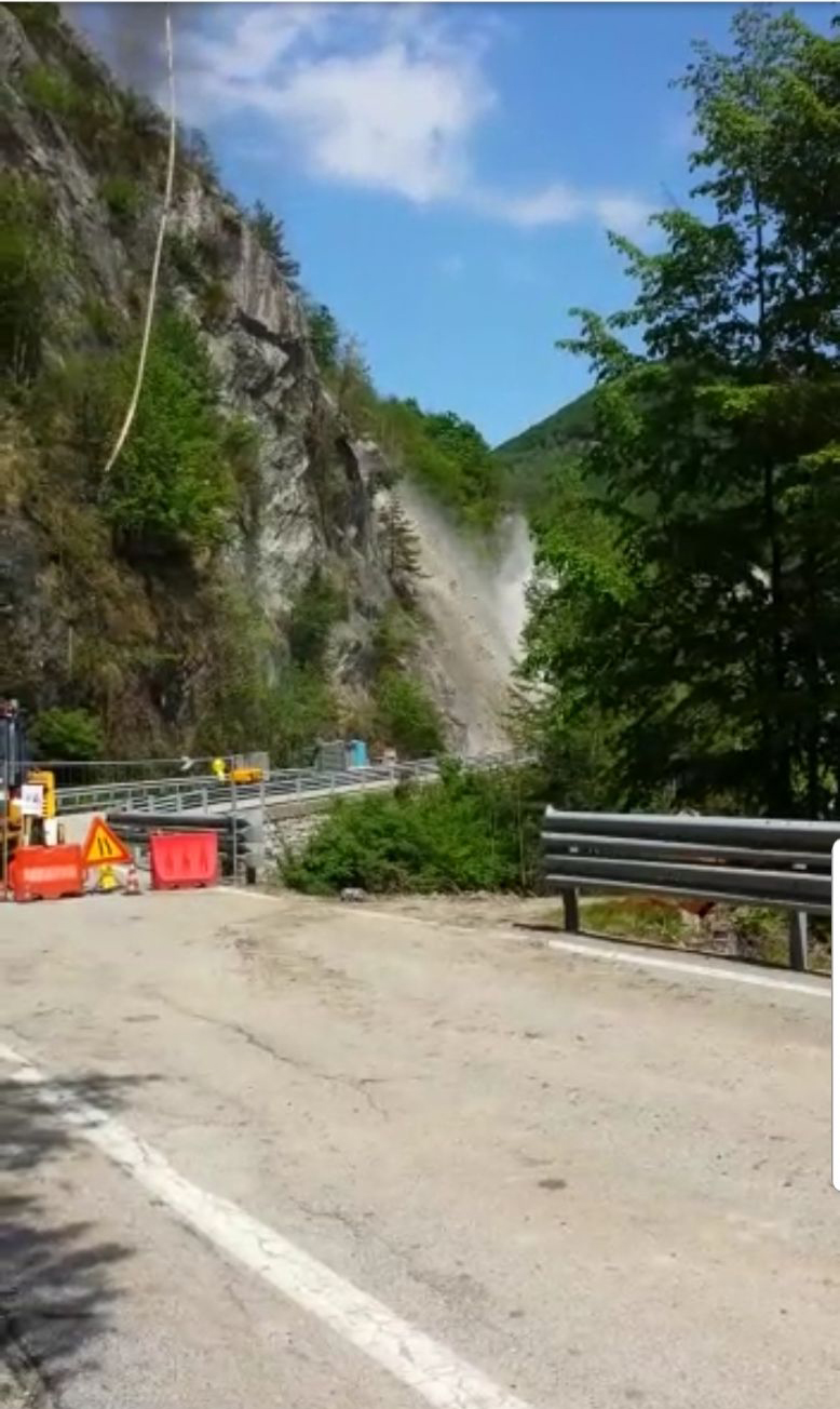 cubi di roccia quelli caduti dopo lo scoppio della prima delle due mine previste a monte della 337 della Vigezzo a Meis di Re, nel tratto della tragedia di Pasquetta, quando due coniugi svizzeri rimasero travolti dai massi franati dalla montagna: “La prima carica è andata bene tecnicamente- spiega il sindaco di Re Oreste Pastore- il problema è che bisogna poi vedere come ha reagito la montagna, una seconda carica più piccola verrà fatta in serata per tirare giù circa 100 metri cubi di materiale rimasto”. Nei prossimi giorni lo sgombero del materiale franato con le mine, pari quasi a quello caduto lo scorso 1 aprile come volume, e poi le verifiche sulla parete prima di ipotizzare una riapertura.