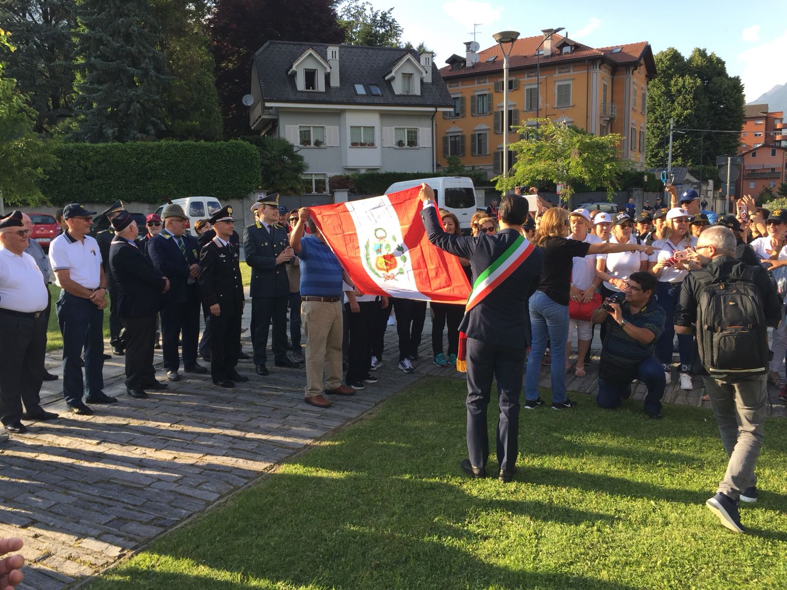 DOMODOSSOLA- 02--06-2018- Una delegazione peruviana è stata accolta venerdì dall’amministrazione domese in Piazza Chavez, Presente una comitiva di circa 70 persone già appartenenti alla Polizia Nazionale del Perù e ora in pensione. Gli ospiti peruviani attraversato il centro domese sino alla piazza intitolata all’intrepido trasvolatore. Qui la delegazione ha deposto un omaggio al monumento dedicato all’eroe peruviano”.