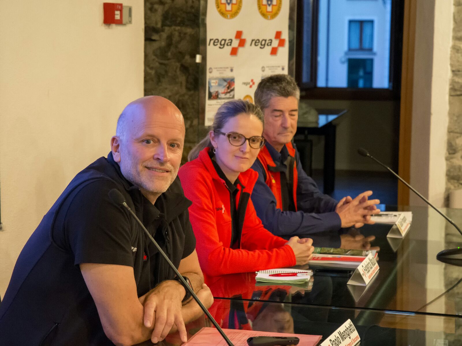 Alla serata organizzata dal CAI di Varzo sono intervenuti Paolo Menghetti Tecnico Soccorritore della Rega, la sua collega Federica Mauri e Giulio Frangioni coordinatore della segreteria Nazionale del Soccorso Alpino Italiano.