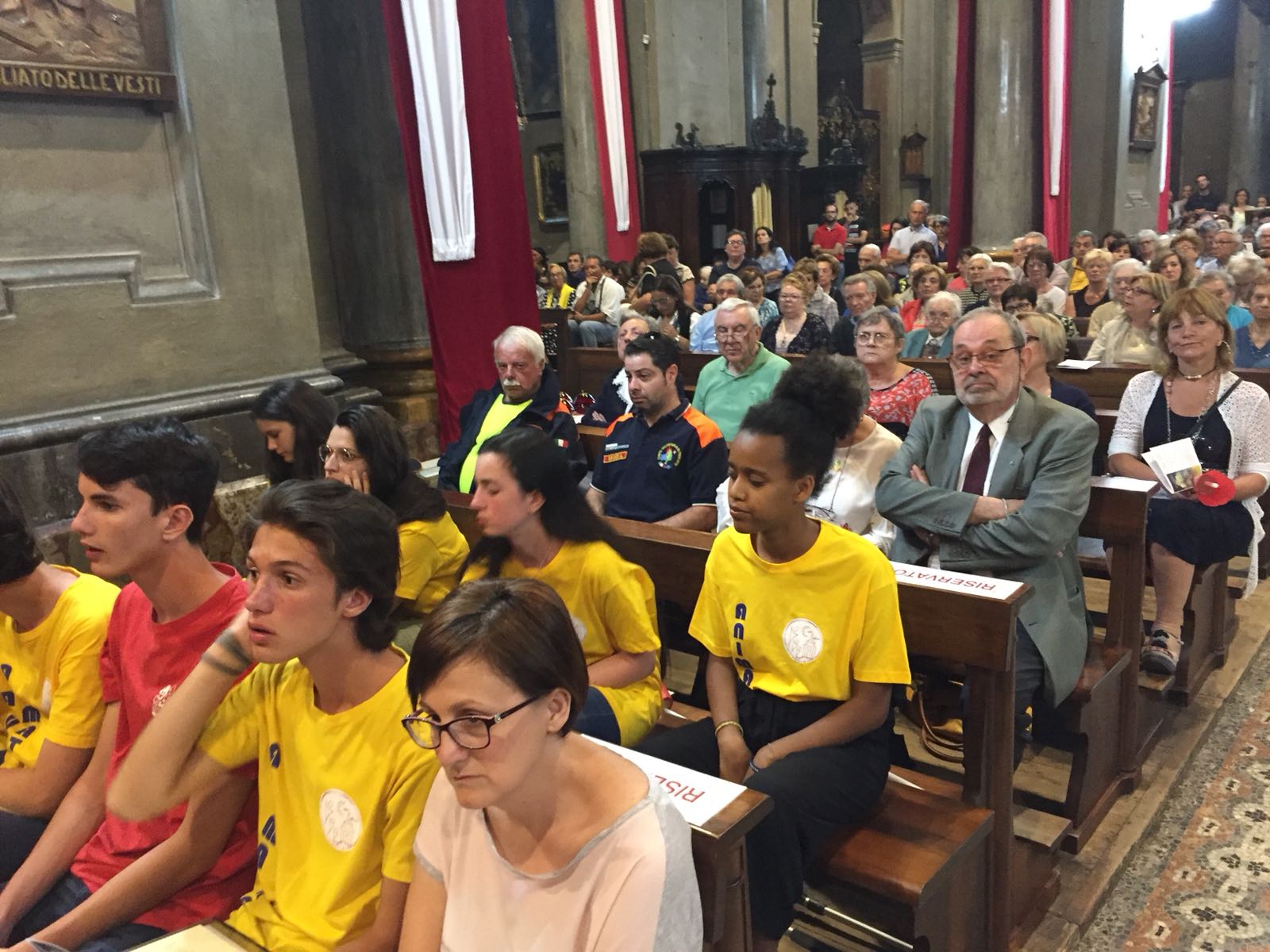 che martedì sera hanno partecipato alla tradizionale processione per la festa patronale domese in onore dei santi Gervasio e Protasio. Dopo la Santa Messa officiata dal vicario vescovile ossolano, e parroco di Domo, don Vincenzo Barone, che si è rivolto principalmente ai giovani ed al loro contributo per migliorare la società, è stato fatto uno scambio di doni col sindaco Lucio Pizzi, e sono stati onorati due collaboratori della Parrocchia con una targa. Ai presenti in collegiata è stato distribuito un opuscolo sui due santi Patroni. Poi è partito il lungo corteo con la statua dei Santi, che è stato portato dagli alpini per le vie cittadine. In processione oltre ai numerosissimi fedeli e religiosi anche la confraternita di Santa Marta, la banda cittadina, i gruppi folk, il sindaco Lucio Pizzi con diversi componenti della giunta, e le autorità militari locali. Variato il percorso della processione nelle vie domesi rispetto agli anni scorsi, quando si terminava in piazza Stazione, con la novità della benedizione alla città impartita dal parroco don Vincenzo Barone sotto il cedro di piazza Chiossi.