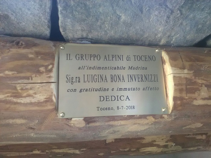 TOCENO- 09-07-2018- È stata inaugurata ieri a Toceno, la ristrutturazione dell' "albi", antico abbeveratoio sistemato dal Gruppo Alpini di Toceno insieme agli amici degli Alpini. "L'amministrazione esaminata la richiesta del presidente del Gruppo Alpini di Toceno, Flavio Zamboni, con grande piacere ha autorizzato il gruppo all'esecuzione di interventi nella messa in sicurezza e bonifica dello stato dei luoghi ed in particolare, al rifacimento del muro di sostegno interno all'albi, alla revisione del manto di copertura in piode, alla pulizia e rifacimento della mulattiera d'accesso allo stesso, ed altri interventi minori, nonché al ripristino della rete idrica d'alimentazione della fontana" ha spiegato il sindaco di Toceno, Tiziano Ferraris. Questa nuova opera è stata dedicata alla storica madrina del Gruppo Alpini di Toceno, Luigina Bona Invernizzi, ricordata con una targa per aver contribuito, con entusiasmo a tante iniziative benefiche e per essere stata un punto di riferimento per chi soffre donando lo stabile accanto all'abbeveratoio al Centro Tumori di Milano, poi utilizzato per molti anni come convalescenziario. L'inaugurazione si è tenuta nell'ambito dell'annuale Festa Campestre degli Alpini. Ieri mattina dopo la Santa Messa che ha visto la presenza anche della Banda Musicale di Malesco, è stata posta la Corona d'Alloro a ricordo dei Gloriosi Caduti della prima e seconda guerra mondiale. La festa è proseguita all'Alpe Promezzo con polenta, costine e canti in allegria.