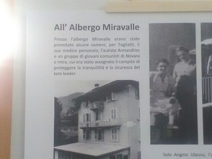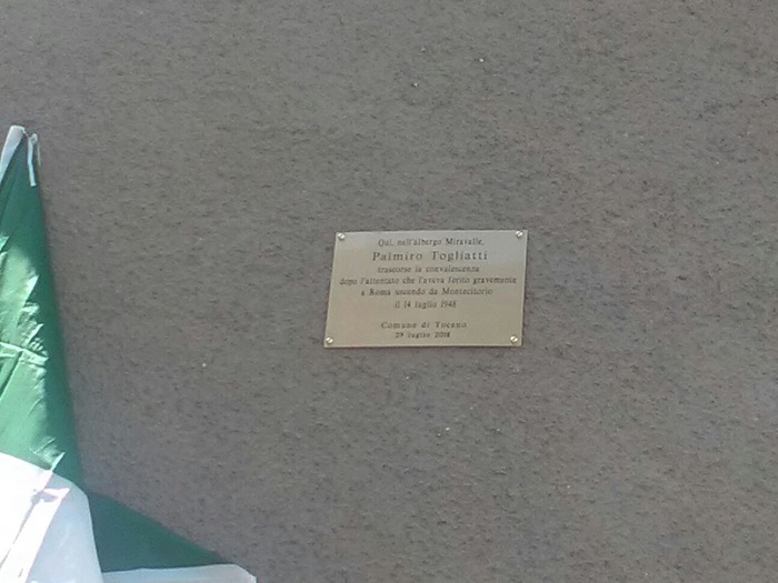TOCENO- 30-07-2018- Toceno al centro della storia italiana. Un episodio poco conosciuto, se non da alcuni valligiani e da chi ha letto le ricostruzioni di Benito Mazzi, ieri è stato celebrato nel piccolo borgo vigezzino: proprio qui nel 1948 Palmiro Togliatti, convalescente dopo l'attentato di via della Missione a Roma, recuperò le forze nel più assoluto anonimato, soggiornando per due settimane nell'albergo Miravalle. Il politico comunista scelse Toceno dopo aver cercato la necessaria calma e tranquillità ad Orta, ove invece fu assillato dai giornalisti. Alla presenza delle autorità e con la benedizione di don Paolo Montagnini è stata scoperta la targa commemorativa affissa sulla parete dell'edificio che al tempo aveva ospitato l'albergo. Erano presenti i sindaci della Valle, di qualsiasi colore politico, l'assessore alla cultura della regione Piemonte Giovanna Pentenero, Anna Maria Ubezio, figlia dei gestori del Miravalle. La giornata è proseguita con l'apertura della mostra documentaria presso la sala parrocchiale di Toceno e si è conclusa con la proiezione del cortometraggio " Via della Missione" regia di Mattia Fazzari e soggetto di Maria Agostina Pellegatta. La parte scientifica della rassegna è stata curata dalla stessa già senatrice Maria Agostina Pellegatta ed Elio Giacometti. La presentazione della mostra è stata introdotta da Cristina Caretti, membro dell'associazione culturale biblioteca di Toceno e ha visto la collaborazione di Pasquale De Lucia e Mario Bassi che hanno curato la ricostruzione storica. La mostra " Convalescenza a Toceno dopo l'attentato del 14 luglio 1948" resterà aperta fino al 19 agosto.