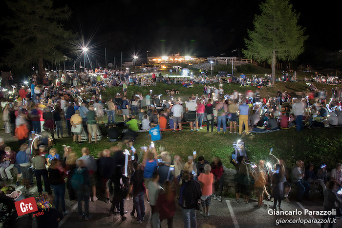 MACUGNAGA - 06-08-2018 - Macugnaga sold out e una distesa infinita di spettatori ai piedi della parete est del Monte Rosa, sabato 4 agosto, per la seconda serata di Vette d'artificio 2018, parte del Festival di fuochi d'artificio coordinato dal Distretto Turistico dei Laghi, Monti e Valli,