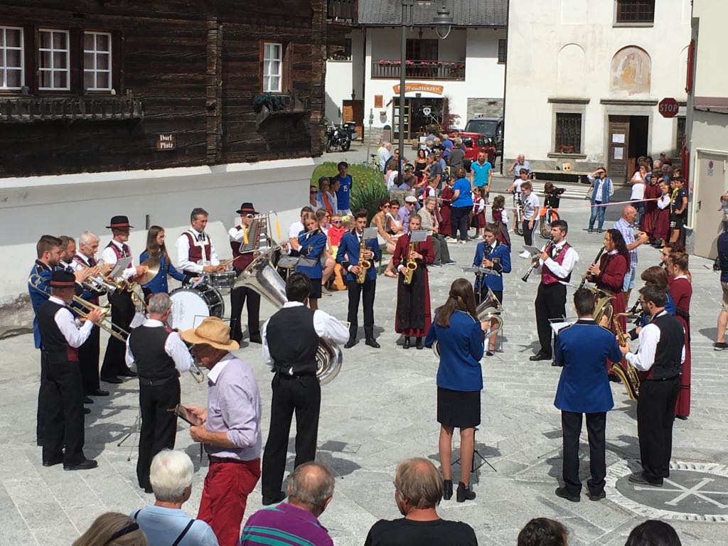 FORMAZZA-11-08-2018- Celebrato il “pomeriggio delle tradizioni” a Formazza con l'inaugurazione a Ponte della “Dorf Platz”. Alle 15 il taglio del nastro, il saluto del sindaco Bruna papa e la spiegazione del simbolo posto al centro della piazza, che è stato tratto da un segno di casato di una anonima famiglia formazzina: più precisamente da una Tessera degli "Hobteller" (diritti d'alpe) di Valtoggia Bassa all'inizio dell'800.