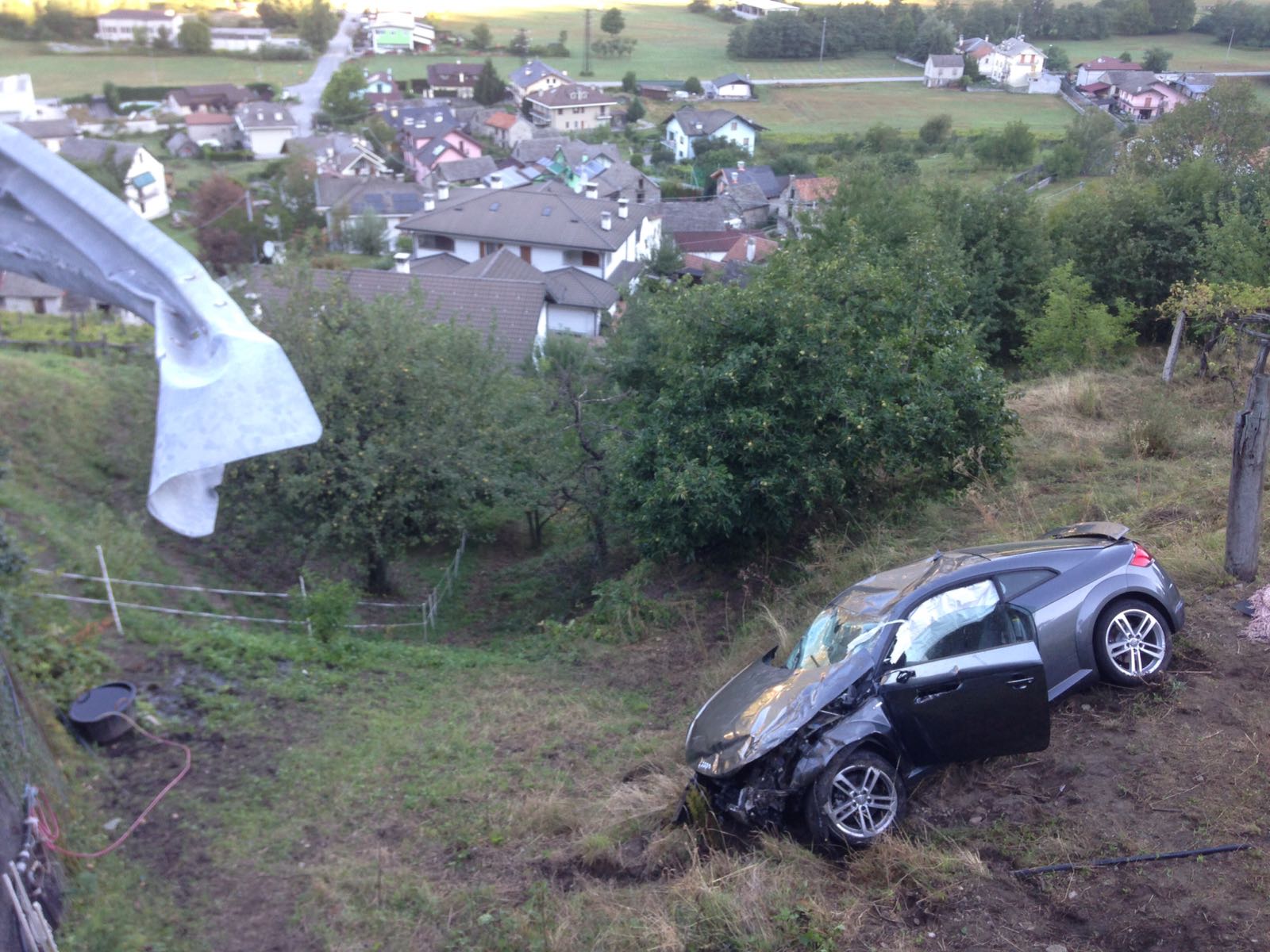 le due persone a bordo dell'AudiGt che questa notte si è schiantata a Trontano contro un guardrail, sfondandolo e precipitanto nel prato sottostante, fortunatamente senza cappottare e finendo su un prato anzichè in un canalone. I due protagonisti, autista e passeggero, hanno lasciato la vettura e sono andati a casa a dormire. Solo un passante, all'alba, si è accorto del rail divelto, ha visto la vettura distrutta ed ha subito dato l'allarme. Sul posto i vigili del fuoco domesi ed i carabinieri, che hanno cercato prima all'interno della vettura nei prati circostanti, poi presso l'abitazione del proprietario dell'auto, trovandolo, insieme all'amico, indenne. Per recuperare la vettura è dovuta arrivare una autogru da Verbania.