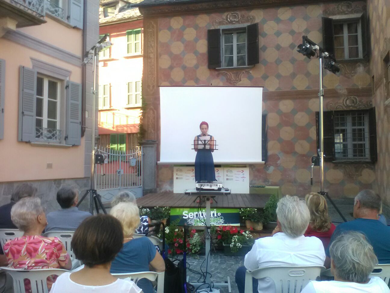 S.MARIA MAGGIORE- 20-08-2018- Ha preso ufficialmente il via nel tardo pomeriggio odierno, la sesta edizione del festival di letteratura e spettacolo " Sentieri e Pensieri" , nella cornice di piazza Risorgimento a Santa Maria Maggiore. La prima ospite, la scrittrice Michela Murgia, impossibilitata a partecipare a causa di un serio problema di salute, come annunciato nella preview di ieri sera, ha registrato dalla sua casa di Roma un video realizzato in esclusiva per la rassegna. Nel monologo durato circa mezz'ora, dedicato al tema del femminismo, e alle battaglie vinte dalle donne, l'autrice che il 30 agosto uscirà con il nuovo lavoro " L'inferno è una buona memoria" ( Marsilio) ha espresso anche il concetto di come un libro possa cambiare la vita di tutti noi. Al termine del video, Violetta Cottini ha letto un estratto inedito del nuovo libro della Murgia.