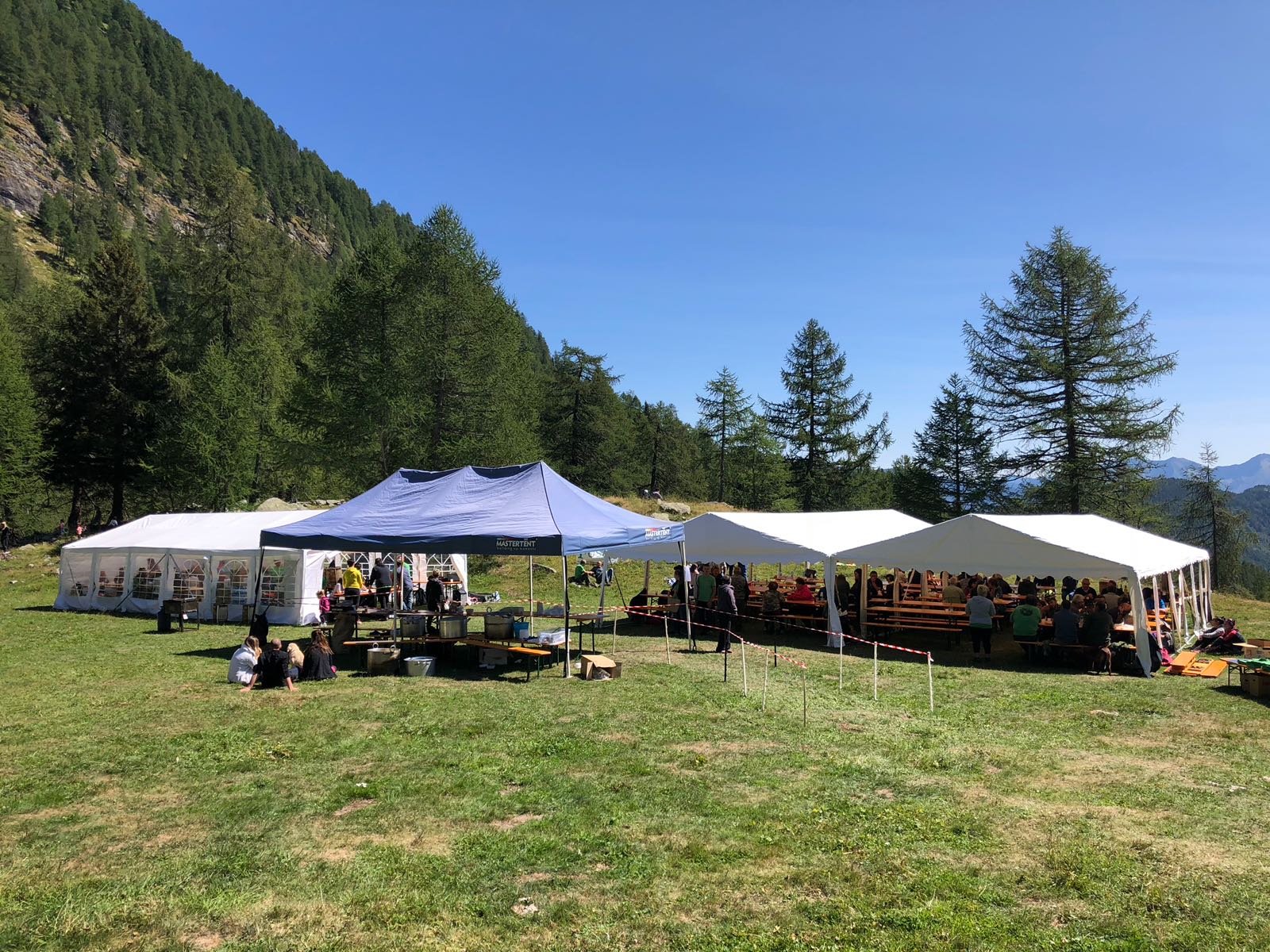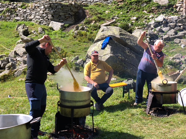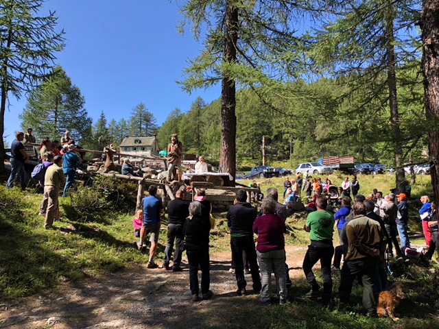 TRASQUERA- 26-08-2018- Si è svolta, nelle giornate di sabato 25 e domenica 26 agosto, con il patrocinio dei comuni di Varzo e Trasquera, in collaborazione con il rifugio C.A.I. Pietro Crosta, la sesta edizione della festa dei cacciatori. Organizzata dalla sezione cacciatori Val Divedro del presidente Fabrizio Brusco, ai piedi del monte Cistella, nella splendida conca naturale dell’ alpe Solcio, la festa in onore di San Uberto protettore dei cacciatori, ha visto la partecipazione di numerose persone. Nella giornata di sabato si è svolta la gara di tiro con carabina calibro 22 e bersaglio a 50 metri. Vincitore è stato Calcini Andrea seguito da Bonacina Giorgio mentre terzo si è classificato Olzeri Giorgio. La giornata si è conclusa con una spaghettata in compagnia. Domenica 26 si è svolta la Santa Messa, a seguire una interessante dimostrazione da parte del gruppo recupero ungulati feriti che con i loro bellissimi cani hanno simulato il recupero di un animale ferito, dopodiché tutti a pranzo sotto gli appositi tendoni dove la sezione cacciatori ha servito un ottimo pranzo a base di polenta, spezzatino, trippa in umido e formaggi locali.