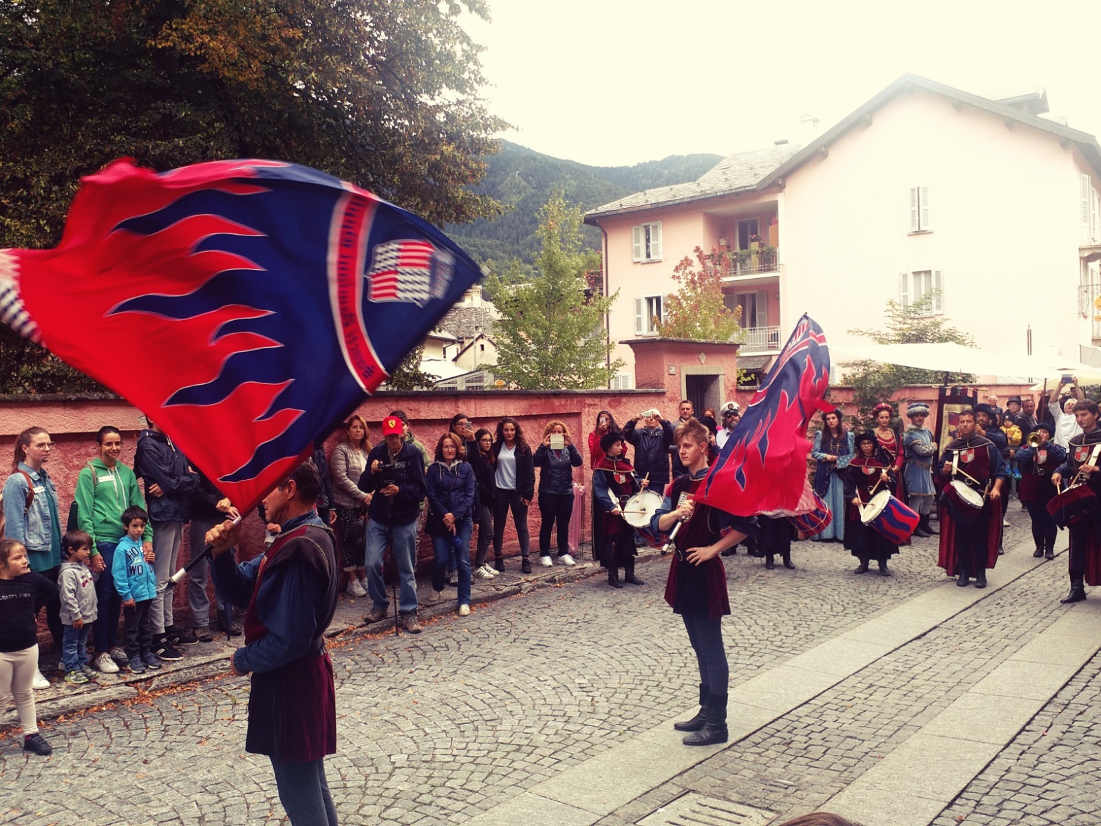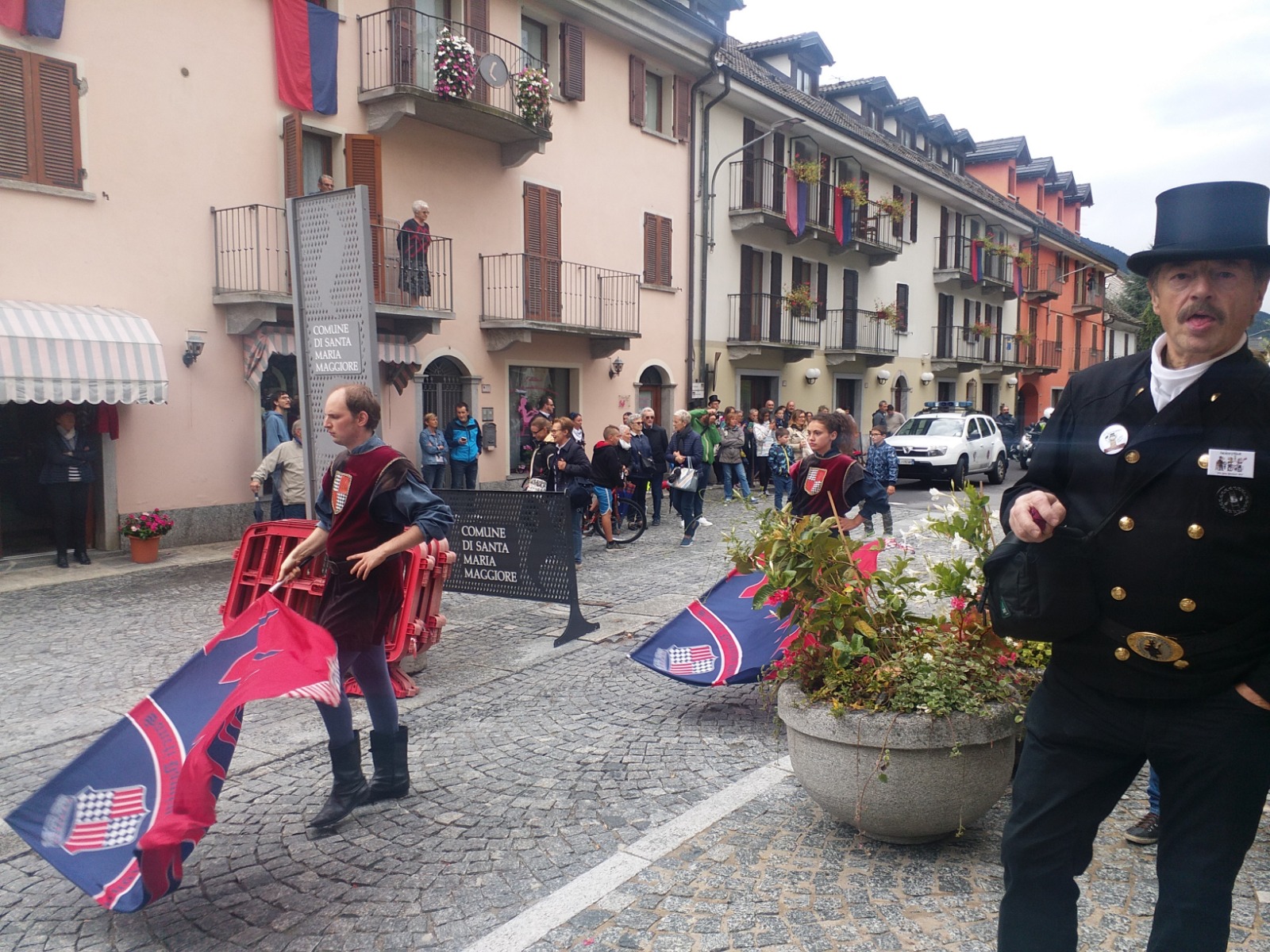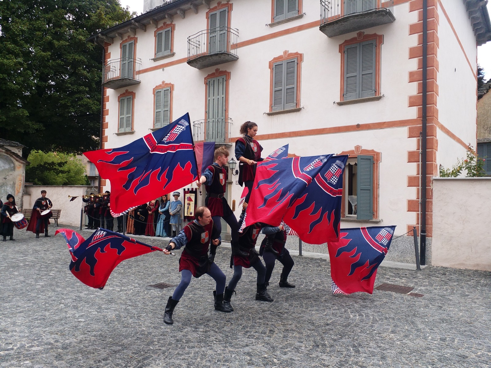 SANTA MARIA MAGGIORE - 01-09-2018 - Un'esibizione che è piaciuta a grandi e piccini quella degli sbandieratori di San Damiano d'Asti. Nel pomeriggio di sabato 1 settembre, in occasione del raduno internazionale degli spazzacamini, il gruppo folkloristico astigiano si è esibito in una parata, durata oltre un'ora, per le vie del centro di Santa Maria. Al suo seguito c'era tanta gente che è rimasta affascinata dalla destrezza degli sbandieratori, dal suono dei tamburi e dagli abiti rinascimentali. Ad ammirare le evoluzioni c'era anche un "pubblico speciale", ovvero gli spazzacamini accorsi in Valle da ogni parte del mondo. La festa proseguirà questa sera con musica dal vivo e ristoro nel parco di Villa Antonia.