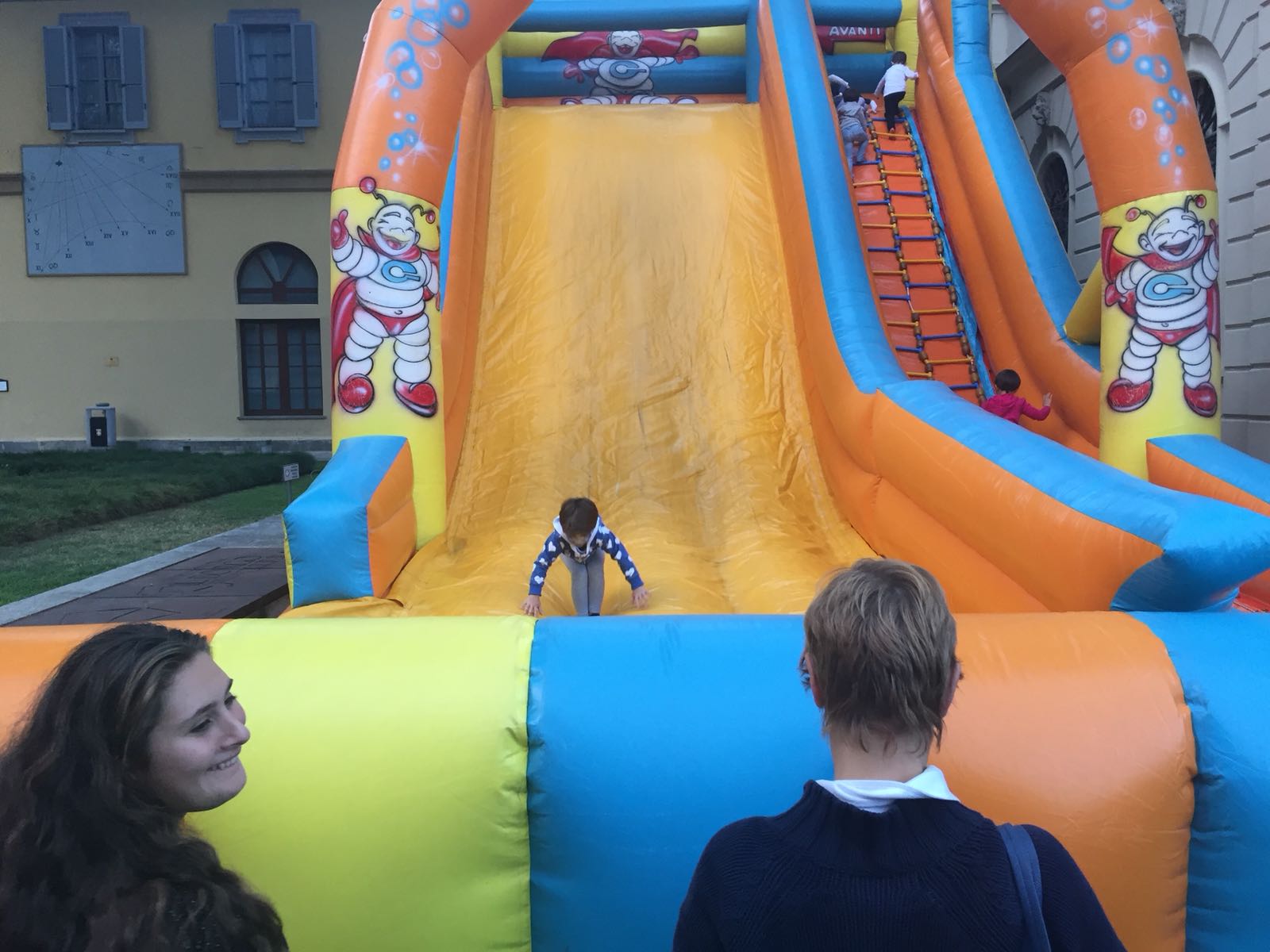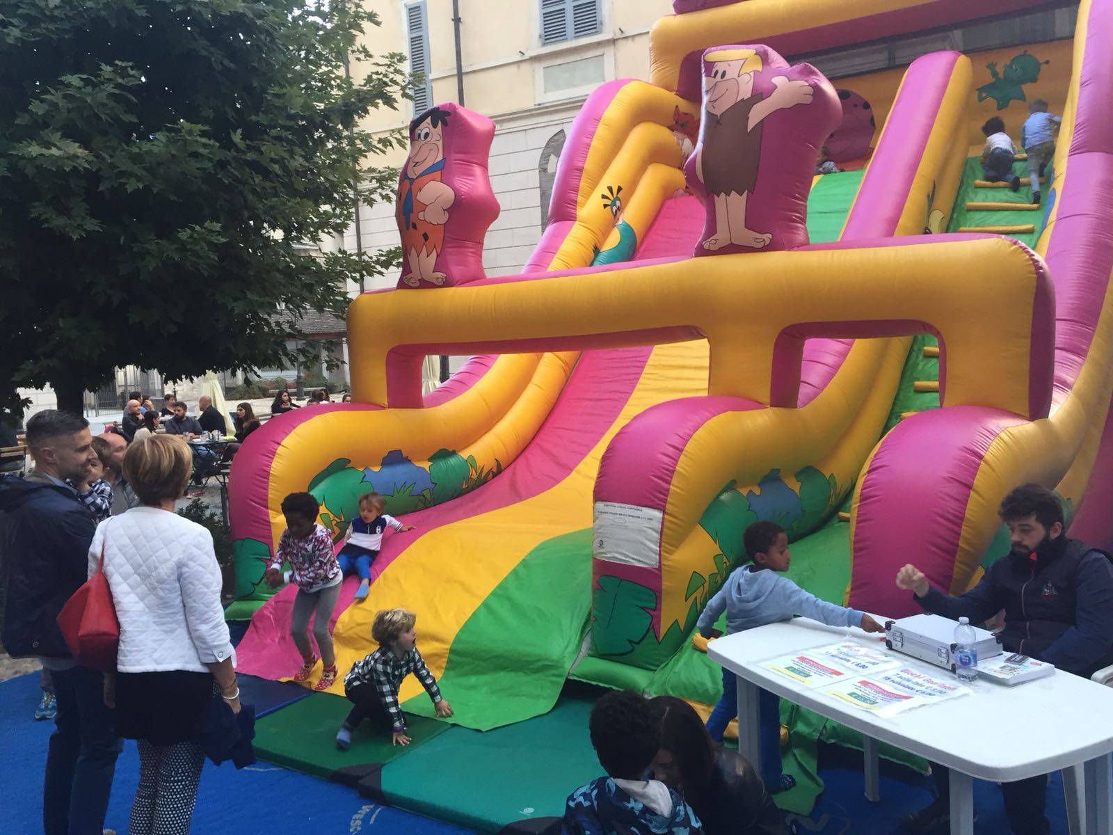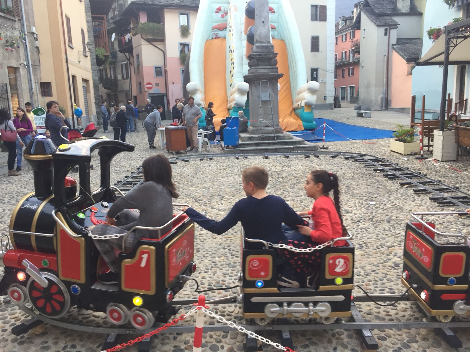DOMODOSSOLA- 13-10-2018- Si è aperta oggi pomeriggio "BimbinDom" la due giorni di giochi, spettacoli e laboratori dedicata ai bambini e organizzata dal comune di Domodossola. La città si è trasformata, diventando un gioco en plein air per divertire i più piccoli fino a domani sera con show e laboratori gratuiti in piazza Mercato e con tanti giochi gonfiabili nelle altre piazze del centro storico con la formula del ticket giornaliero e giri infiniti ( 15 euro un giorno e 25 euro per due giorni). Il vice sindaco Angelo Tandurella ha espresso soddisfazione per il successo della giornata inaugurale della seconda edizione di "BimbinDom" . Questa sera alle 20.30 in programma un Variety Show: spettacolo di chiusura con gli artisti presenti nel pomeriggio odierno. Domani, domenica 14 ottobre, dalle ore 11 saranno presenti un trampoliere, si svolgeranno laboratori Fluffy Puppets Show, macchina elettrica dei clown, spettacolo bolle di sapone. Alle 12 laboratorio di circo con Geo il giocoliere. Dalle 16 truccatori del viso a cura di "Ops! Teatro" , spettacolo Fluffy Puppets Show, alle 17 spettacolo di magia con Magic Squilibrio e a seguire spettacolo con Geo il giocoliere e infine alle 18 Circus Show con Fortunello, Malerba, Mirtillo e Ranocchio.