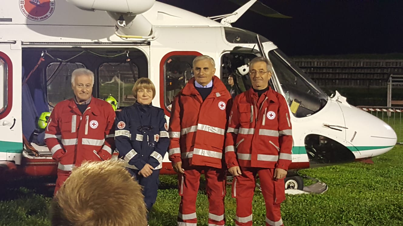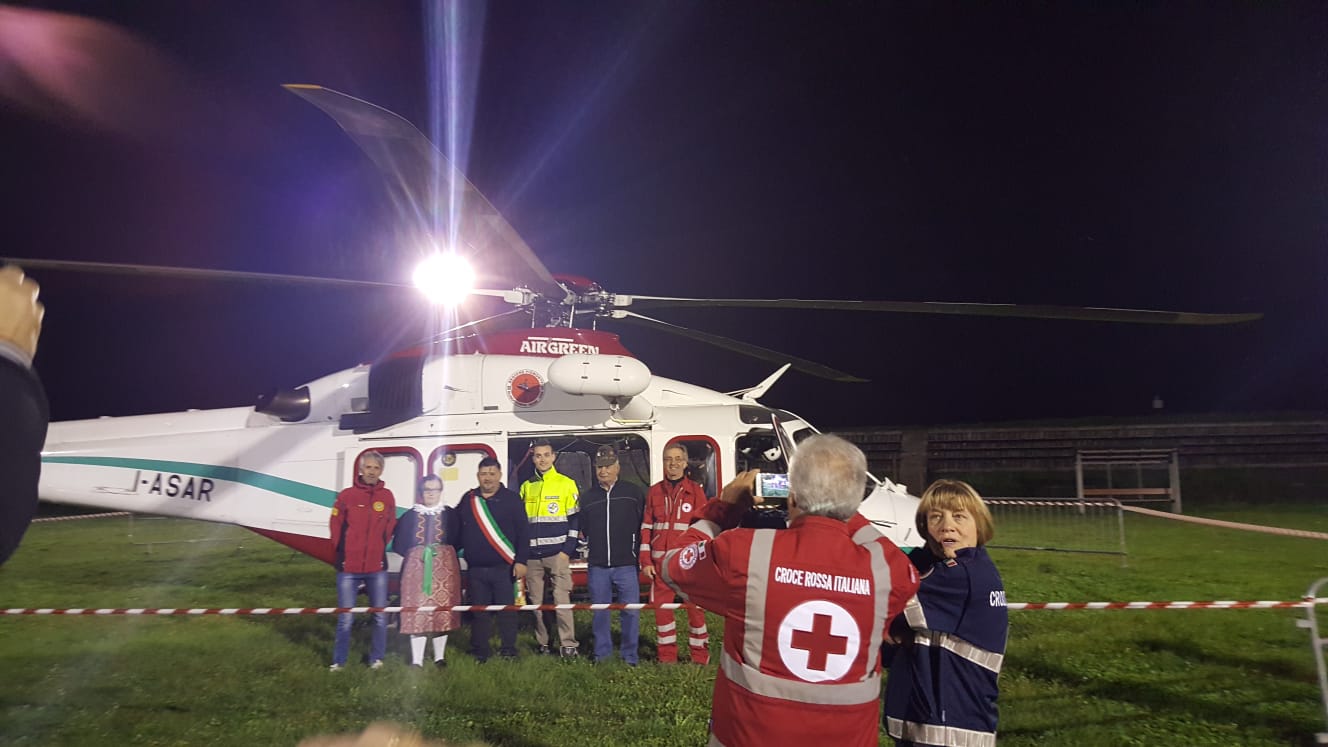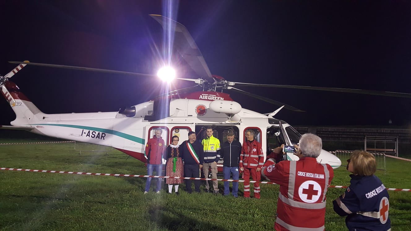 per il primo atterraggio, di prova, dell'elciottero del 118 in notturna. Accolta da autorità e curiosi l'eliambulanza con i sanitari della Croce Rossa è partita da Torino ed è atterrata allo stadio comunale.