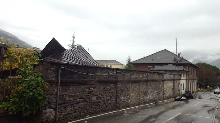 Bruno Toscani, ha emenato un'ordinanza di chiusura per le scuole elementari e medie di via Boldrini. Nella notte diverse tegole di copertura sono state portate via dal vento e nelle aula ha cominciato ad infiltrarsi l'acqua. Si attende un sopralluogo dei Vigli del Fuoco, e a mezzogiorno il primo cittadino deciderà se prolungare l'ordinanza o ritirarla. La prima ipotesi è la più probabile, tanto più che i ragazzi andrebbero a scuola solo domani, prima del Ponte di Ognissanti. Volato via anche il tetto del vecchio magazzino comunale, un albero è caduto sulla linea elettrica, pertanto la via Marconi è chiusa. Numerosi gli alberi caduti, che hanno danneggiato anche alcune auto. Situazione critica nella notte sulla via tra Tappia e Valpiana, dove a venire giù sono stati tre alberi d'alto fusto, due sono stati rimossi già alle 3 del mattino, ma per un ultimo s'è dovuto attendere l'arrivo della mattina. la strda era comunque percorribile. L''inferno di pioggia vento ha cominciato a scatenarsi i9n tarda serata, il sindaco, impegnato in una riunione è stato chiamato alle 23 su segnalazione di alcune criticità. E' cominicata così la lunga notte del maltempo, che ha visto impegnati volontari, operatori comunali, vigili del fuoco.