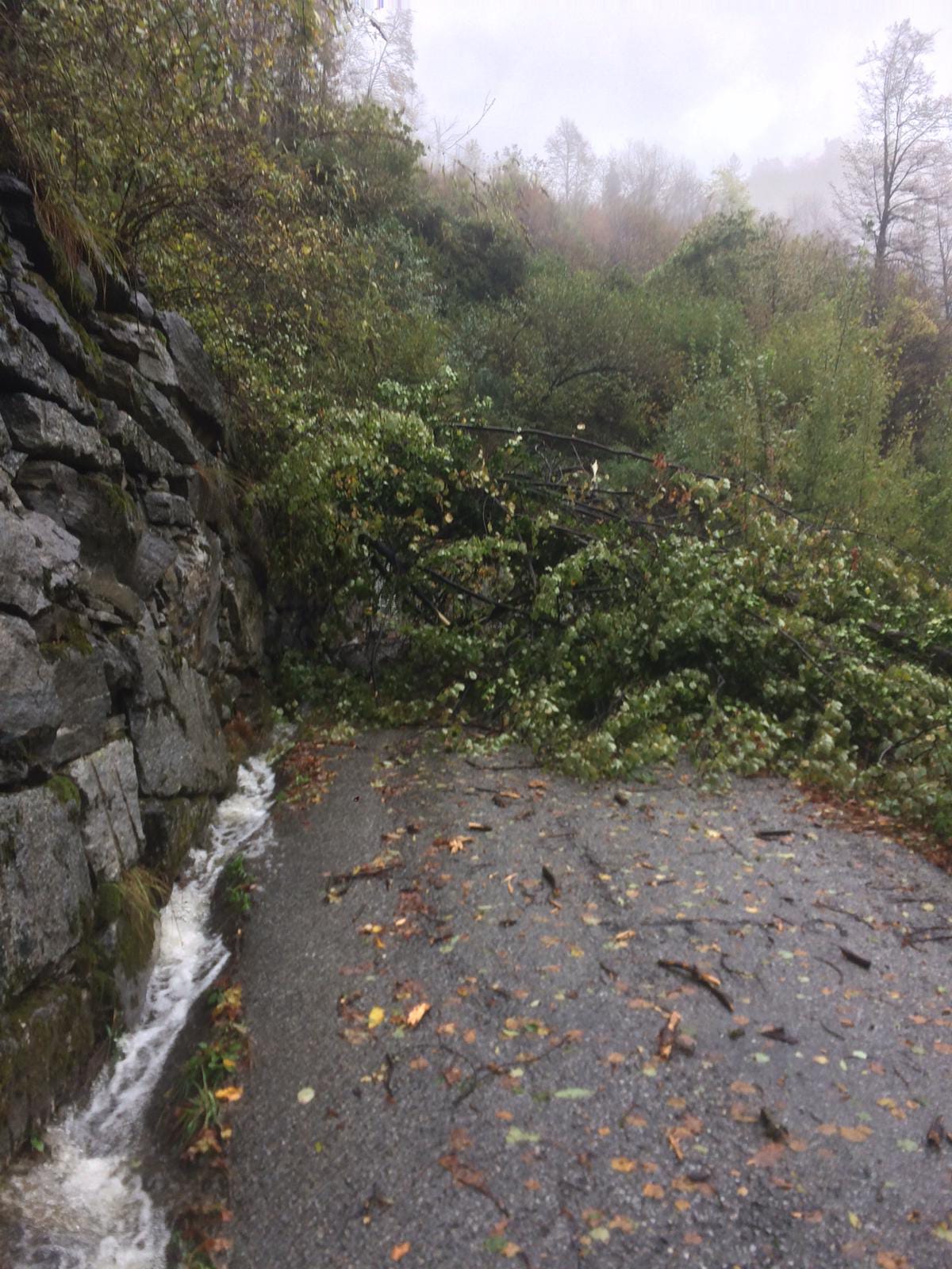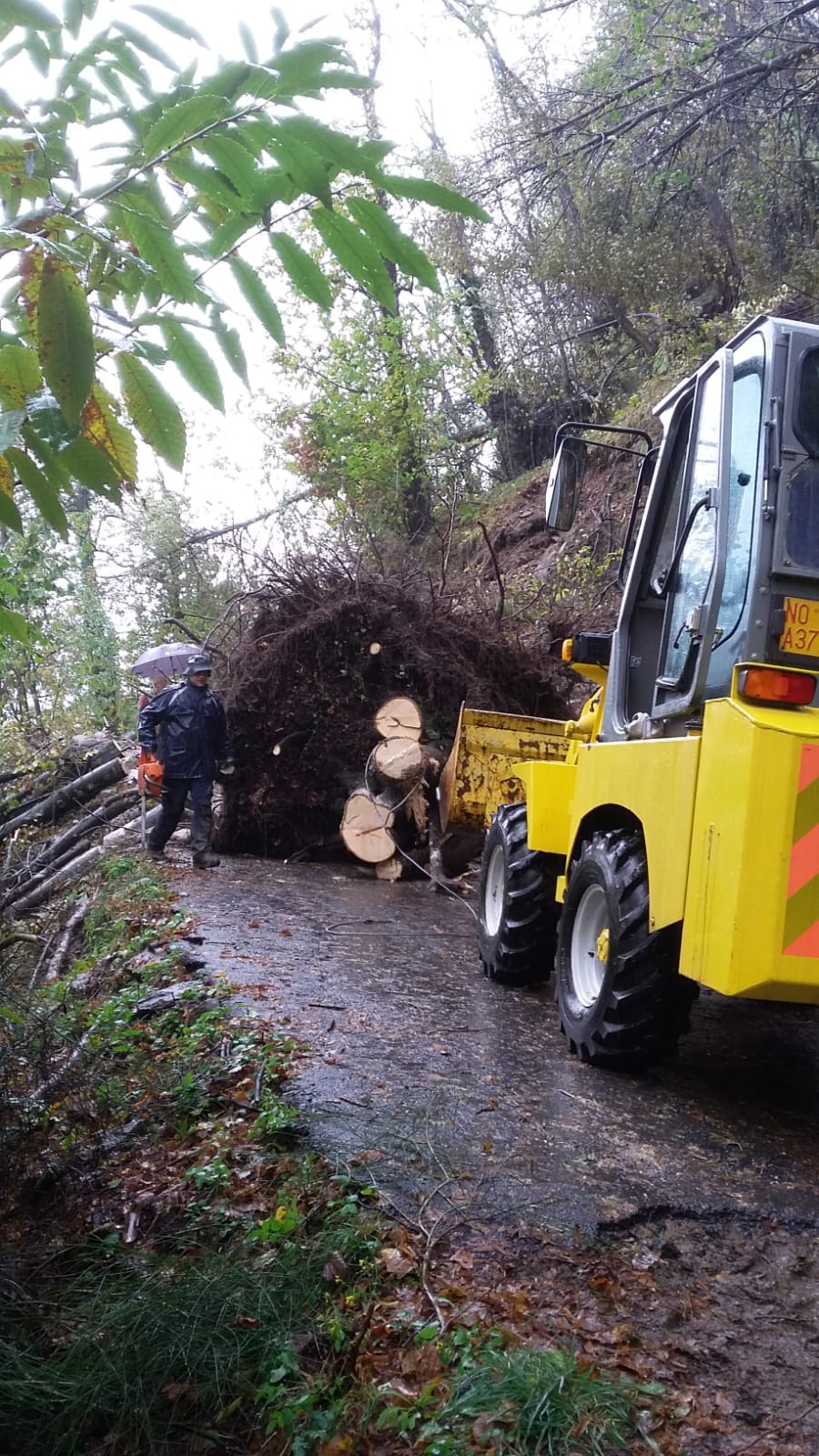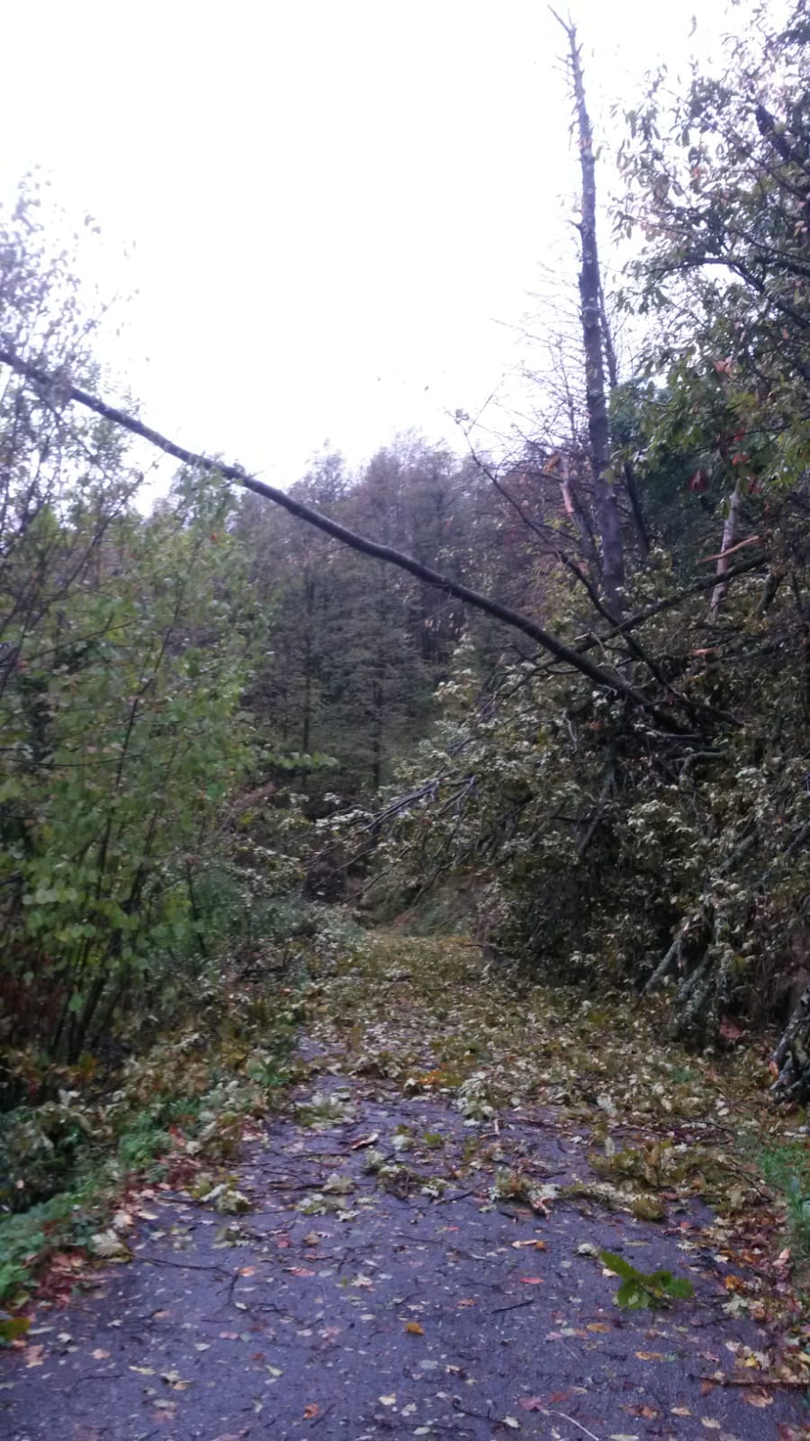 MONTESCHENO- 06-11-2018- Decine di alberi sono caduti per il maltempo, molte anche sui fili della rete elettrica e sulla strada, in frazione Zonca a Montescheno, anche in seguito della precedente ondata di maltempo e della tromba d'aria. Nelle abitazioni mancano l'acqua e l' elettricità, la frazione è raggiungibile con una jeep da Seppiana o a piedi dalla frazione Barboniga. Gli aib, volontari e il comune di Borgomezzavalle hanno provveduto a liberare la strada. Ma ancora molte piante vanno messe in sicurezza.