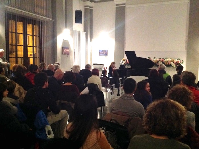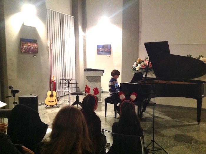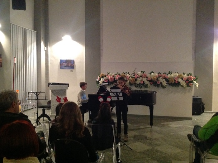 La serata, a ingresso libero, ha visto l'esibizione dei giovani allievi della scuola di musica, che si sono alternati nell'esecuzione di brani classici della tradizione natalizia. Si trattava di Sebastiano Guglielmazzi, Nicoletta Deitinger e Andrea Cherkas al pianoforte, Giulia Bianchetti al violino, Simone Locarni, pianista accompagnatore, Monica Minetti, soprano, Claudio Sereno, tenore, Giulia Scuto al pianoforte, Emma Ferroni e Francesca Bolognesi, al clarinetto, Alessio Novaria, al trombone, Lara Bianchetti, al pianoforte e Giada Cottini alla chitarra.