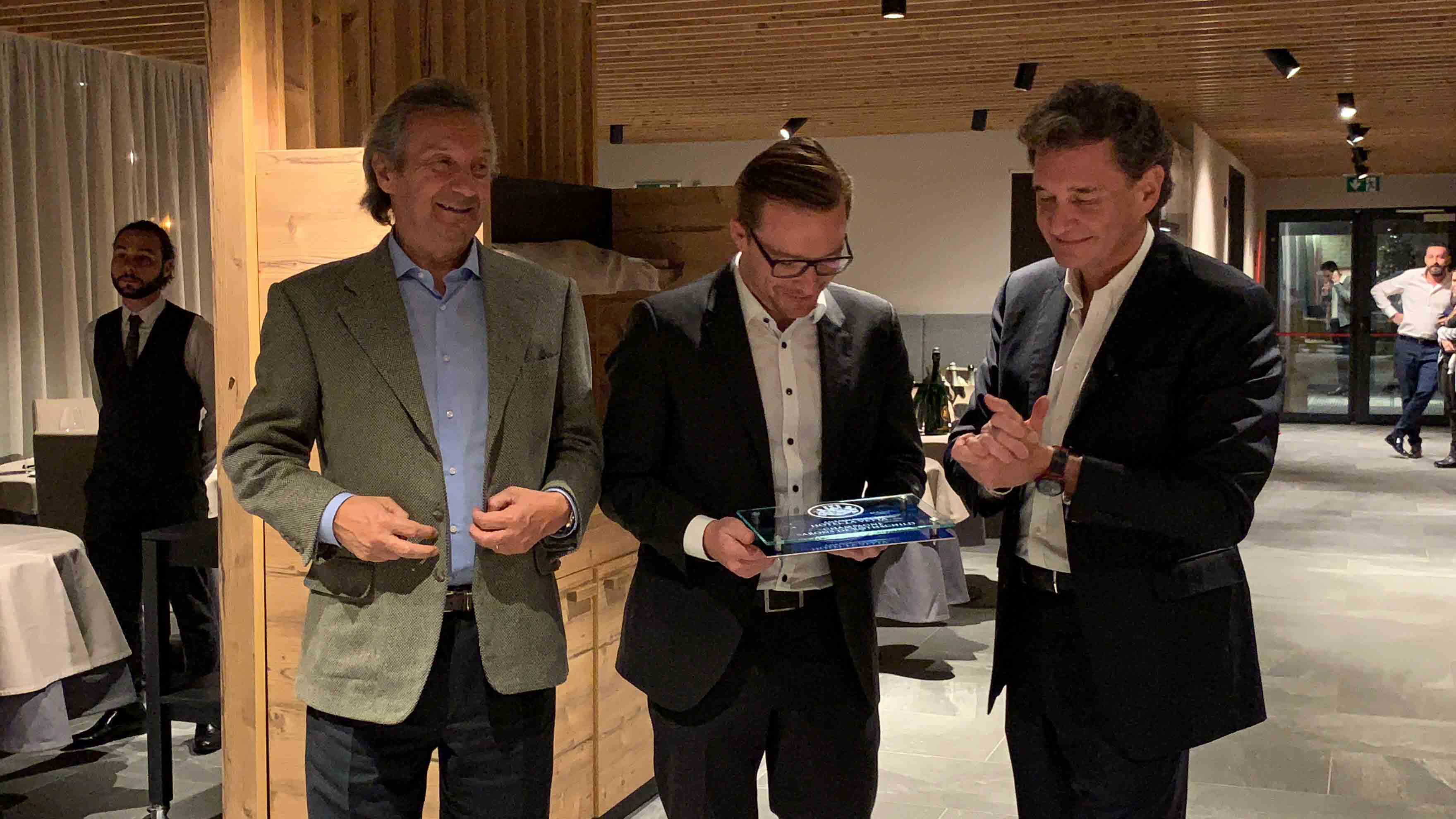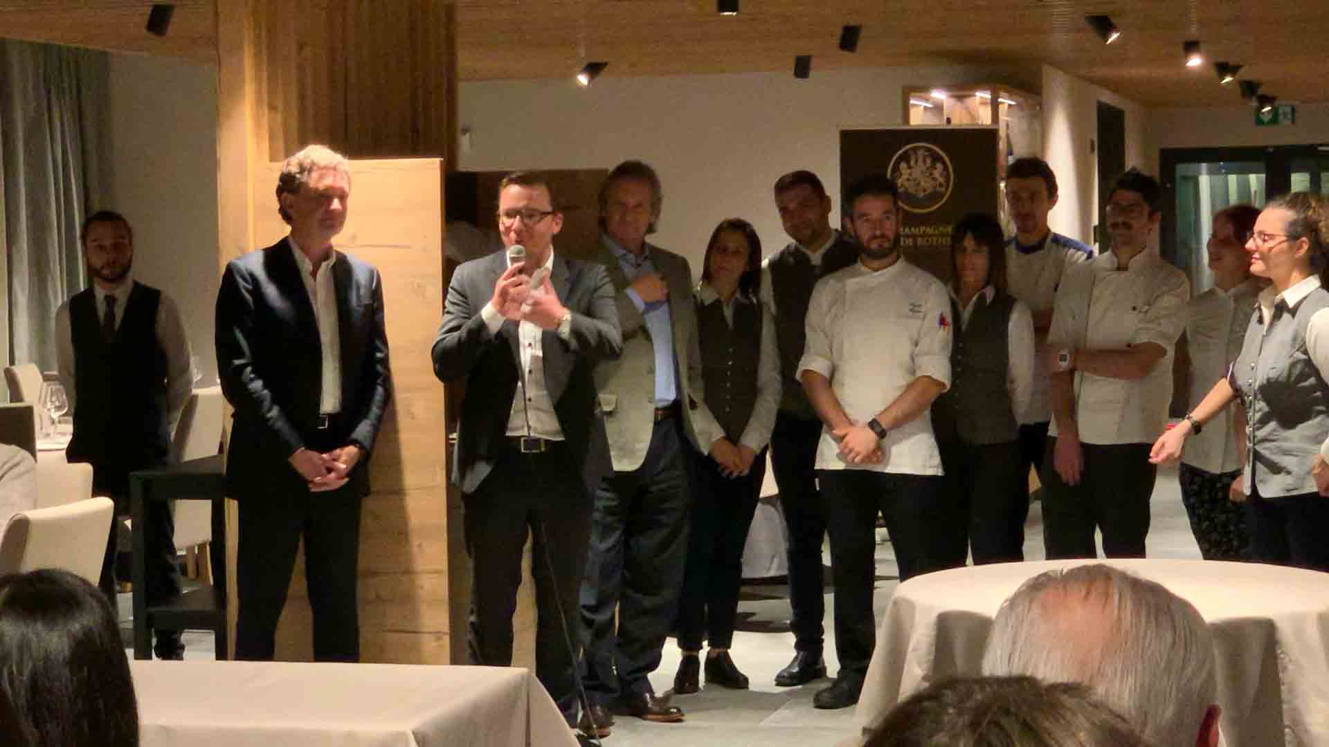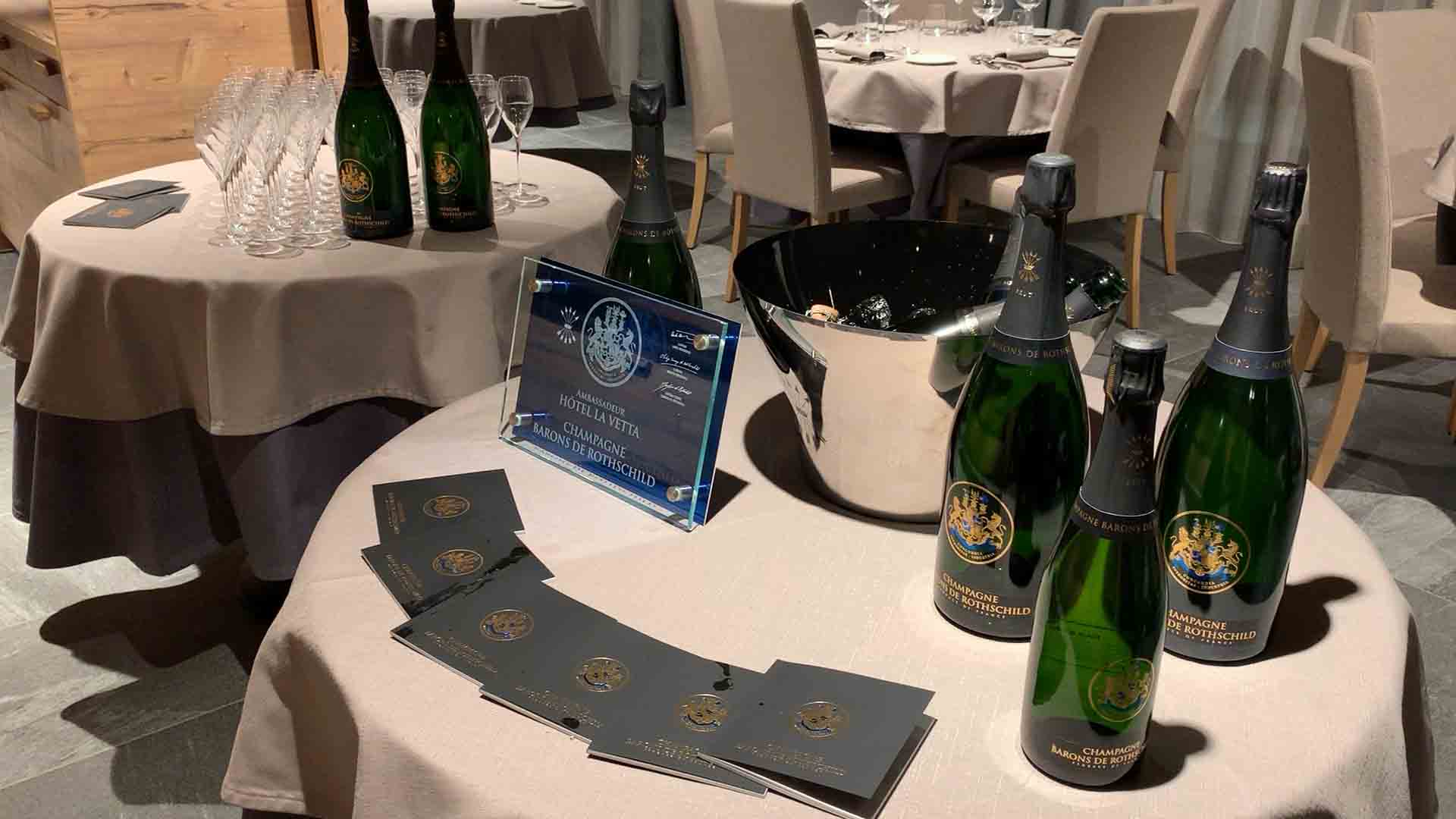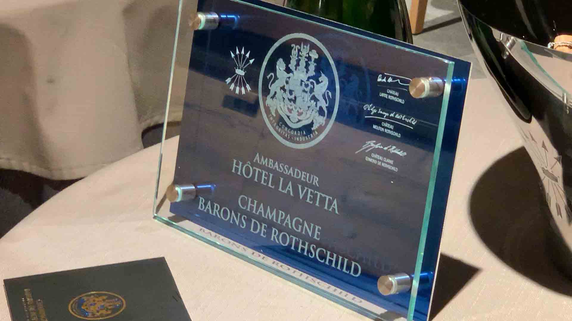 SAN DOMENICO-23-12-2018- Serata vip, la scorsa settimana, all'hotel la Vetta, il gioiello a quattro stelle da 77 camere della Mira Hotels & Resorts appena inaugurato a San Domenico, che ha ricevuto un importante riconoscimento direttamente dalle mani del Barone Philippe Sereys de Rothschild, della pluricentenaria famiglia di banchieri, rinomato produttore di champagne, che ha voluto concedere alla famiglia Malagoni ed alla loro nuova struttura la targa di “ambasciatori” del suo prestigioso vino, primi al mondo a riceverla. La targa è stata consegnata alla presenza di Alessandro Francoli, presidente delle omonime Distillerie famose in tutta Italia, che distribuirà lo champagne Rothschild nel Bel Paese, e di Daniela Righi, amministratore delegato degli Hotels Mira davanti ai giornalisti delle principali testate italiane di turismo ed a vari tour operator. Per tutti poi una cena stellata abbinata ai tre tipi di Champagne della maison Rothschild. Il Barone ha soggiornato una notte a San Domenico, prima di partire in elicottero ha ringraziato il personale della struttura per la professionalità e l'ospitalità. Per il turismo ossolano si intravede una possibilità di sviluppo, e di qualità, fino a qualche anno fa davvero impensabile.