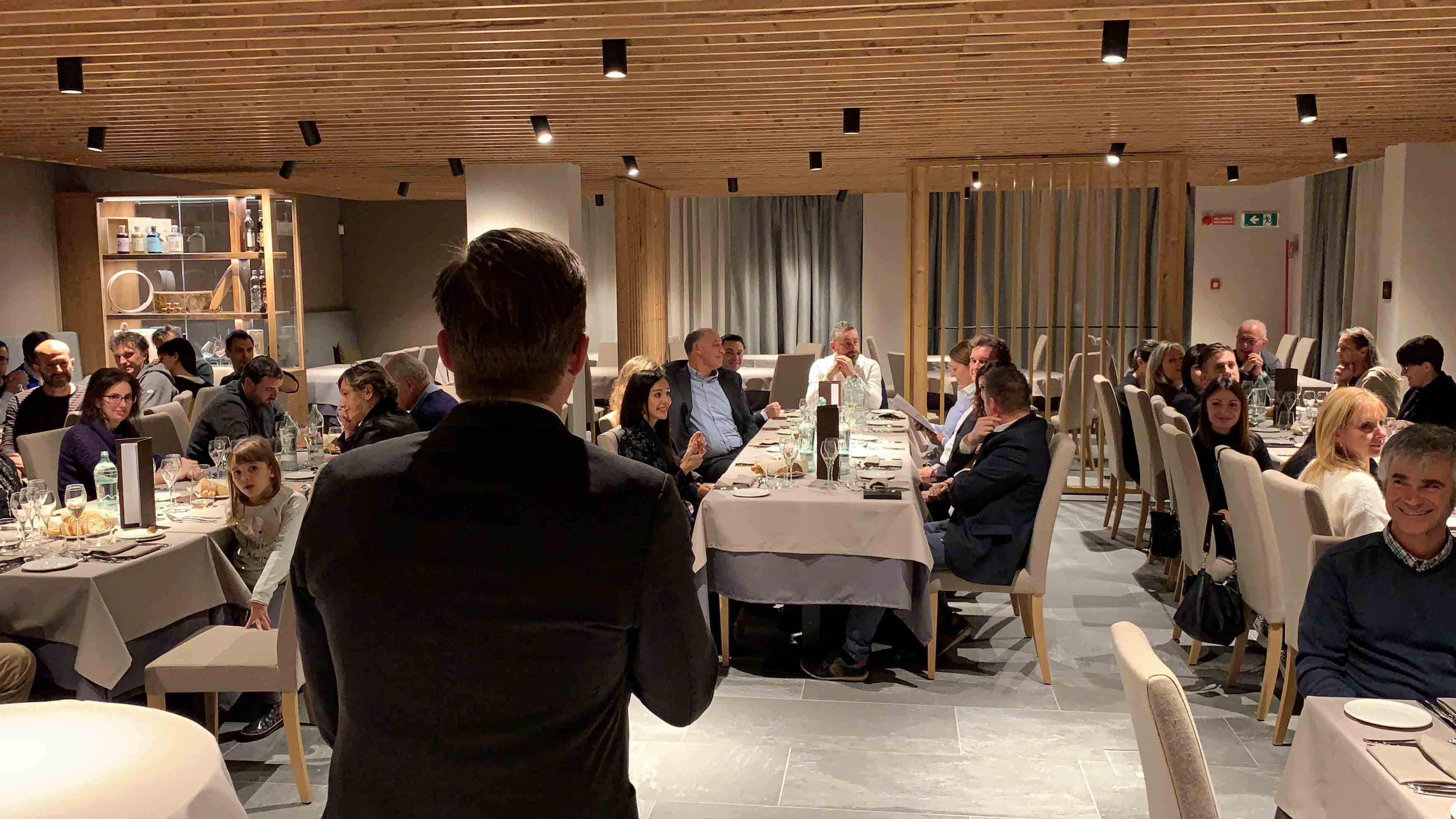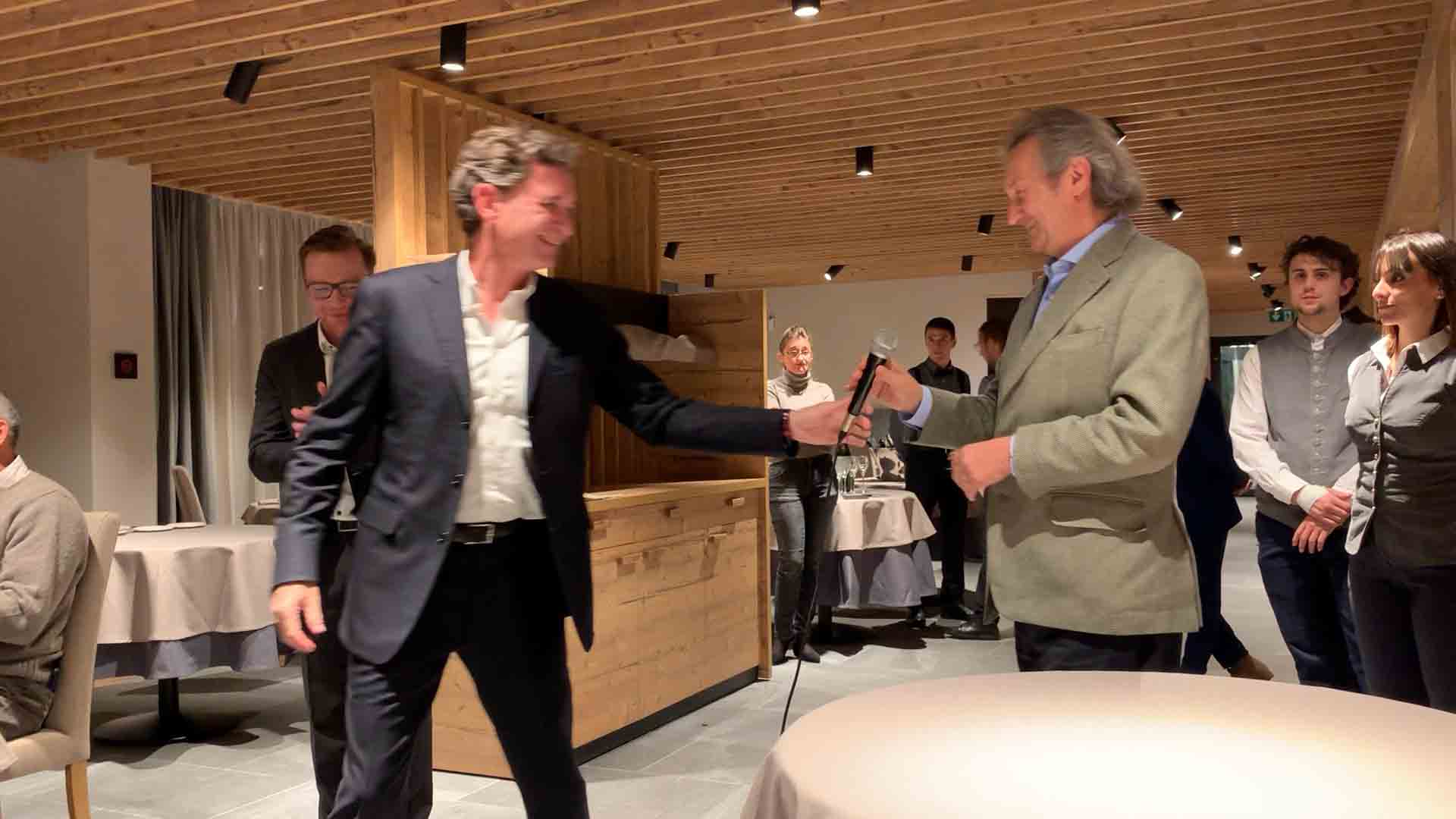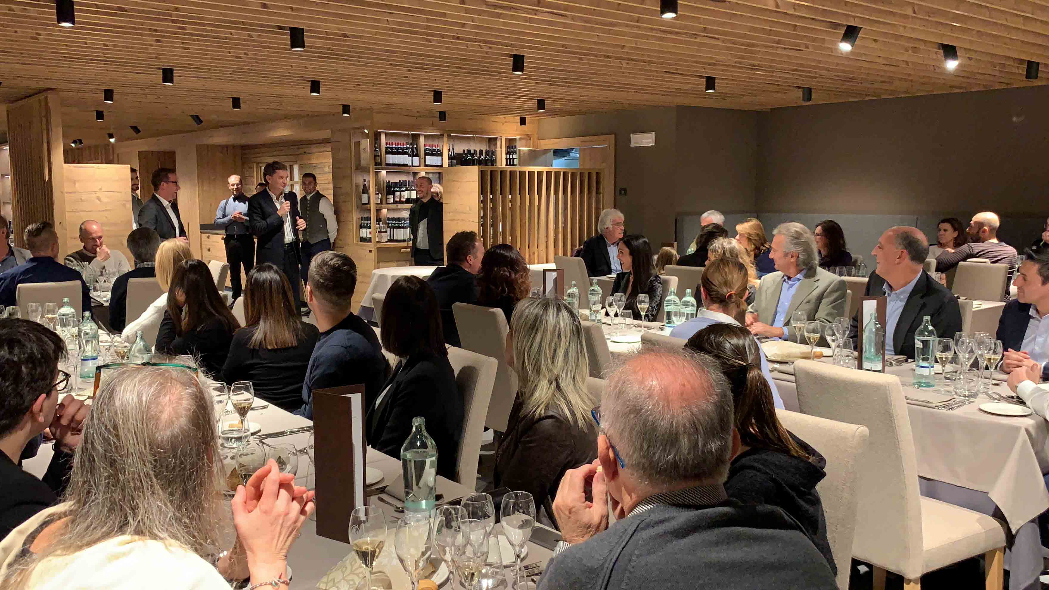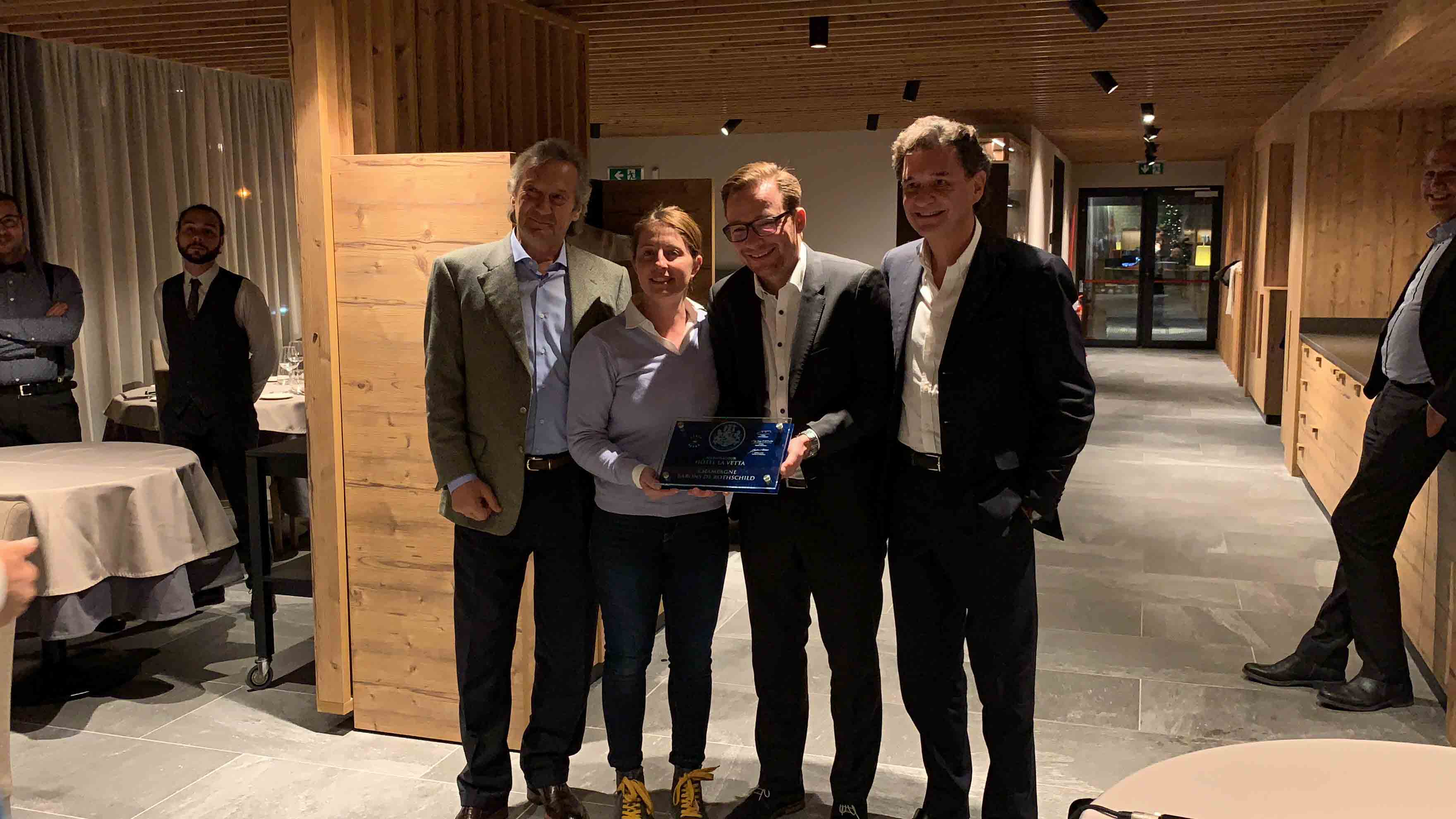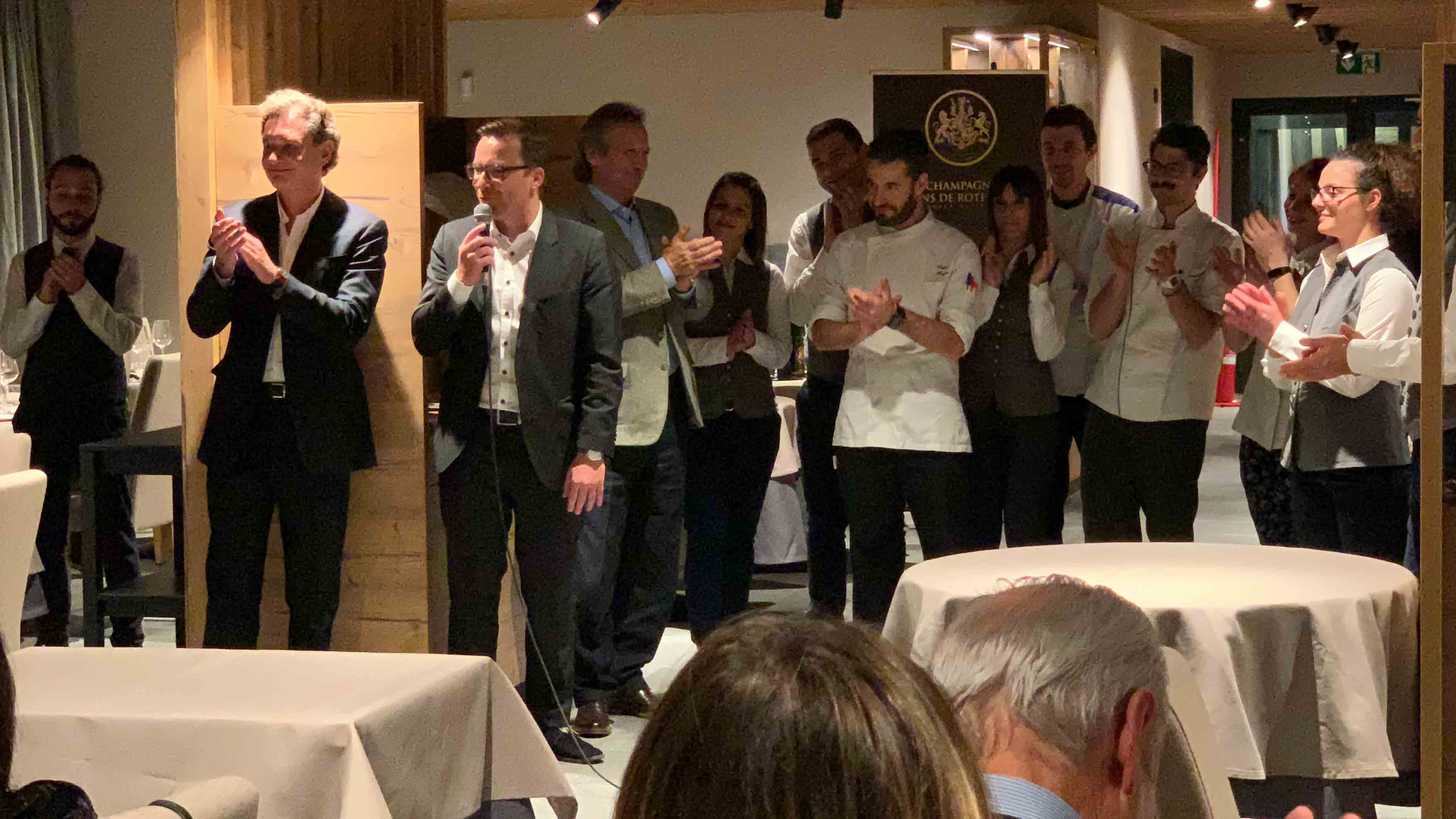SAN DOMENICO-23-12-2018- Serata vip, la scorsa settimana, all'hotel la Vetta, il gioiello a quattro stelle da 77 camere della Mira Hotels & Resorts appena inaugurato a San Domenico, che ha ricevuto un importante riconoscimento direttamente dalle mani del Barone Philippe Sereys de Rothschild, della pluricentenaria famiglia di banchieri, rinomato produttore di champagne, che ha voluto concedere alla famiglia Malagoni ed alla loro nuova struttura la targa di “ambasciatori” del suo prestigioso vino, primi al mondo a riceverla. La targa è stata consegnata alla presenza di Alessandro Francoli, presidente delle omonime Distillerie famose in tutta Italia, che distribuirà lo champagne Rothschild nel Bel Paese, e di Daniela Righi, amministratore delegato degli Hotels Mira davanti ai giornalisti delle principali testate italiane di turismo ed a vari tour operator. Per tutti poi una cena stellata abbinata ai tre tipi di Champagne della maison Rothschild. Il Barone ha soggiornato una notte a San Domenico, prima di partire in elicottero ha ringraziato il personale della struttura per la professionalità e l'ospitalità. Per il turismo ossolano si intravede una possibilità di sviluppo, e di qualità, fino a qualche anno fa davvero impensabile.
