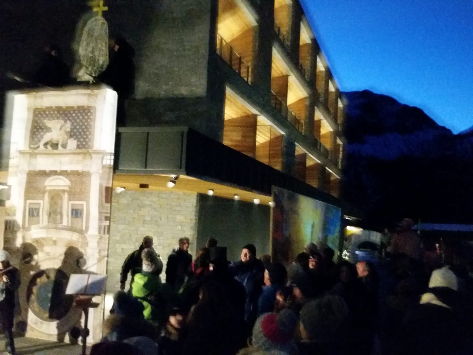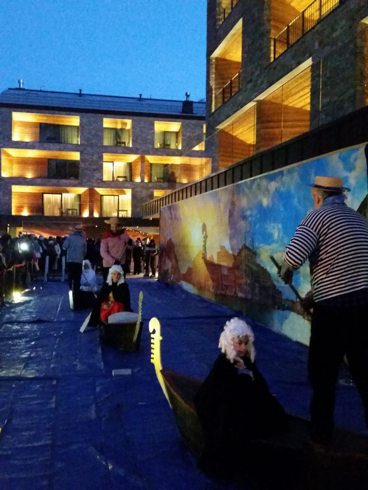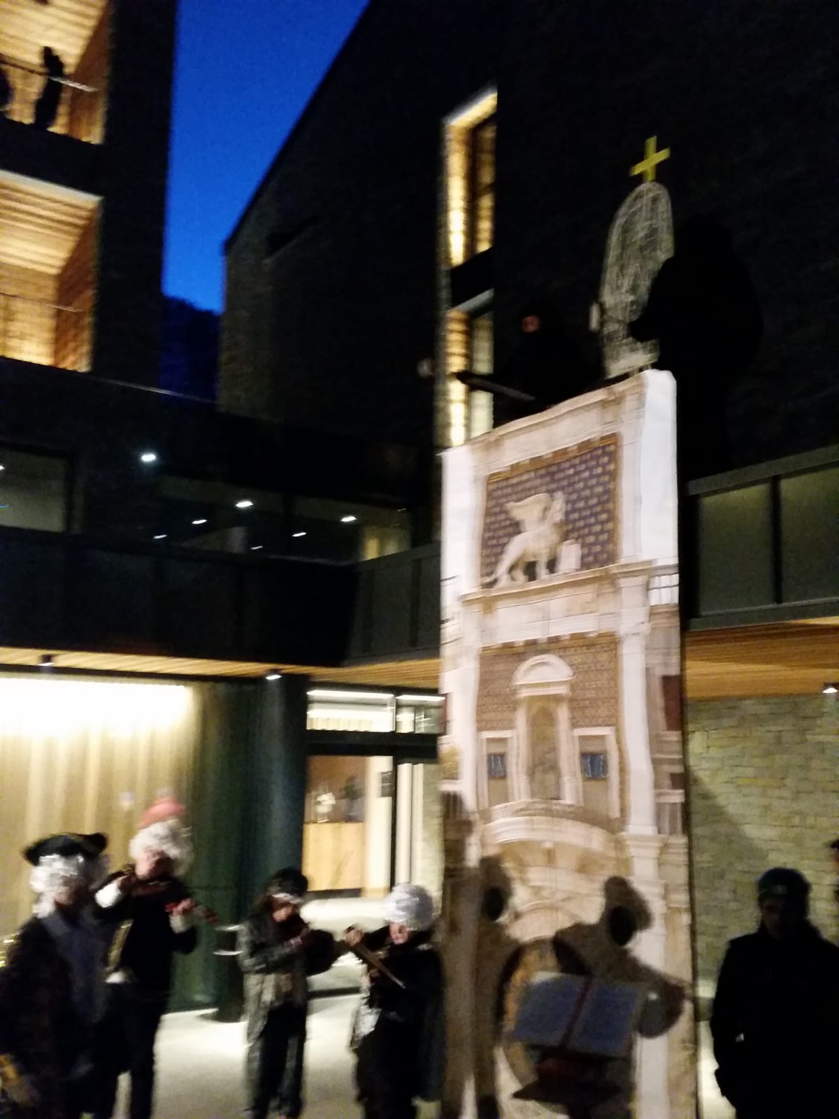 SAN DOMENICO- 30-12-2018- Una bellissima rappresentazione quella messa in scena dal Gruppo Teatrale Varzese sabato sera, che ha trasformato la piazza del nuovo Hotel La Vetta di San Domenico nella laguna di Venezia. Tantissima la gente che è accorsa ad assistere a questo particolare "presepe meccanico vivente" che ha lasciato a bocca aperta i numerosi turisti presenti in questi giorni a San Domenico.
