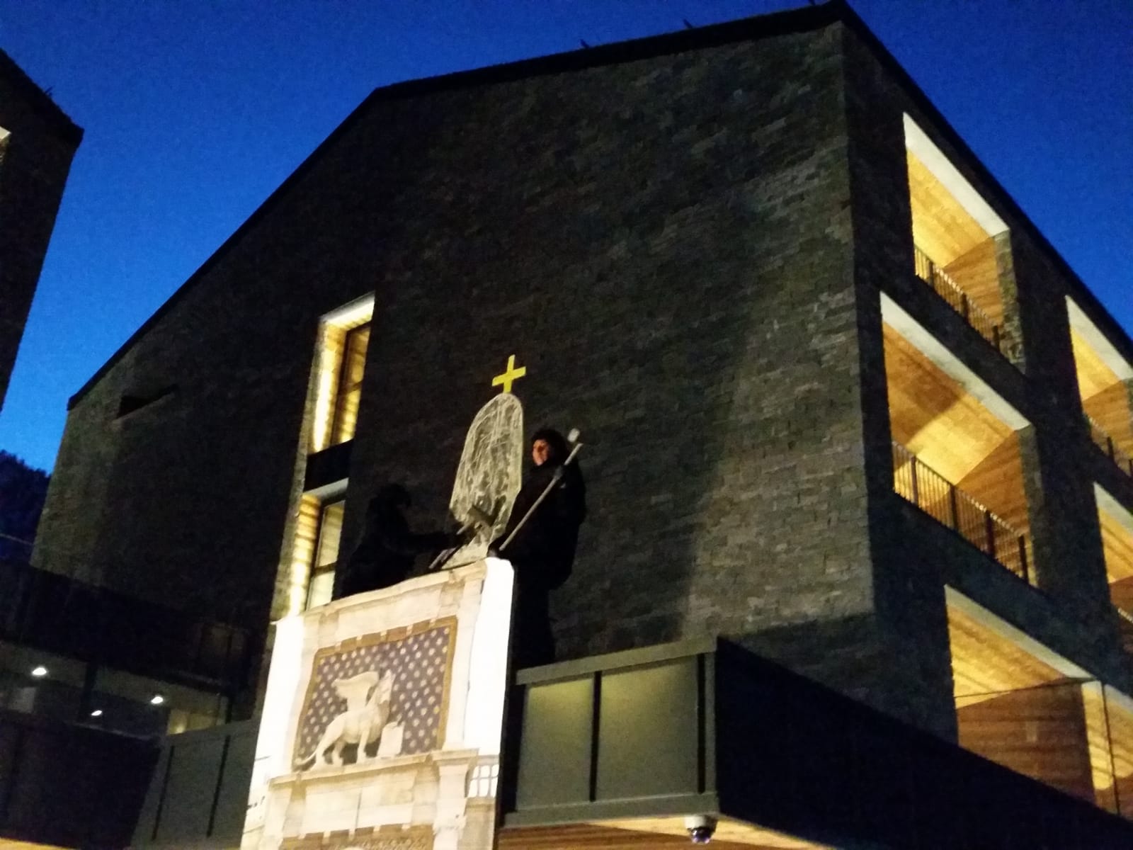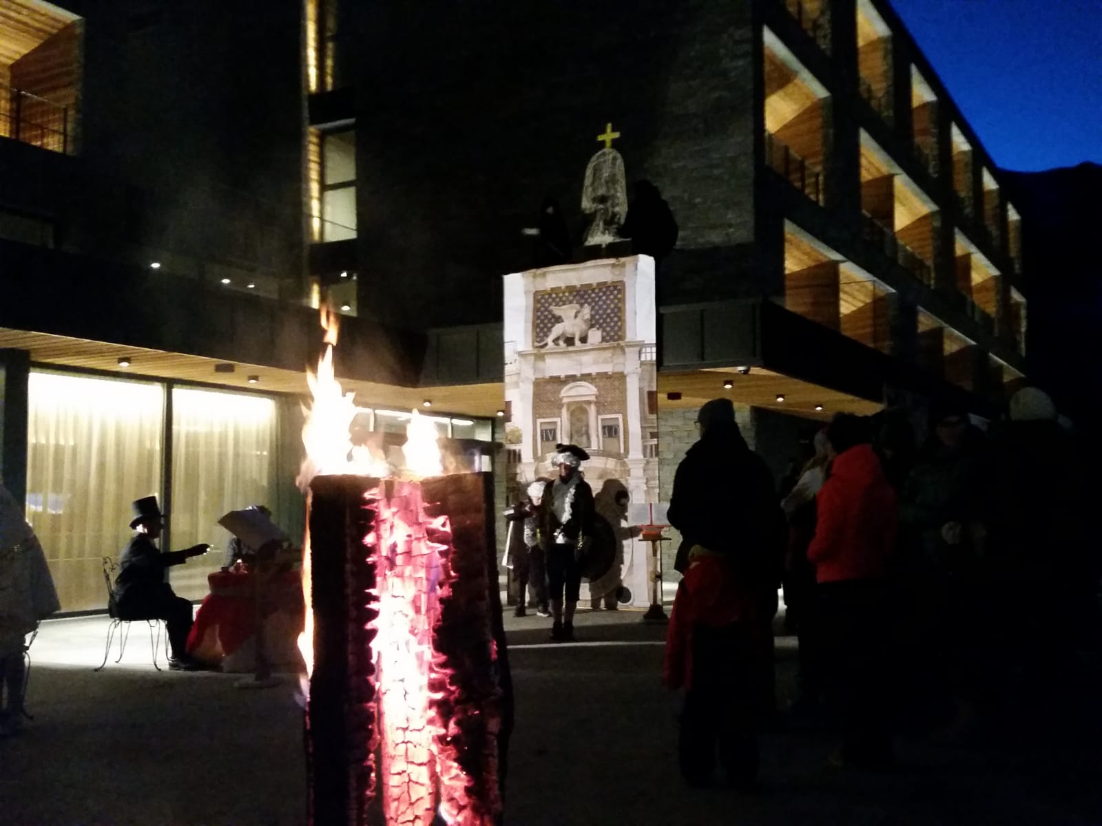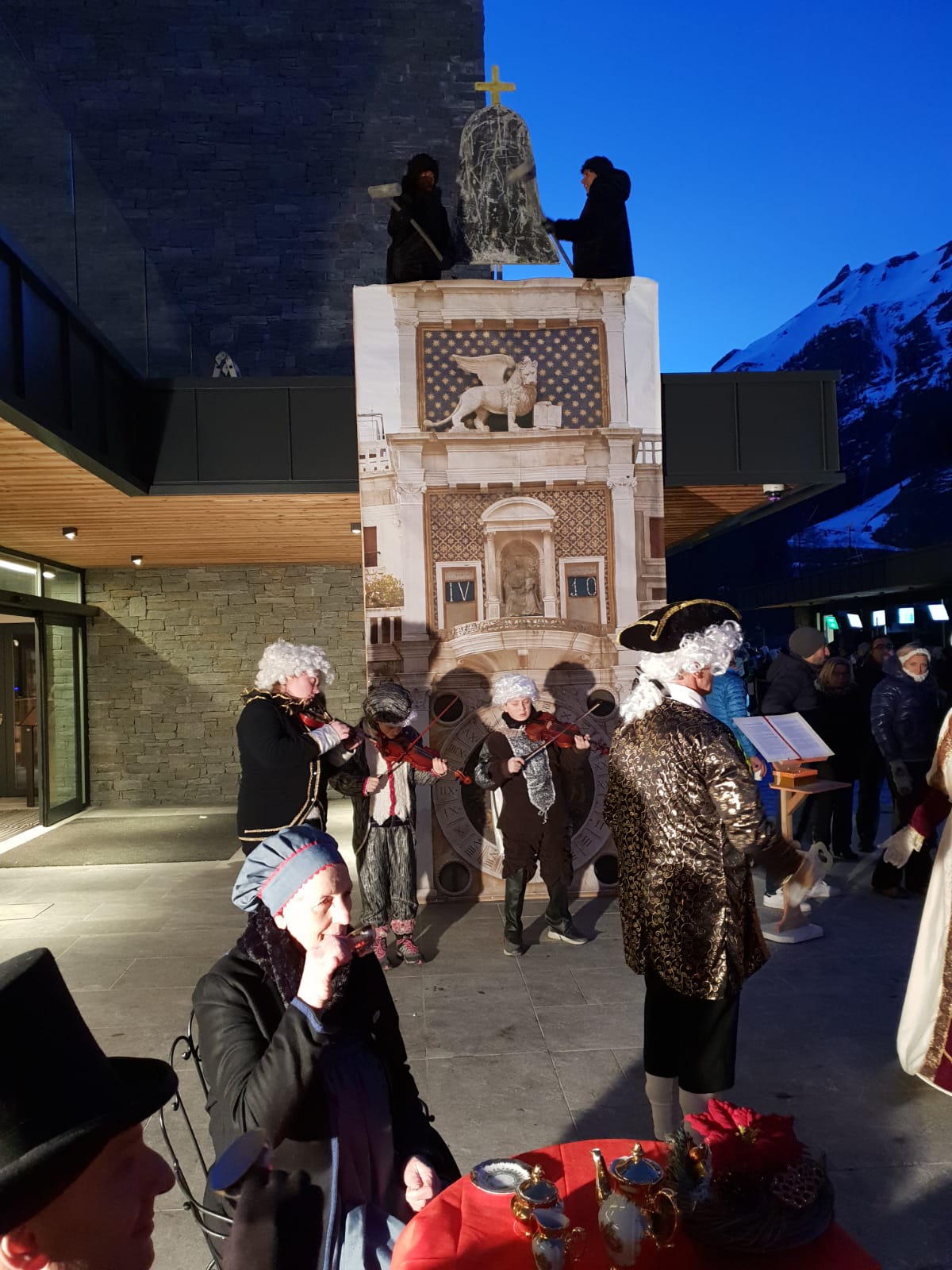 SAN DOMENICO- 30-12-2018- Una bellissima rappresentazione quella messa in scena dal Gruppo Teatrale Varzese sabato sera, che ha trasformato la piazza del nuovo Hotel La Vetta di San Domenico nella laguna di Venezia. Tantissima la gente che è accorsa ad assistere a questo particolare "presepe meccanico vivente" che ha lasciato a bocca aperta i numerosi turisti presenti in questi giorni a San Domenico.