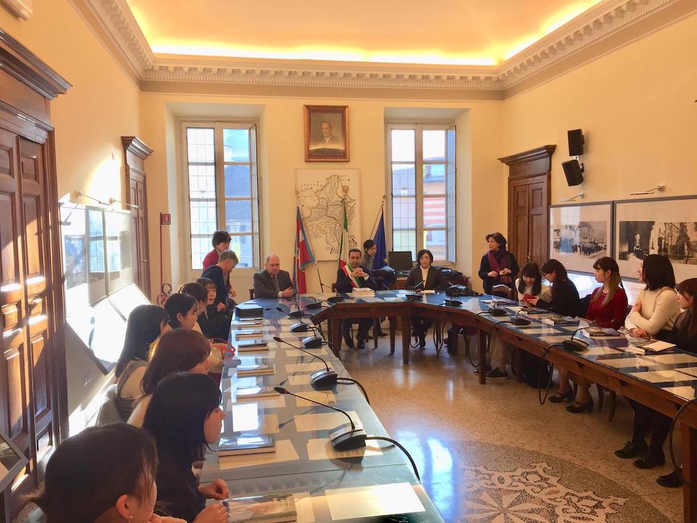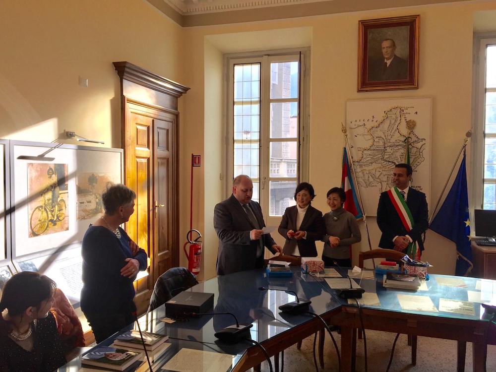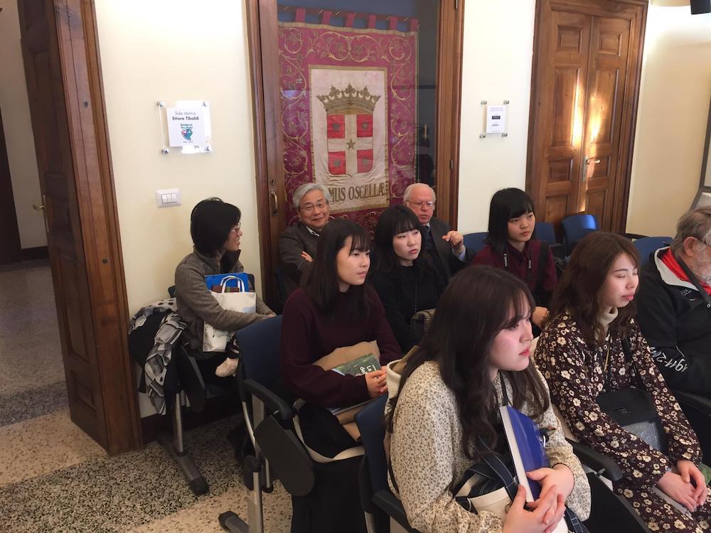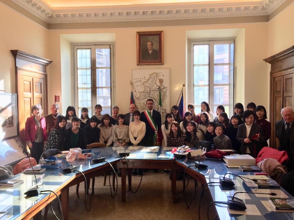 questa mattina ha dato il benvenuto a un gruppo di 24 studentesse giapponesi della Showa Women’s University di Tokyo. Accompagnate dalla prof.ssa Hara Masami, responsabile di Scienza dell’Alimentazione le studentesse sono in Ossola per conoscere cucina e prodotti alimentari locali. Era presente anche lo “storico” accompagnatore della ragazze della Showa University; prof Iino Yoshikazu, che, affezionato alla nostra città, ha voluto raggiungere le studentesse per condividere i tempi del soggorno-studio che si svolgerà presso l’Istituto Alberghiero Rosmini. Nel suo benvenuto il sindaco Lucio Pizzi si è dichiarato onorato di accogliere, per la terza volta nel corso del proprio mandato, la delegazione della Showa Women’s University ribadendo la propria soddisfazione per la scelta della prestigiosa università giapponese di tornare a Domodossola con una delegazione raddoppiata nei numeri rispetto allo scorso anno. Il soggiorno-studio è alla sua sesta edizione ed è coordinato dall'Italian Culinary Tradition - ICT di Torino, agenzia di formazione professionale che dal 1994 ha portato a Domodossola più di mille studenti giapponesi.