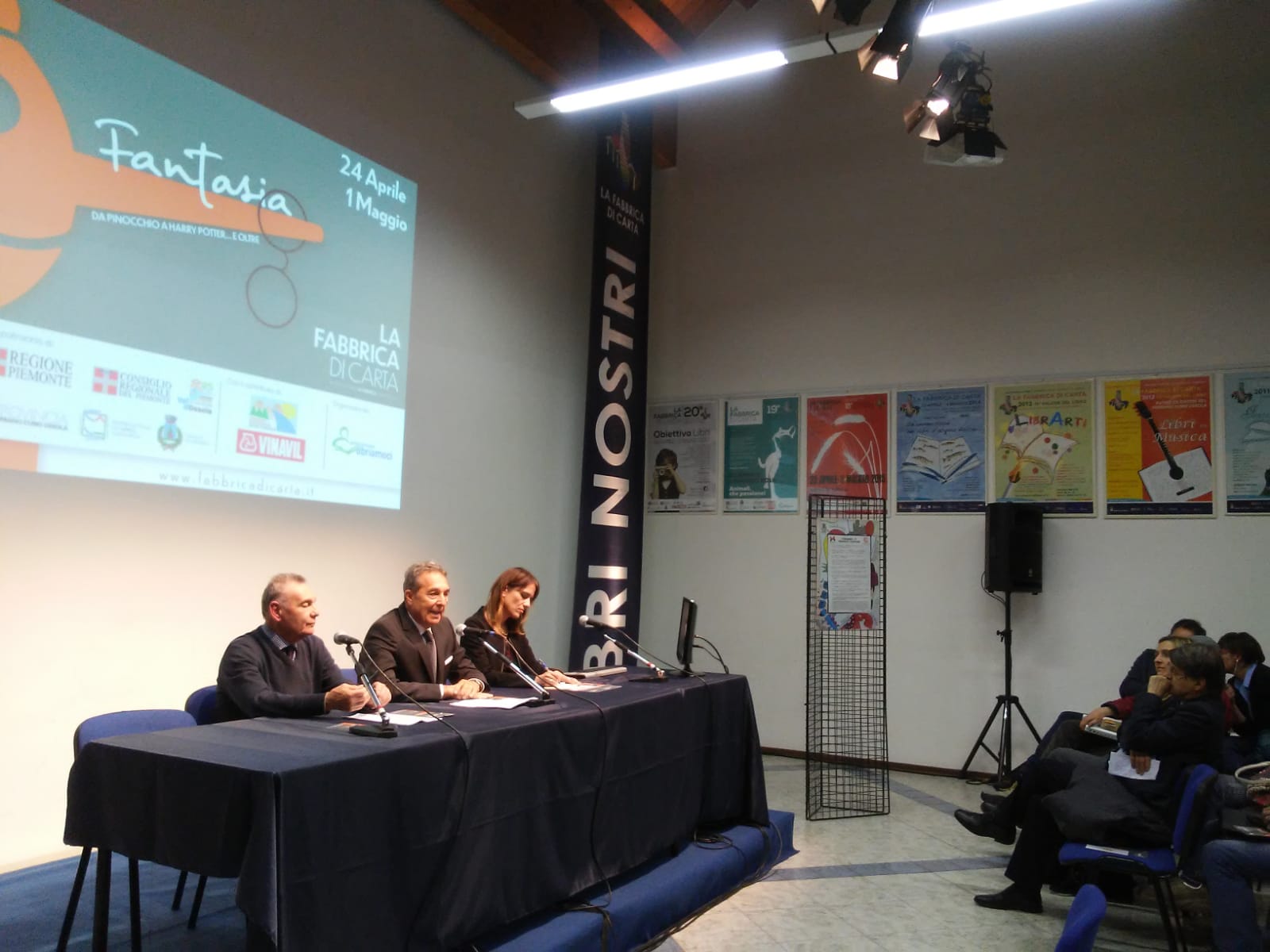 VILLADOSSOLA- 25-04-2019- Vola sulle ali della fantasia la ventiduesima edizione della Fabbrica di Carta che si è aperta ieri sera alla presenza del sindaco di Villadossola, Bruno Toscani, del presidente della provincia Arturo Lincio e di Pino Boero, il maggior studioso italiano di Gianni Rodari, uno dei più grandi autori italiani di letteratura per bambini e ragazzi. Boero, già vice Presidente del Parco della Fantasia di Omegna, insieme ad Alberto Poletti , direttore del Parco della Fantasia e all'assessore alla cultura del comune di Omegna, Sara Rubinelli, hanno lanciato " Rodari 2020" anticipando le iniziative in programma l'anno prossimo ad Omegna in occasione del centenario della nascitadell'autore di origine cusiana al centro al salone del libro con laboratori a cura degli animatori del Parco della Fantasia. Fantasia e creatività arricchiscono i sei giorni di apertura del Salone del libro degli autori ed editori del Verbano-Cusio-Ossola, organizzato come sempre dall'Associazione Libriamoci, Editori e Librai del VCO e realizzato con il supporto della Provincia del Verbano- Cusio-Ossola, il patrocinio di Regione Piemonte, Consiglio Regionale del Piemonte, Comune di Villadossola, con il contributo dell'Unione Montana Alta Ossola e di Vinavil. " Da Pinocchio a Harry Potter ... e oltre " nel titolo della kermesse un'attenzione particolare al genere fantasy, in un mix ben bilanciato tra le novità dell' editoria locale e nazionale. Tanti gli appuntamenti fino al 1 maggio al Centro Culturale la Fabbrica di Villadossola, tra presentazioni librarie, laboratori creativi e altri eventi collaterali, come ha ricordato anche il conduttore della serata, Filippo Ceretti. Spazio è dedicato anche agli appassionati della saga di Harry Potter, così come di altri capolavori del fantasy, genere particolarmente in voga in questi ultimi anni. Percorrendo le sale interne del Salone ci si imbatte in speciali mostre fotografiche e allestimenti unici, come i cornerdedicati ai due protagonisti del tema 2019: il burattino di legno creato dalla fantasia ottocentesca di Carlo Collodie il mago nato dalla prolifica penna di J.K. Rowling. Tra i prossimi appuntamenti in programma ricordiamo il 29 aprile alle 16.30 la presentazione dei libri editi da Promossola "Milan l'è un gran Milan, il Vco in Lombardia" di Uberto Gandolfi, " Sapo" di Saverio Rosselli" e " Voler vincere saper perdonare" di Michele Marinello . Per i più piccoli, il 28 aprile alle 16 ci sarà uno spettacolo di pupazzi e pupe a cura del gruppo Bonuber intitolato "Il Cavaliere di Frescobello" . Il 29 aprile alle ore 10 si svolgerà un laboratorio per le scuole a cura della Biblioteca di Verbania e alle 17.30 " laboratorio manipolativo creativo legato alle fiabe e filastrocche di Gianni Rodari a cura del Parco della Fantasia di Omegna. Tra le mostre in programma, interessante l’ esposizione di Pinocchi e prodotti in legno realizzati da Mastro Geppetto dei F.lli Piana Valentino & C. snc e le mostre fotografiche a cura di Cinefoto Domodossola e Fotoclub di Verbania.