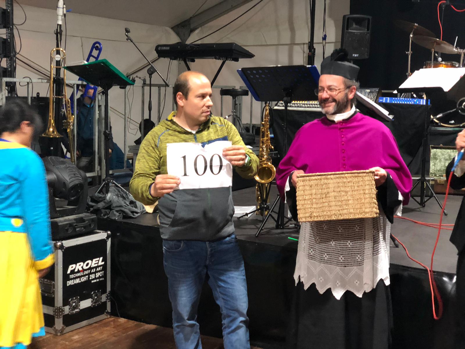 Una bella sorpresa è stata fatta a tutti i presenti che stavano gustando l’ottimo fritto misto, quando Fabrizio Filosi è salito sul palco e accompagnato da Sergio Rolandi e Giampiero Carloni ha cantato l’inno del Palio tutto rigorosamente in dialetto dvarun (vedi video).