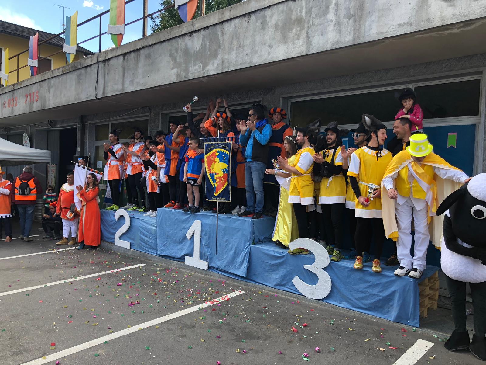 Ha avuto la meglio Cattagna, composta da Erwin Deini, Damiano Belotti, Alberto Roggia, Michele Recli, Alberto Comazzi, Elia Germani e sulla portantina Consuelo Casanova, Cattagna che, con il tempo record di 4minuti e 30 secondi si è aggiudicata per la prima volta il Palio, secondi Bertonio e terza la frazione di Alneda.