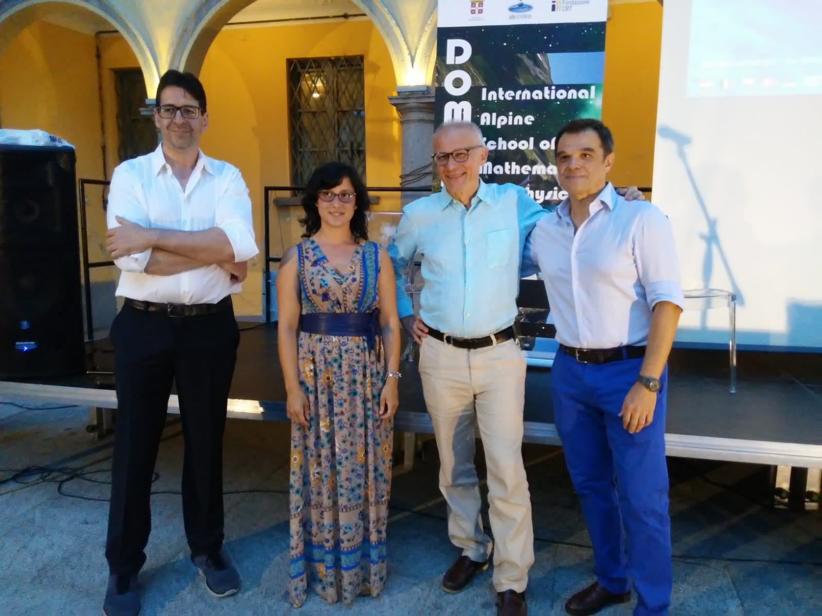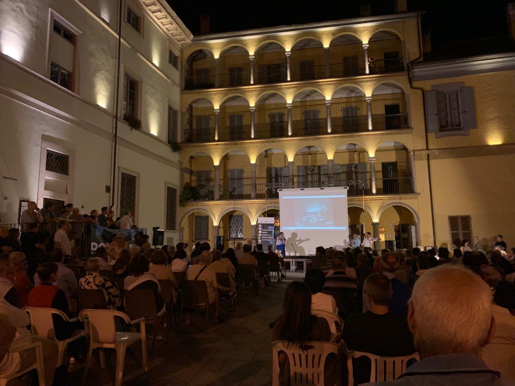 DOMODOSSOLA- 21-07-2019- In tanti venerdì sera in piazza Rovereto hanno partecipato all'incontro "Colloqui sull' Universo " organizzato da Ars. Uni.Vco nell'ambito della seconda edizione di Domoschool, International Alpine School of Mathematics and Physics. Special guest della serata lo scienziato ossolano dell'ESA ( Agenzia Spaziale Europea) Andrea Accomazzo che insieme al fisico milanese Marco Giammarchi, docente di fisica nucleare a Milano, ha portato la scienza fuori dalle aule scolastiche, intervenendo sul tema del futuro dell'esplorazione spaziale e sulla cosmologia. La serata, moderata dalla giornalista Cinzia Attinà, ha visto i saluti iniziali del vice sindaco Angelo Tandurella e la presenza di Sergio Cacciatori, scienziato ossolano curatore di Domoschool. Accomazzo a proposito della missione spaziale "Beyond" in corso adesso, spiega: " trovo molto significativo che Luca ( Parmitano) sia partito verso la stazione spaziale, nella ricorrenza dei cinquant'anni dallo sbarco sulla luna, che rimane la pietra miliare dell'esplorazione e dell'ardimento umano. Come ESA ci stiamo espandendo anche nell' esplorazione robotica. In particolare stiamo lavorando coi colleghi americani sulla nuova stazione spaziale: la costruiremo intorno alla luna e permetterà agli astronauti di andare sulla luna e da lì forse un giorno di assemblare l'astronave che ci porterà su Marte". E a proposito dei terrapiattisti, Accomazzo ha detto che dovrebbero essere i primi turisti spaziali e che dovremmo essere tutti contenti di far vedere loro come sia bella la nostra Terra così rotonda.