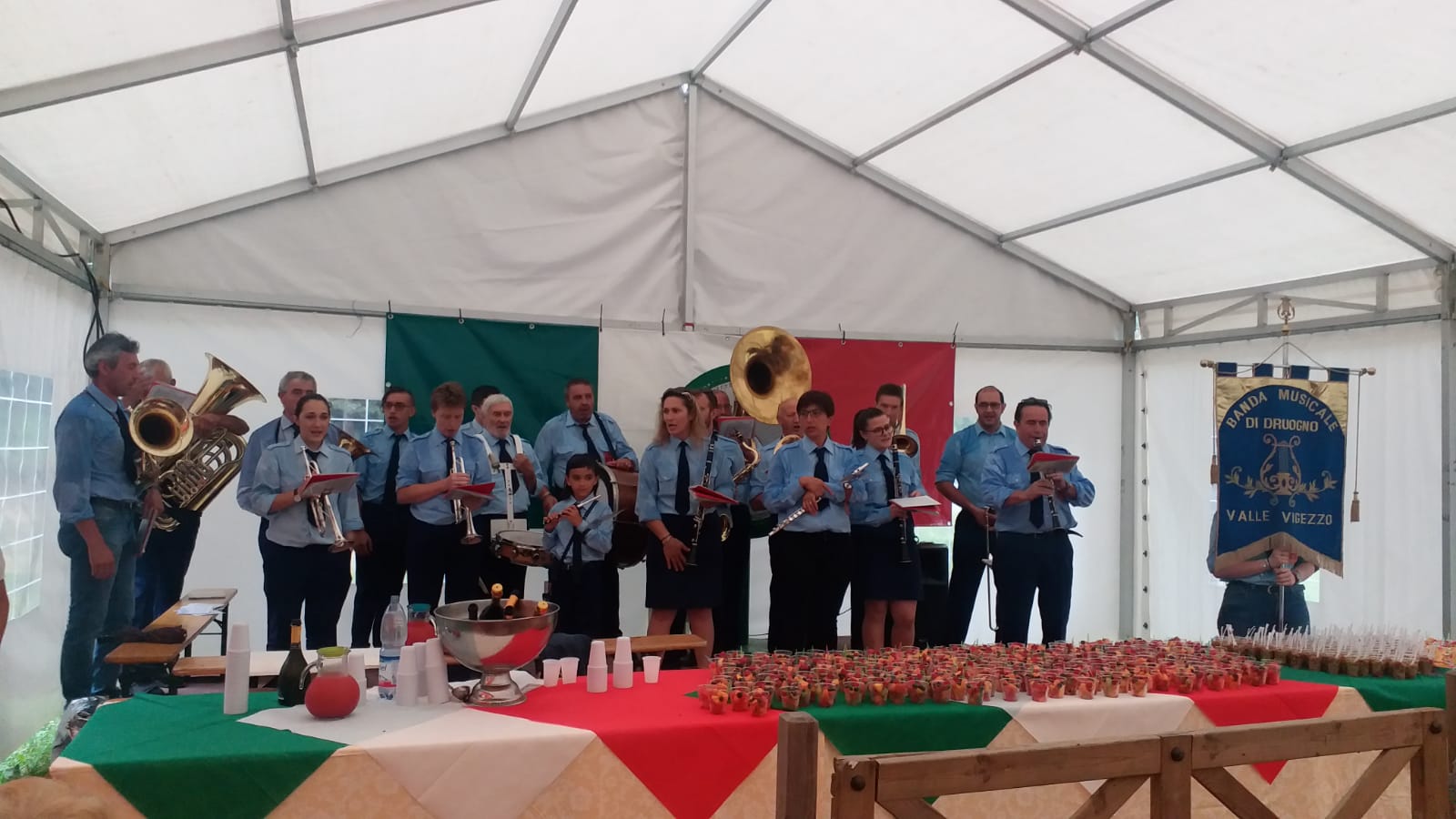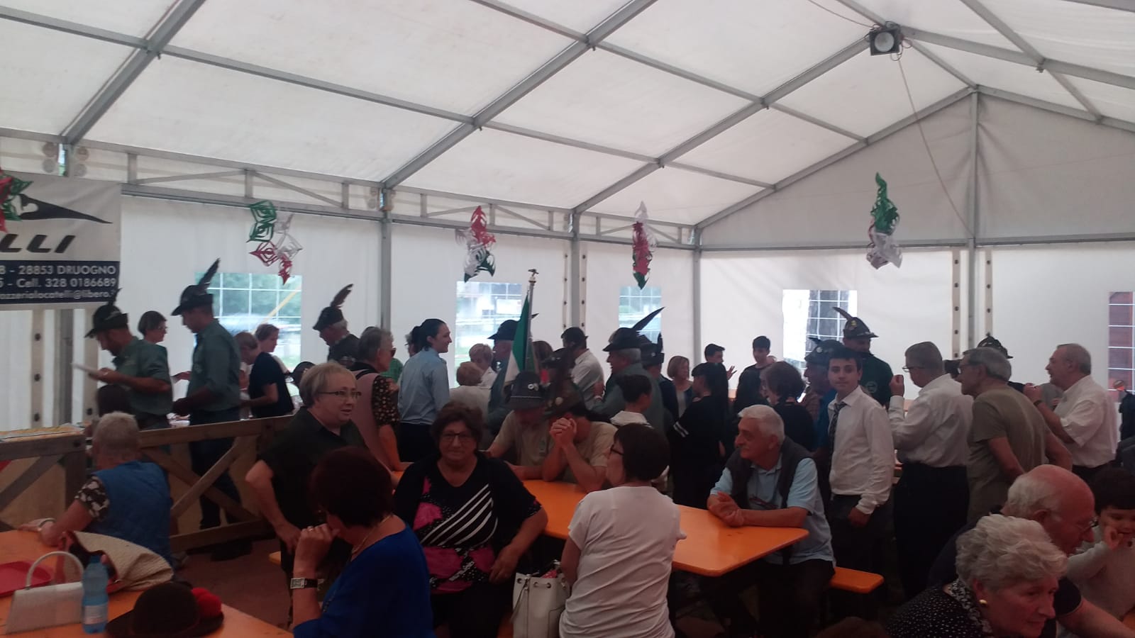 DRUOGNO - 21-07-2019 - Ultimo giorno per la festa degli Alpini. Apertasi venerdì sera, oggi, domenica 21 luglio, c'è il secondo raduno dei fisarmonicisti che suoneranno in allegria fino al pomeriggio al capanno degli Alpini. Ieri, sabato 20 luglio, è stata celebrata la messa e all'uscita, in piazza Chiesa, Alpini e autorità, in primis il sindaco di Druogno Marco Zanoletti, hanno ricordato tutti gli Alpini caduti. Da lì è partito il corteo guidato dalla banda musicale di Druogno del presidente Matteo Rondoni, seguito dalla corale. Giunti al capanno il presidente delle penne nere Paolo Dego ha ringraziato tutti della numerosa partecipazione nonostante la pioggia e poi si è aperto un ricco buffet per tutti. La serata si è conclusa con cena e musica con il complesso "I gemelli".