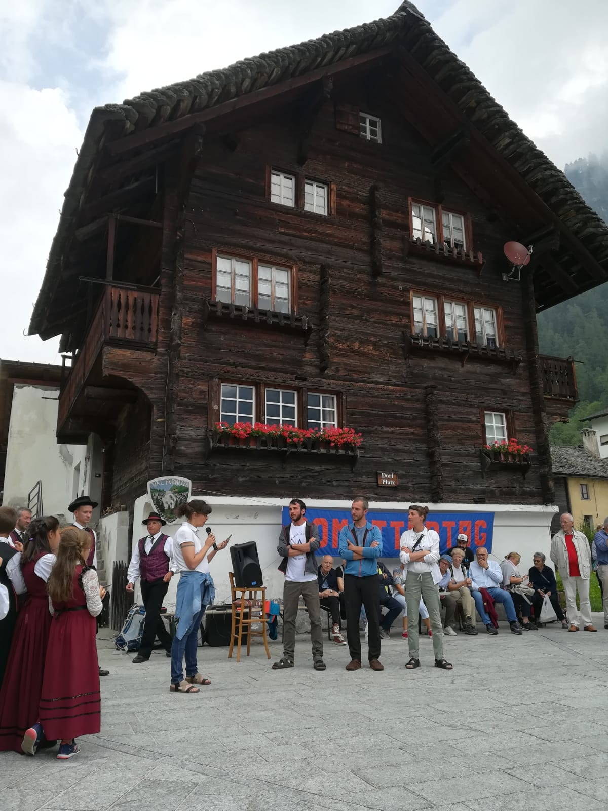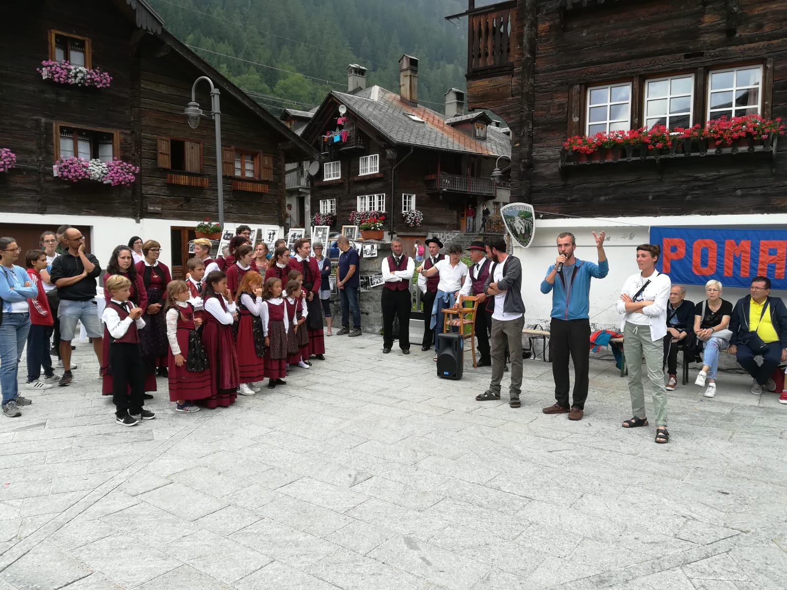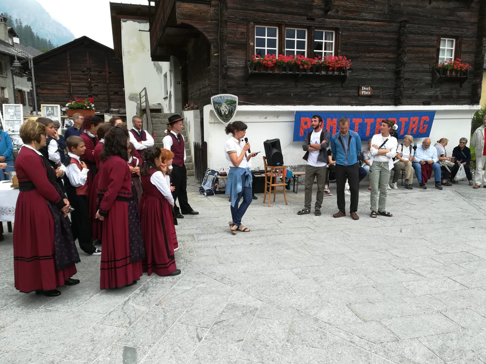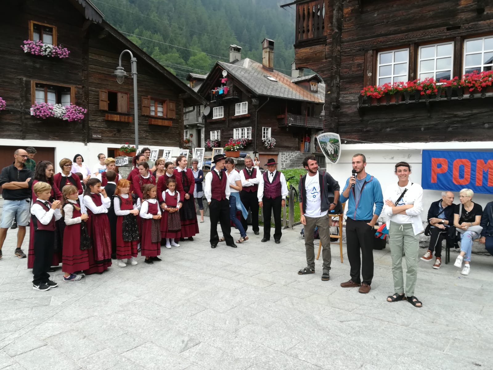 e dato il benvenuto, sabato scorso per il "Pomattertag", il pomeriggio dedicato alle tradizioni e cultura locale di Formazza. Il sindaco Bruna papa ha salutato così i camminatori del progetto "Va' Sentiero", una spedizione di giovani arrivata proprio quel giorno a Formazza, tappa del loro cammino lungo il "Sentiero Italia", il più lungo al mondo.