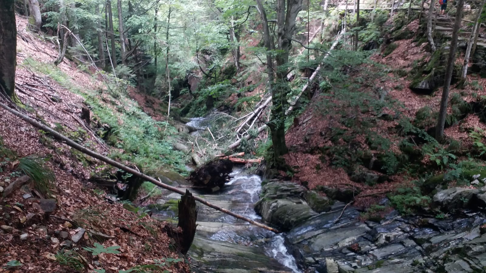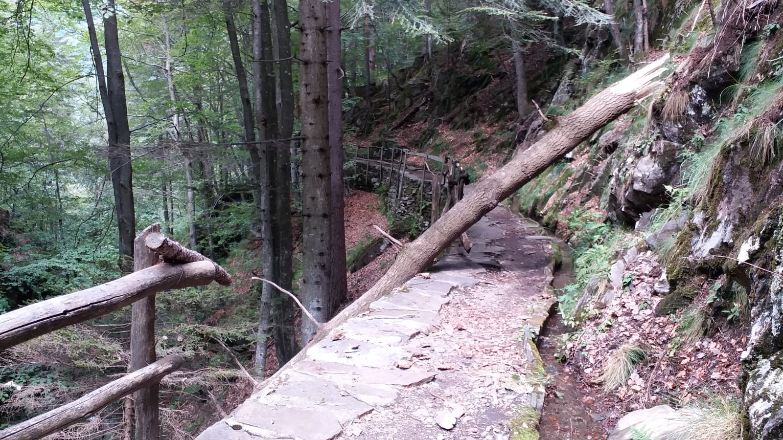 Il maltempo non ha impedito la salita in quota, anche se la caduta di alcune alberi ha divelto parte del parapetto del sentiero.