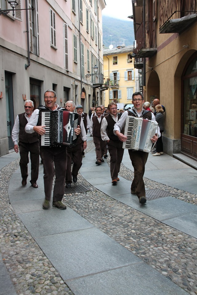 in costume e 50 fisarmoniche nella sfilata della Folkermesse organizzata a Varallo domenica scorsa. Un totale di 31 gruppi che provenivano dalla Val Mastallone, Val Sermenza, Val Grande, da Varallo e dintorni, e dalla val d'Ossola e Vco, da cui provenivano il Gruppo Folk Valle Vigezzo, Gruppo Folk Città di Domodossola, Gruppo Arsciol Vagna, Gruppo Valle Anzasca, Gruppo Folk Mottarone, Gruppo Folk Trontano e Sciupatel Di Beura Cardezza, Gruppo Rigaden Ornavasso, Gruppo Valstrona Myosotis, Cappello Monti e Forno, e Il "coro" Amici Della Montagna. Durante la mattinata erano state organizzate visite guidate della città, nel pomeriggio la sfilata, con la presentazione di tutti i costumi, dei fisarmonicisti e l'esibizione.
