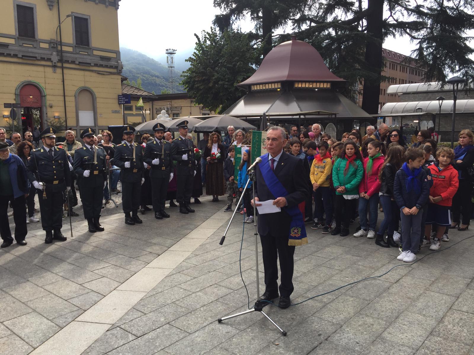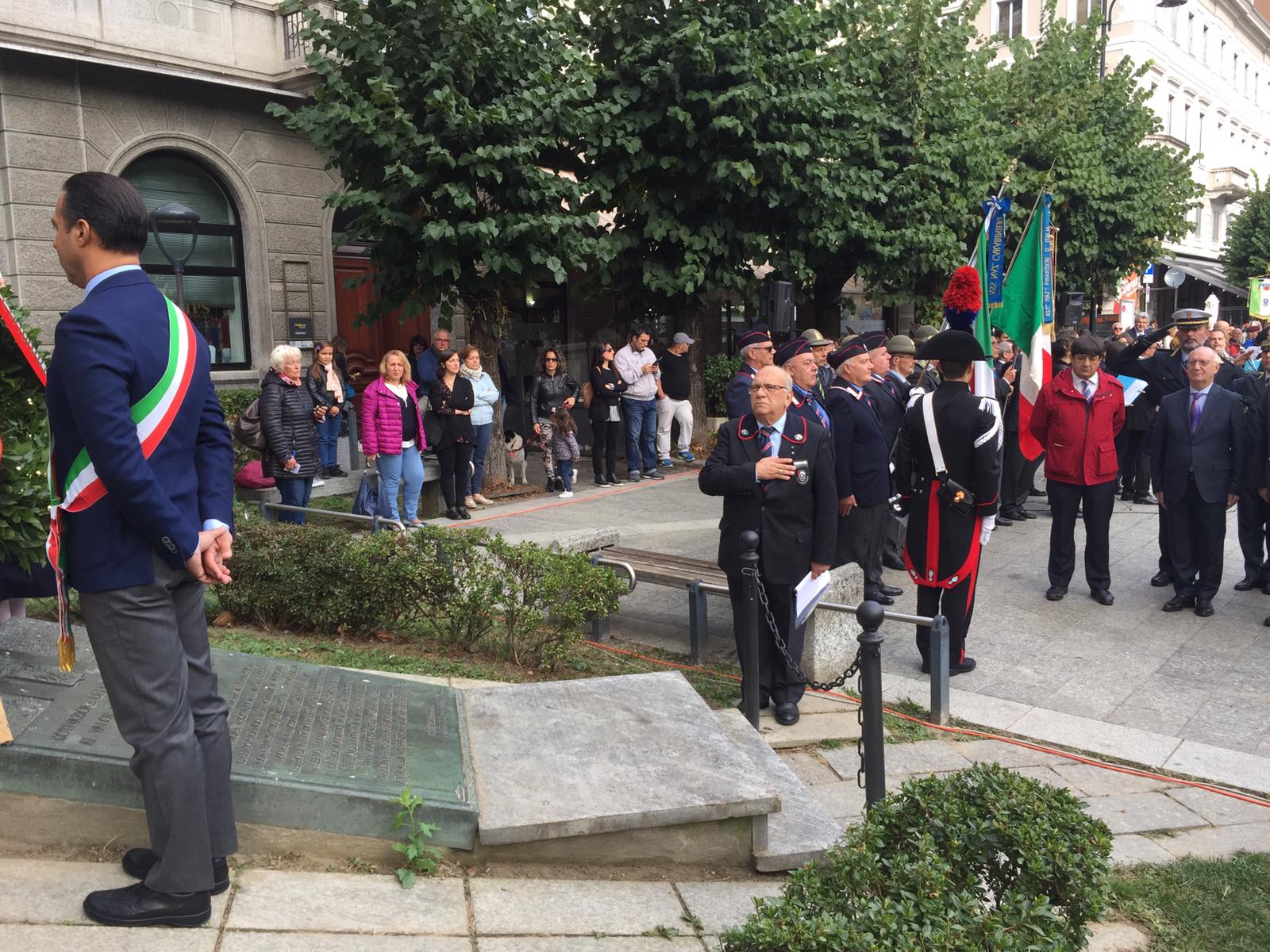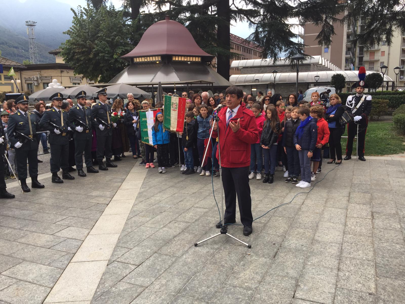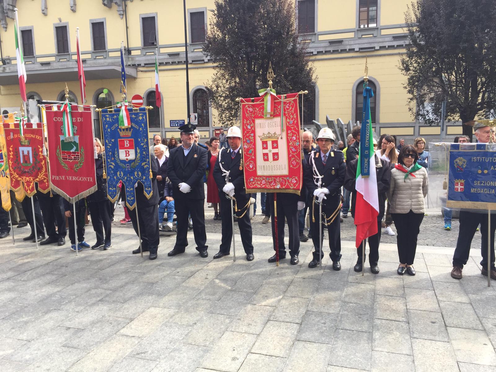 DOMODOSSOLA- 06-10-2019- E' stato celebrato questa mattina in piazza Matteotti il 75° anniversario della Repubblica dell’Ossola. Presenti autorità civili e militari, labari e gonfaloni. Dopo la deposizione della corona d'alloro al Monumento i discorsi ufficiali del sindaco Lucio Pizzi, del presidente del Vco Arturo Lincio e la commemorazione, affidata allo storico, ed ex assessore regionale alla Cultura, Gianni Oliva, che ha ricordato i valori espressi dalla Repubblica Ossolana, ispiratori della Carta Cotituzionale.