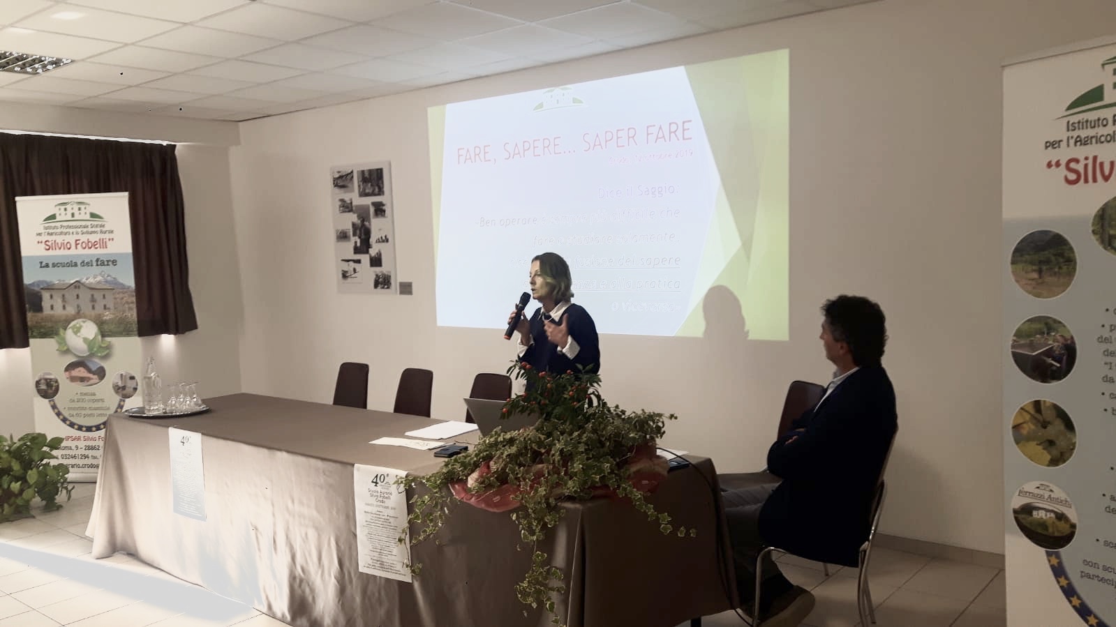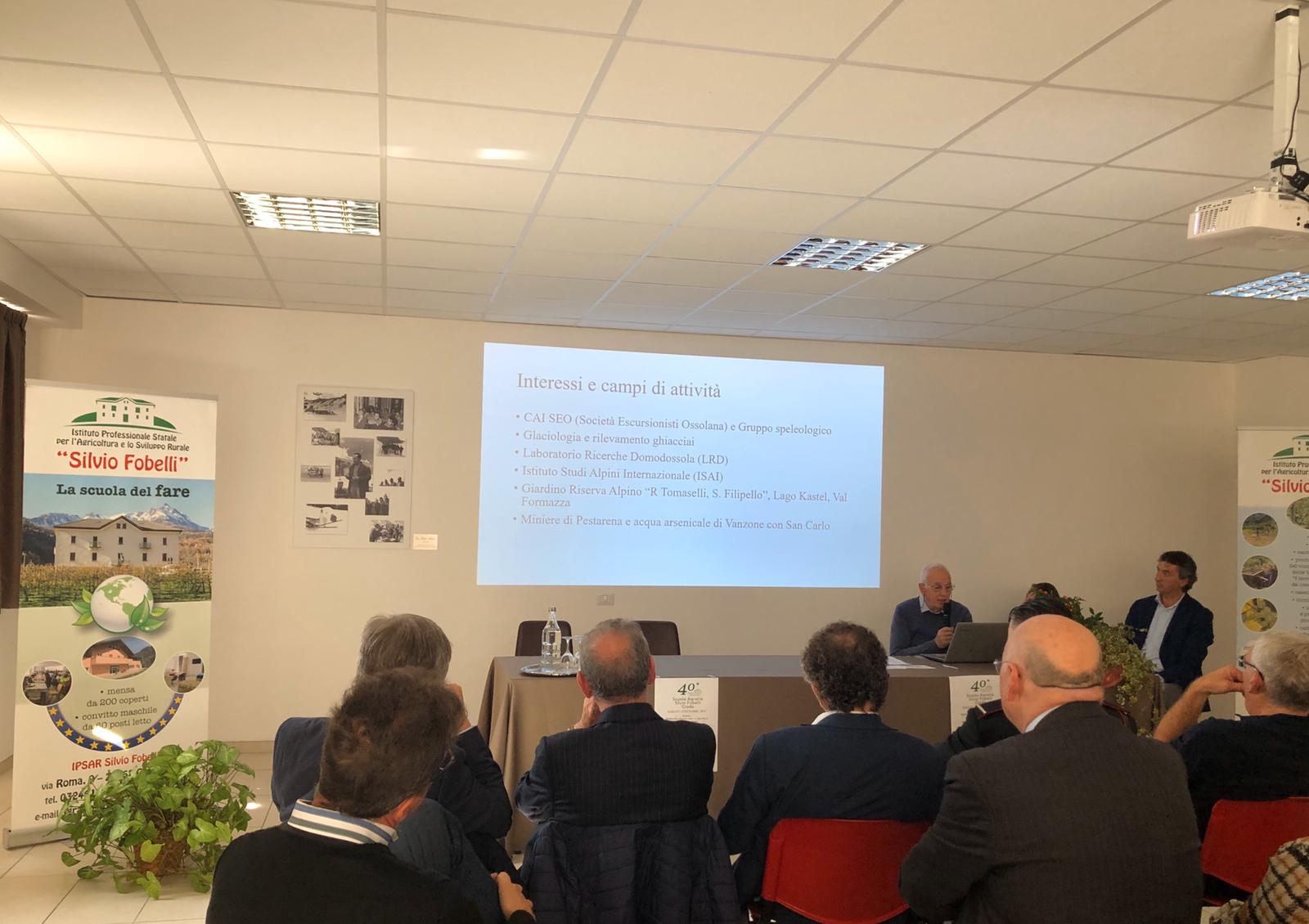 il Convitto della scuola agraria di Crodo ha accolto i lavori dedicati al quarantesimo di fondazione. Nell’aprire il convegno la dirigente scolastica Ornella Barre ha posto in rilievo le attività dei precedenti presidi e sottolineato la specificità montana dell’odierno Istituto. A seguire Marco Mantovani, presidente del Centro Studi “Ginocchi” di Crodo ha illustrato la mostra fotografica che narra con rara efficacia la storia della scuola e dei suoi protagonisti quali il sindaco Silvio Fobelli che tanto fece per promuovere nel suo comune una scuola agraria. A questo punto la preside Barre ha tracciato lo stato dell’arte dell’istruzione agraria che a livello di iscrizioni, presenza femminile e imprenditorialità ha ottenuto negli anni più recenti dati di grande successo. Qualche dato le iscrizioni a Crodo per le classi prime sono in costante aumento dai 29 del 2014 ai 42 del 2019 con un bacino di utenza che copre anche le province di Vercelli, Biella, Varese e Novara. Gian Mauro Mottini, presidente federazione agronomi forestali di Piemonte e Valle d’ Aosta, ha quindi delineato le tante possibilità occupazionali che una scuola agraria permette. Da ultimo Rosario Mosello del CNR di Verbania ha raccontato con dovizia di particolari la vita di Don Pietro Silvestri, naturalista e saggista, a cui è stata dedicata la nuova sala polifunzionale del Convitto.