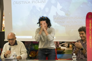 Il tutto contando solo su se stessa, visto che il suo compagno d'avventura Francesco Bon è stato costretto ad arrendersi durante l’assalto finale alla vetta: “E' stata una sana follia- ha spiegato ai numerosi presenti- devo ringraziare prima di tutto Francesco Bon, la montagna doveva essere un'altra, è lui che mi ha spiegato che il Manaslu era “più accattivante”, anche se più difficile. Questa avventura la volevamo fare, tra il fango e non dico altro, la montagna ed il trekking, e nonostante le problematiche della meteo siamo riusciti a portare al termine questa cosa che avevamo in testa. All fine ci siamo divertiti tutti quanti. La montagna era più complessa quest'anno, per la neve ed il ghiaccio”.